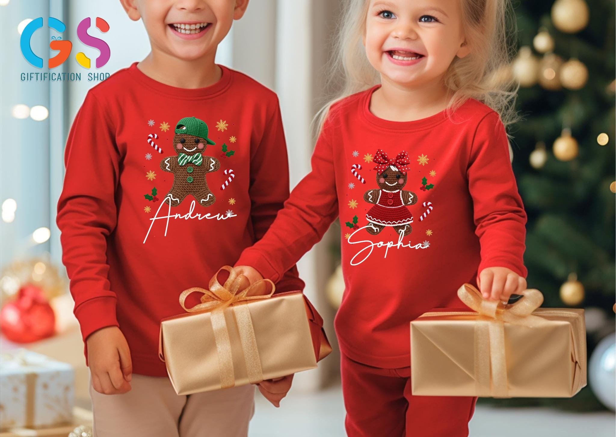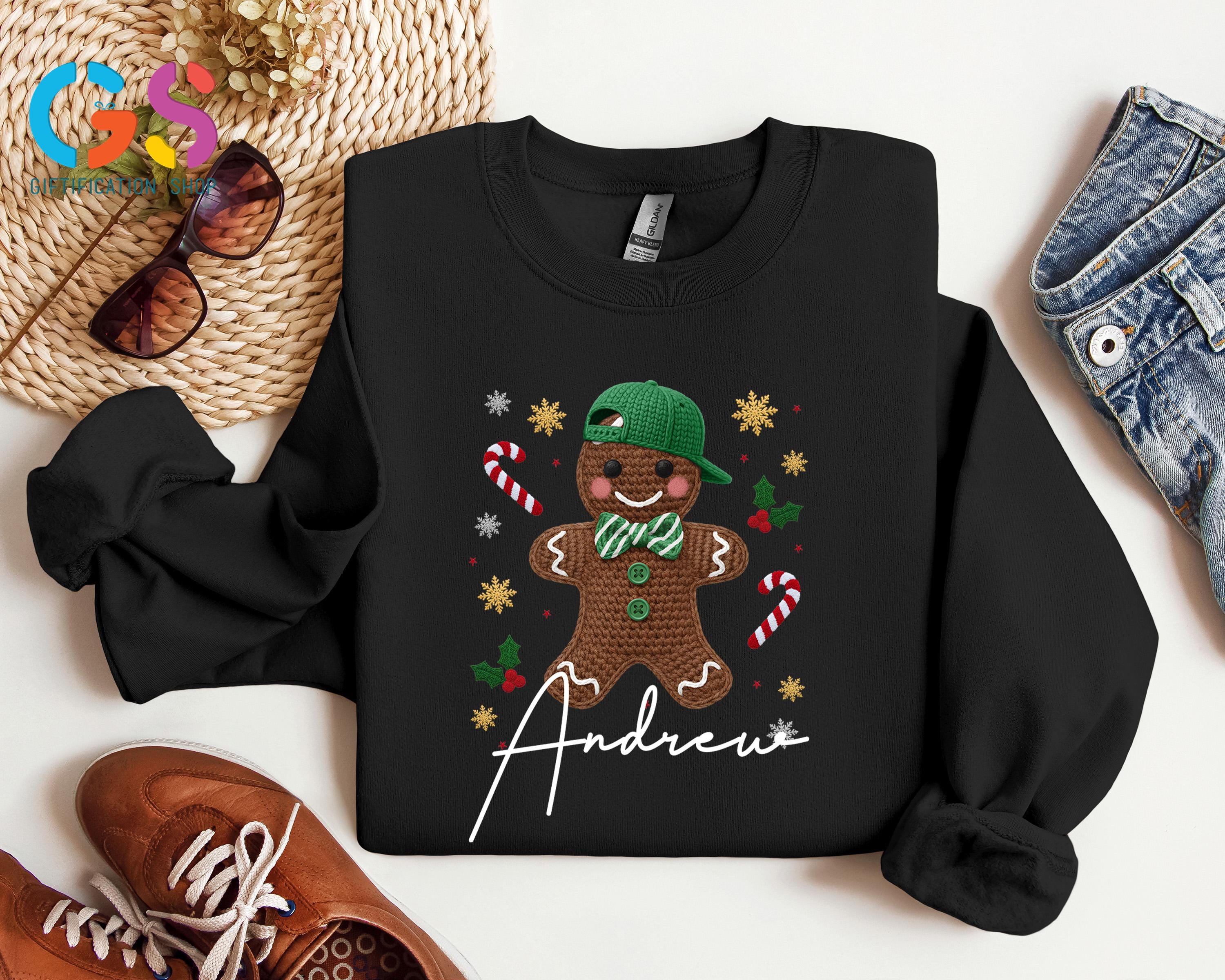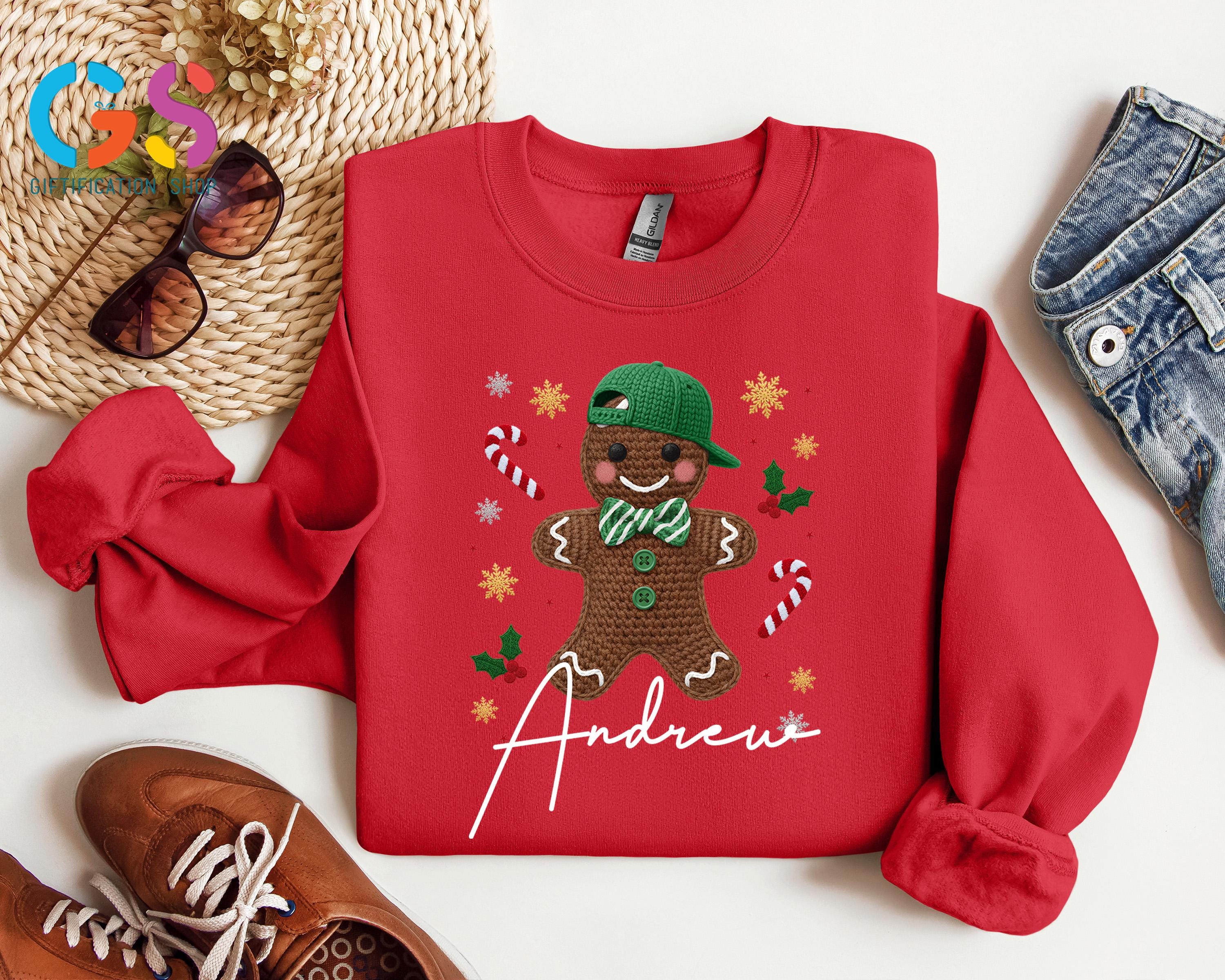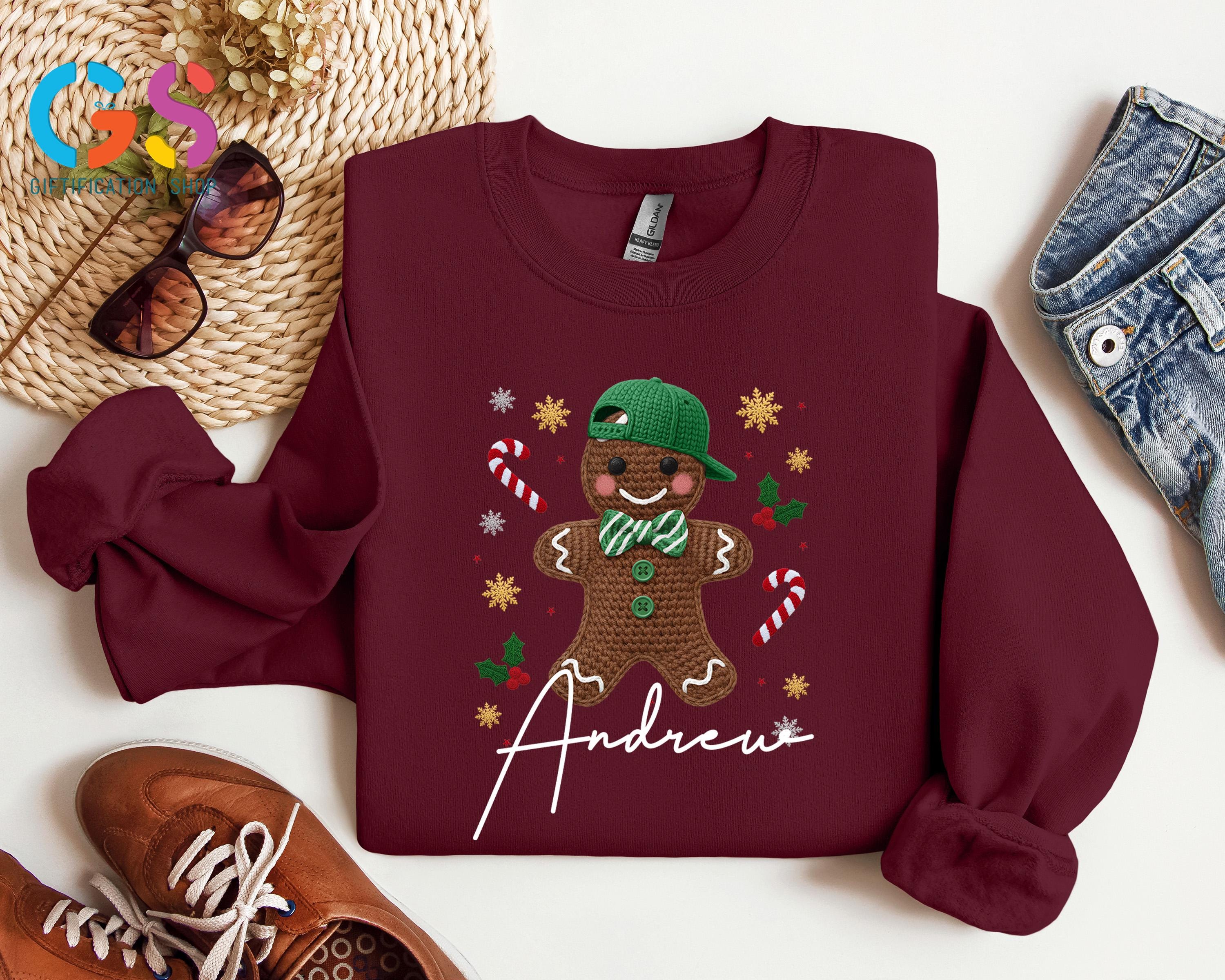 This Custom Name Gingerbread Christmas Sweatshirt is the sweetest holiday outfit for little ones, featuring adorable gingerbread girl and gingerbread boy designs that bring festive cookie charm to every celebration. Perfect as a cozy toddler sweatshirt or kids sweatshirt, it makes a delightful christmas gift and a warm winter sweatshirt for the season. Personalize it as a custom name shirt to create a unique matching christmas look for siblings or friends. With its cute christmas cookie and xmas cookie theme, this cheerful christmas sweatshirt adds merry fun to every holiday moment, making it a favorite holiday sweatshirt for kids who love the magic of Merry Christmas.