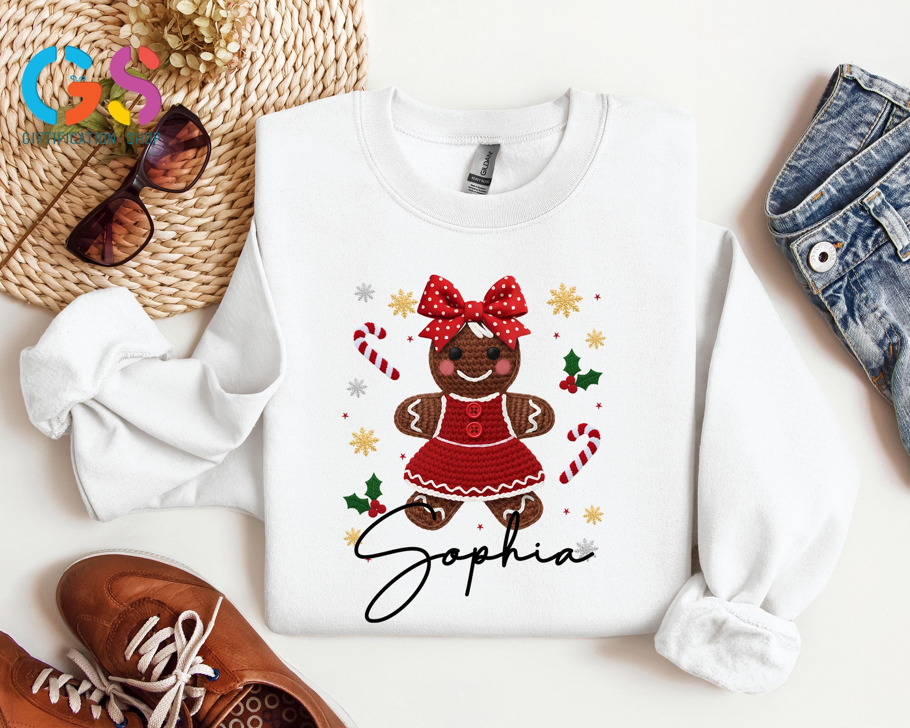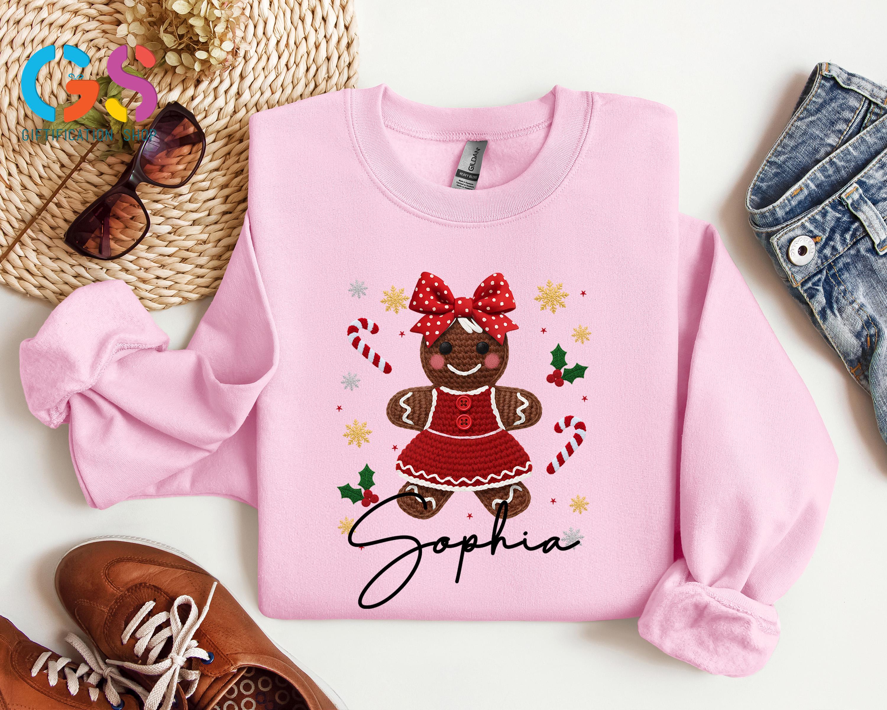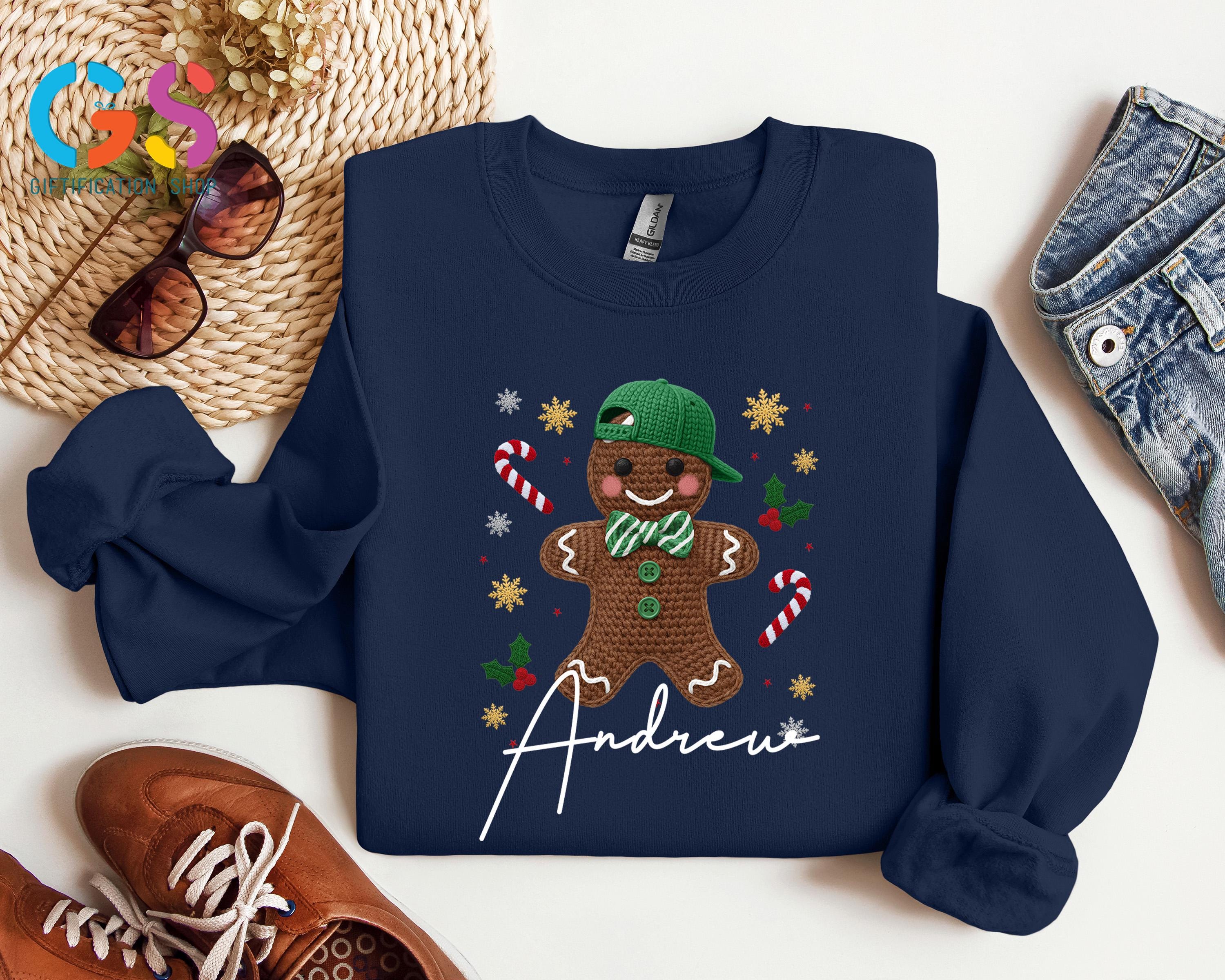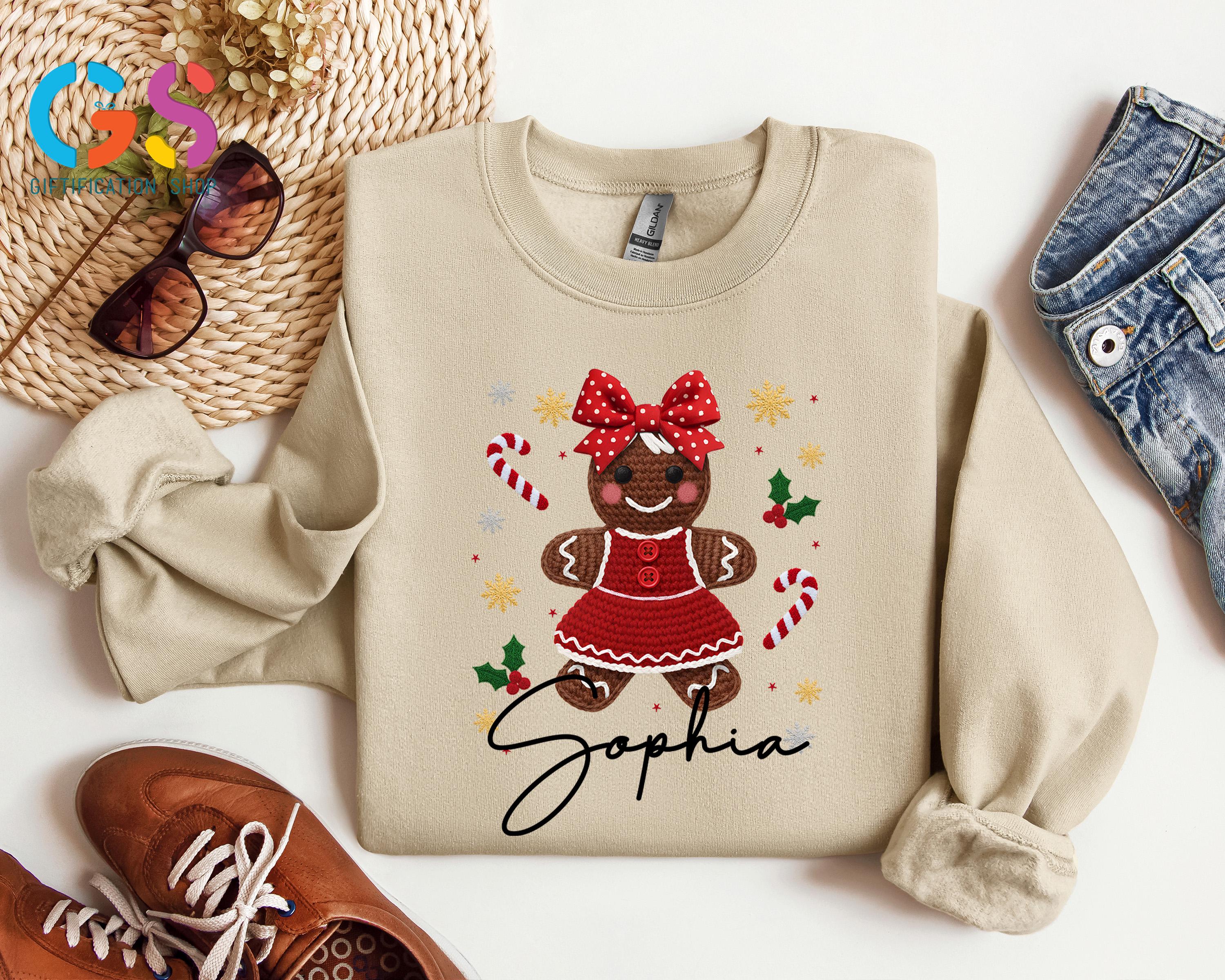 Custom Name Gingerbread Christmas Sweatshirt, Cookie Girl Boy Matching Holiday Gift, Merry Xmas Winter Kid Sweater
