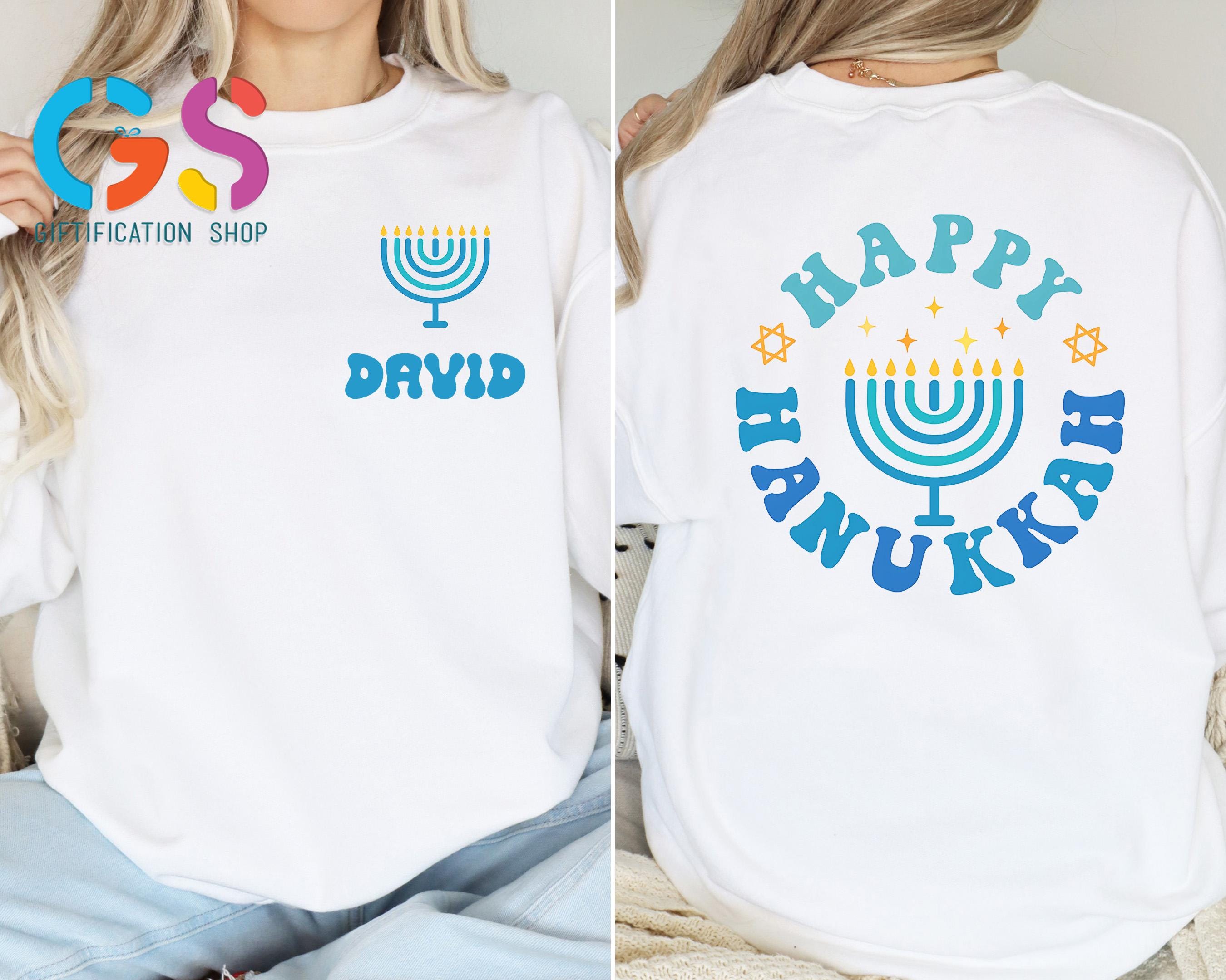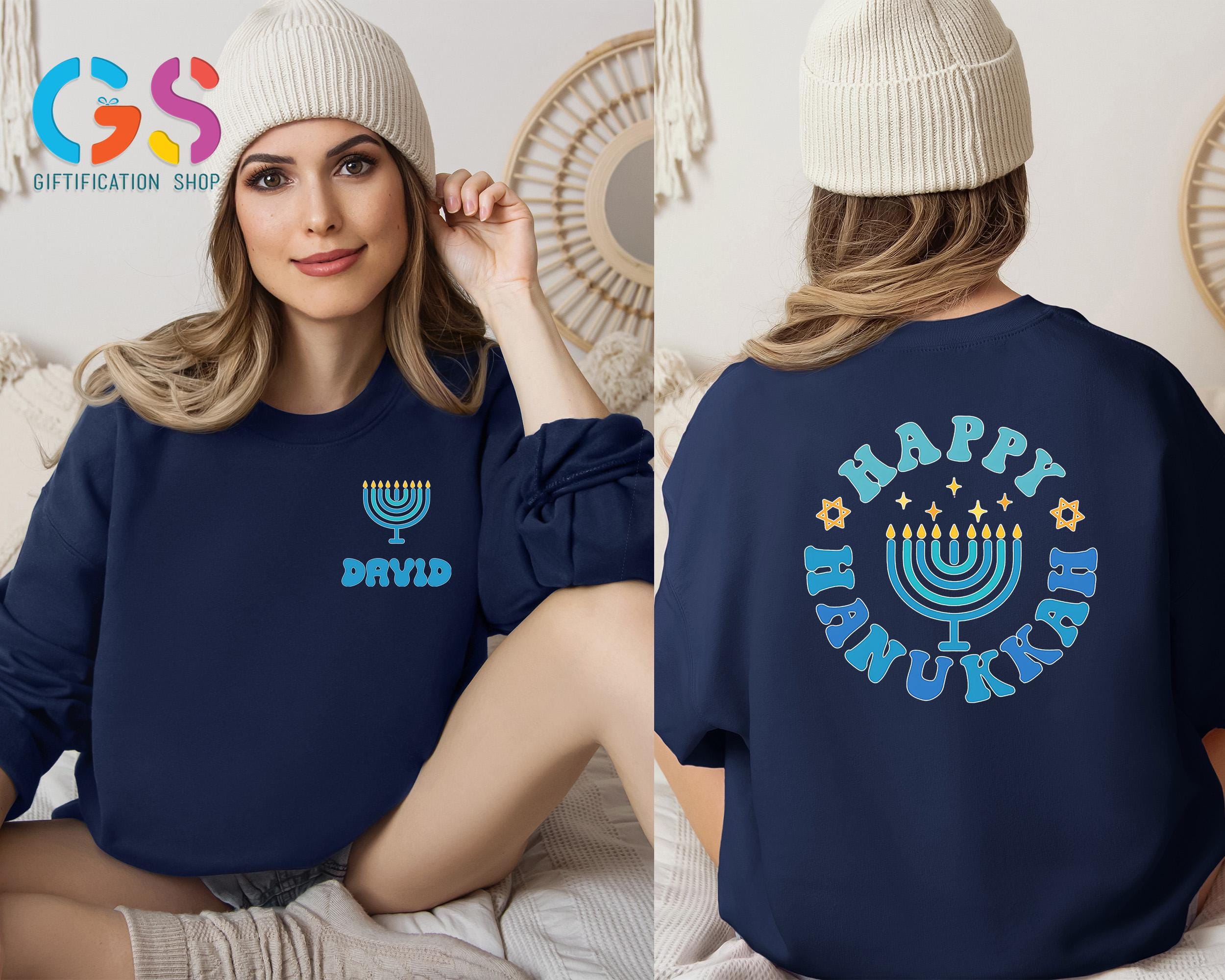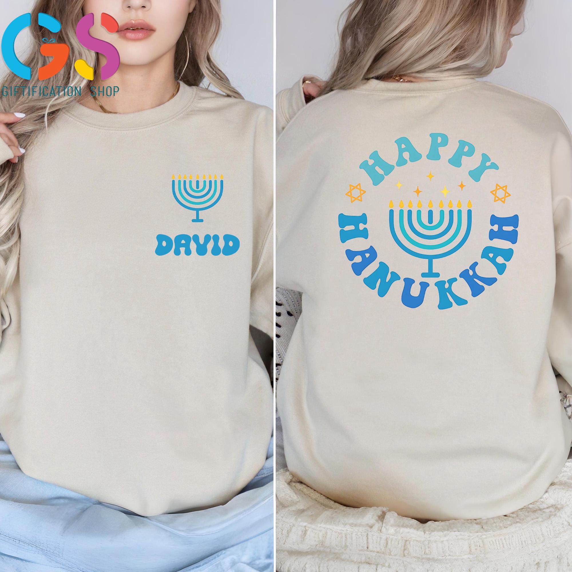 This Custom Name Happy Hanukkah Sweatshirt brings warm holiday spirit to every celebration, featuring meaningful details inspired by the Festival of Lights. Perfect as a cozy hanukkah sweatshirt or thoughtful hanukkah gift, it highlights a beautiful menorah shirt design with glowing candle light accents and optional personalization. Ideal for Hanukkah dinner, family gatherings, or casual winter wear, this Jewish holiday tee–style sweater adds festive charm to any wardrobe. Whether you prefer a classic menorah crewneck, a symbolic star of David touch, or a comfortable chanukah sweater, this religious shirt makes a heartfelt way to wish loved ones a bright and Happy Hanukkah.