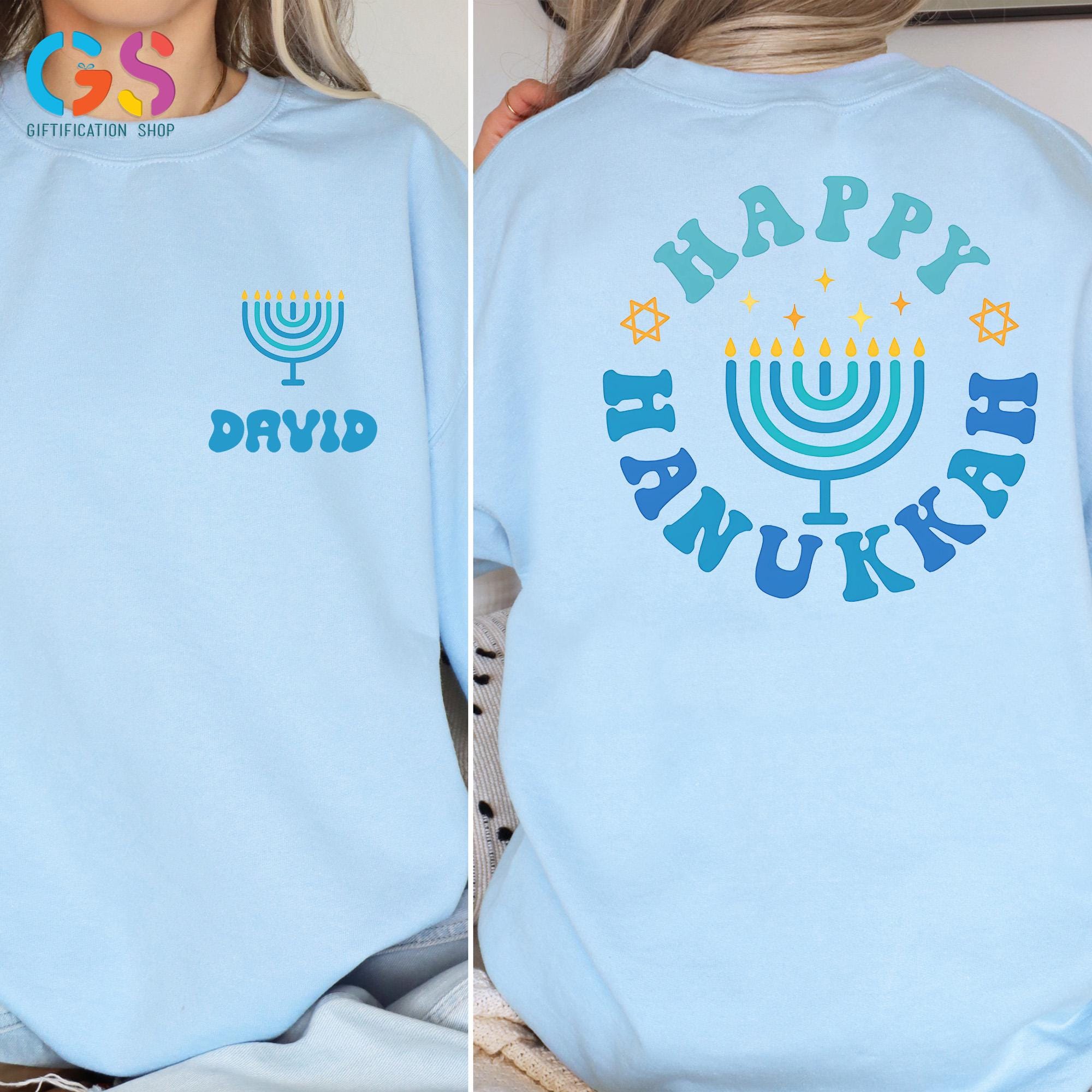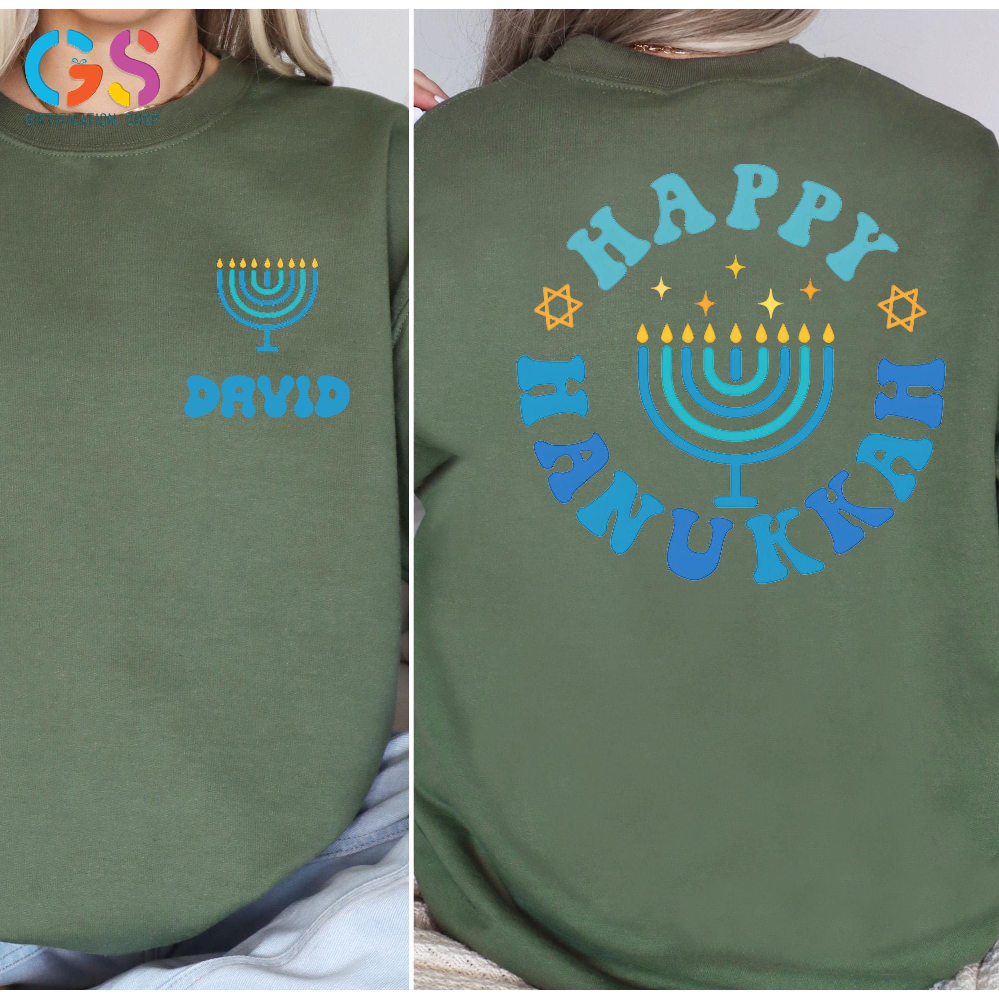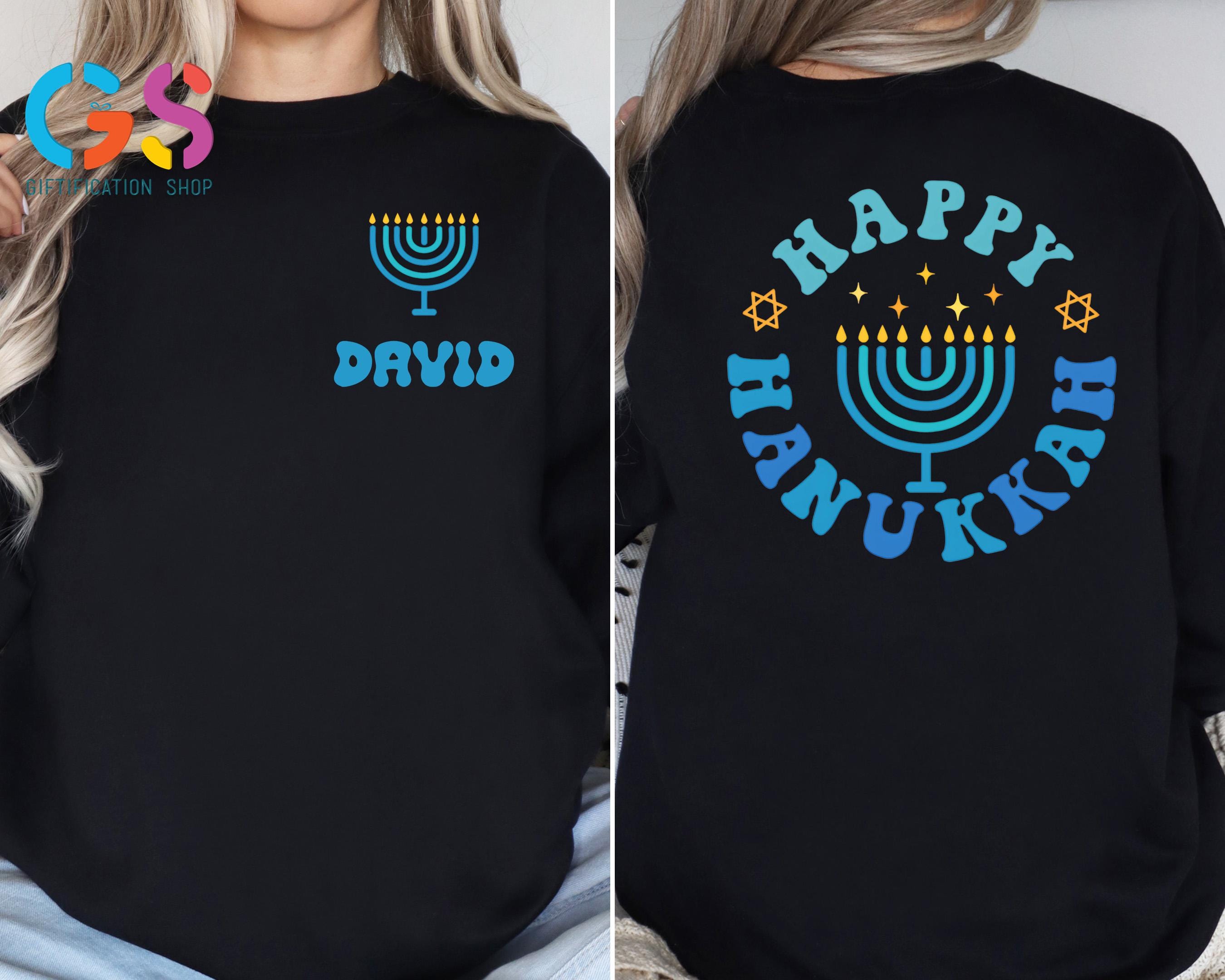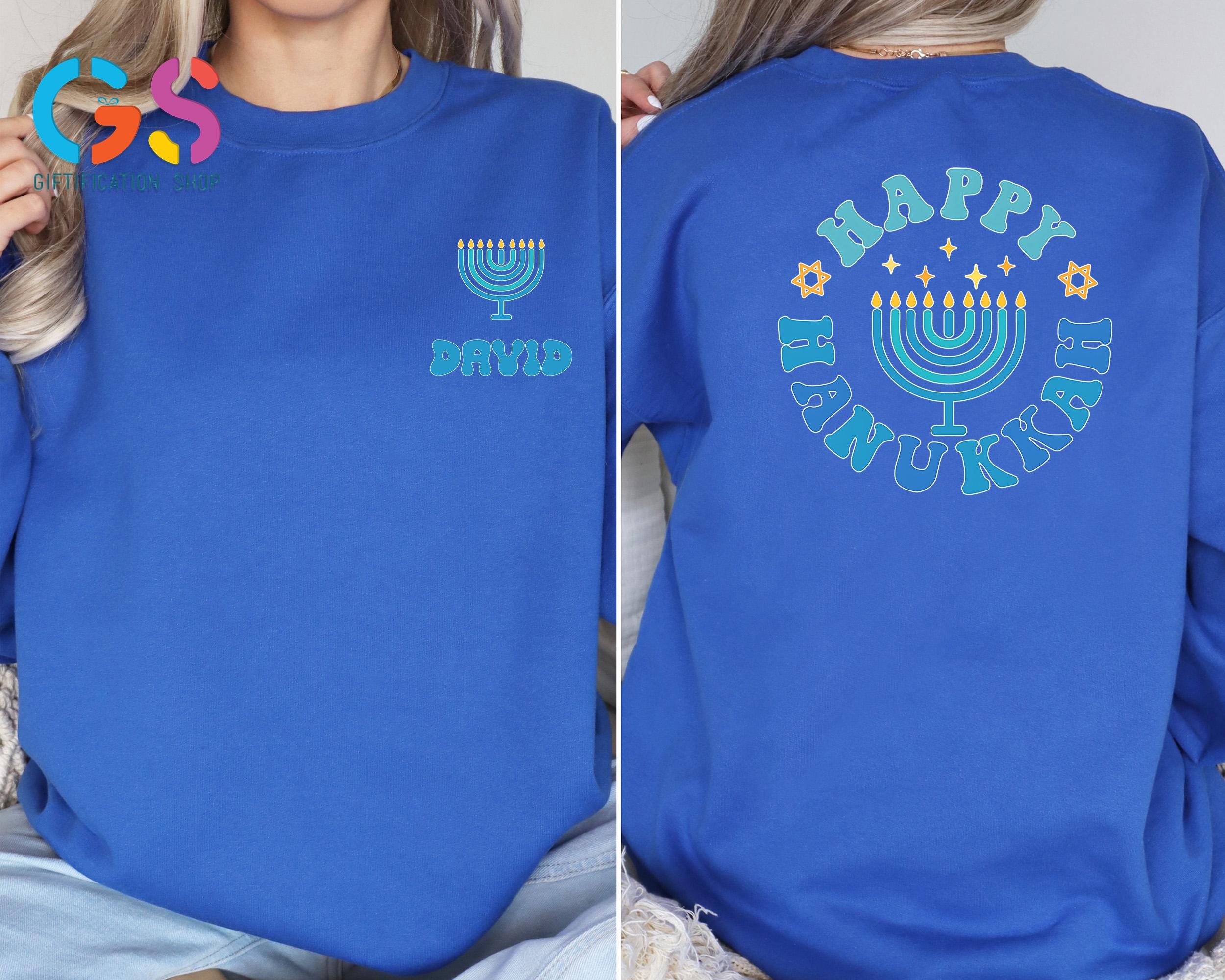 This Custom Name Happy Hanukkah Sweatshirt brings warm holiday spirit to every celebration, featuring meaningful details inspired by the Festival of Lights. Perfect as a cozy hanukkah sweatshirt or thoughtful hanukkah gift, it highlights a beautiful menorah shirt design with glowing candle light accents and optional personalization. Ideal for Hanukkah dinner, family gatherings, or casual winter wear, this Jewish holiday tee–style sweater adds festive charm to any wardrobe. Whether you prefer a classic menorah crewneck, a symbolic star of David touch, or a comfortable chanukah sweater, this religious shirt makes a heartfelt way to wish loved ones a bright and Happy Hanukkah.