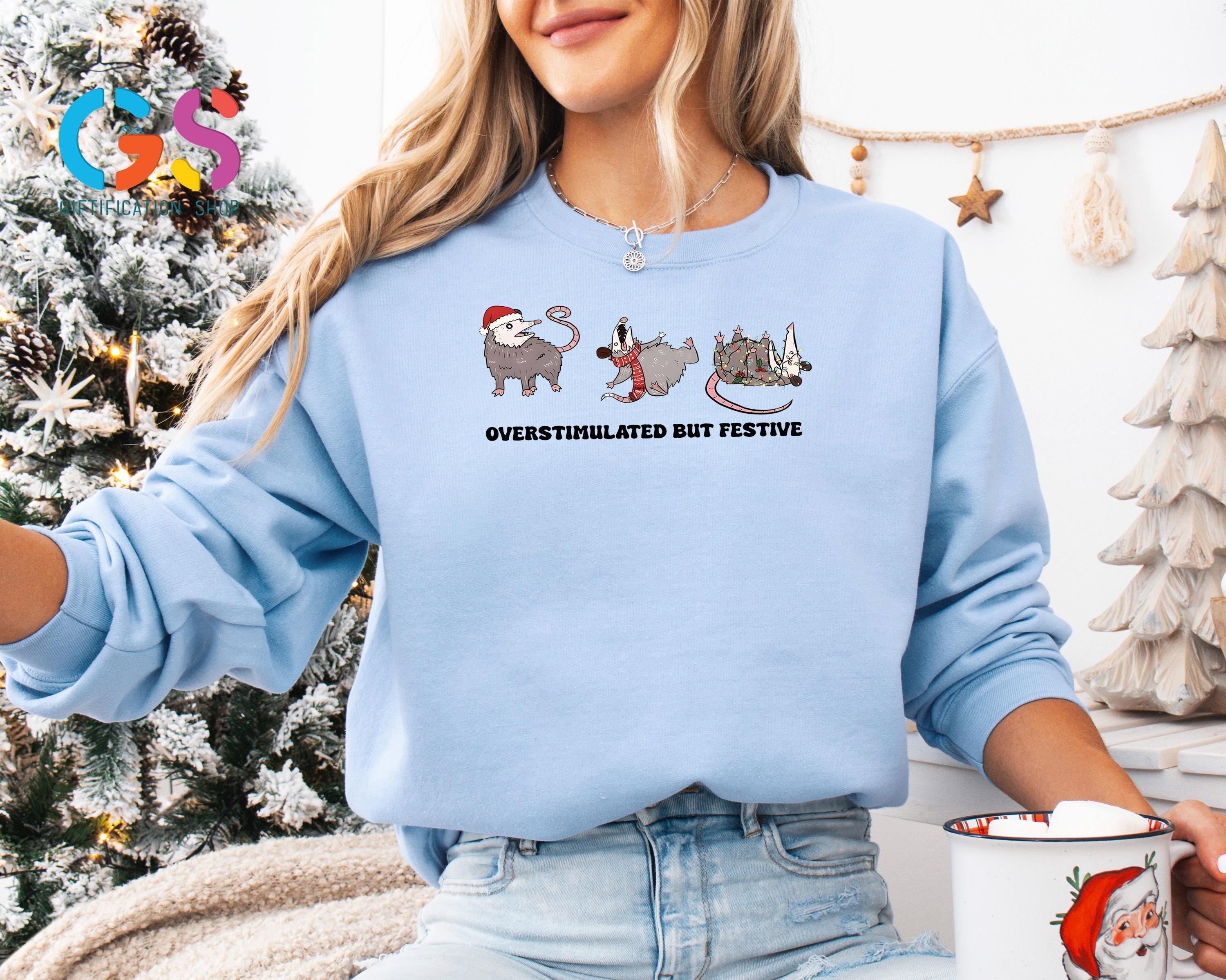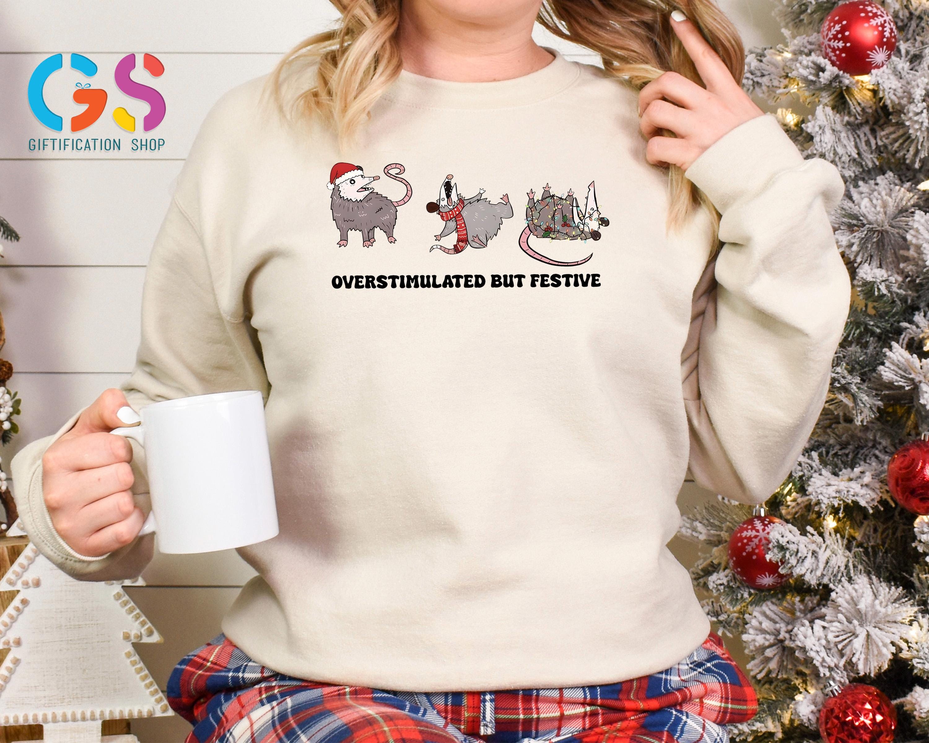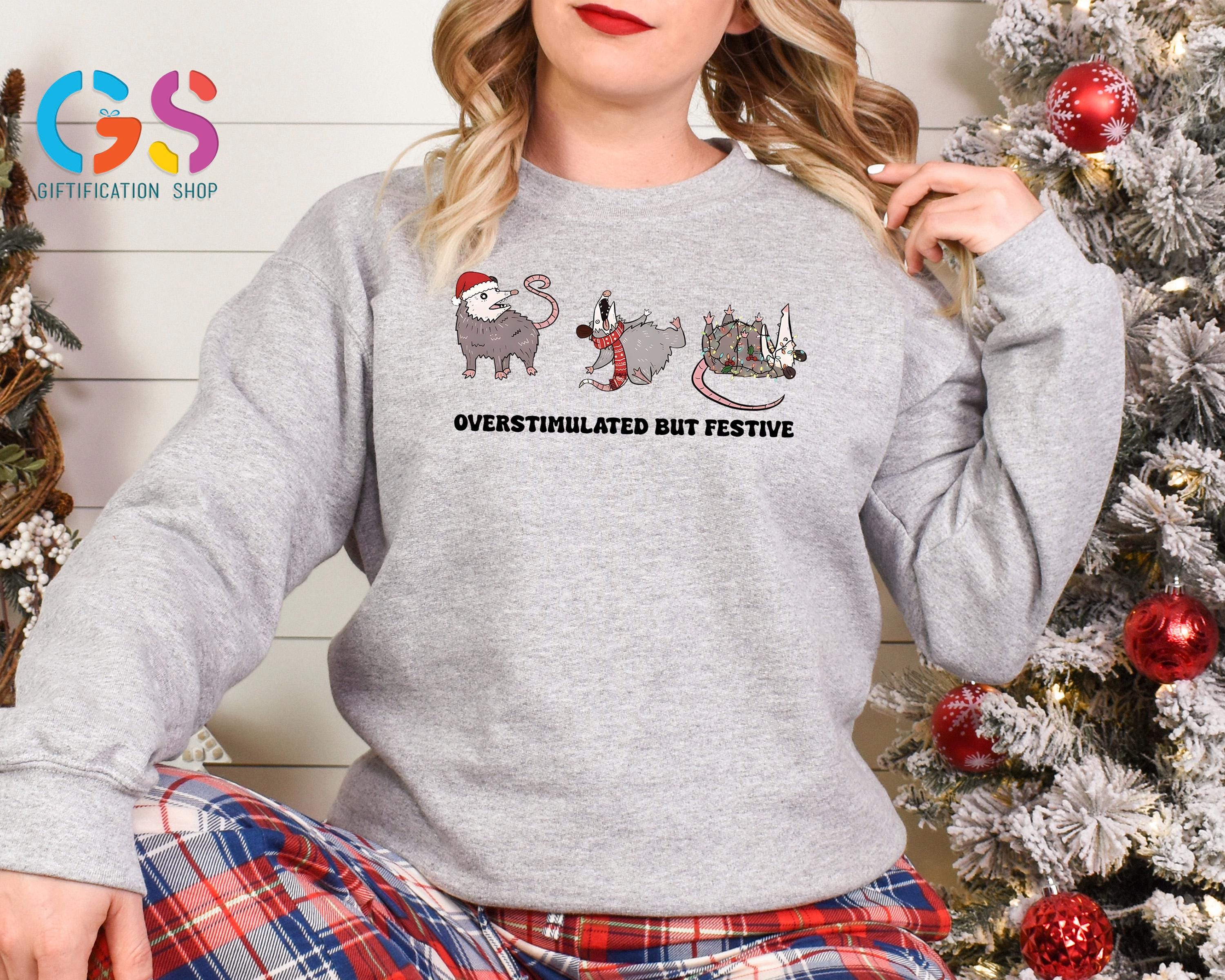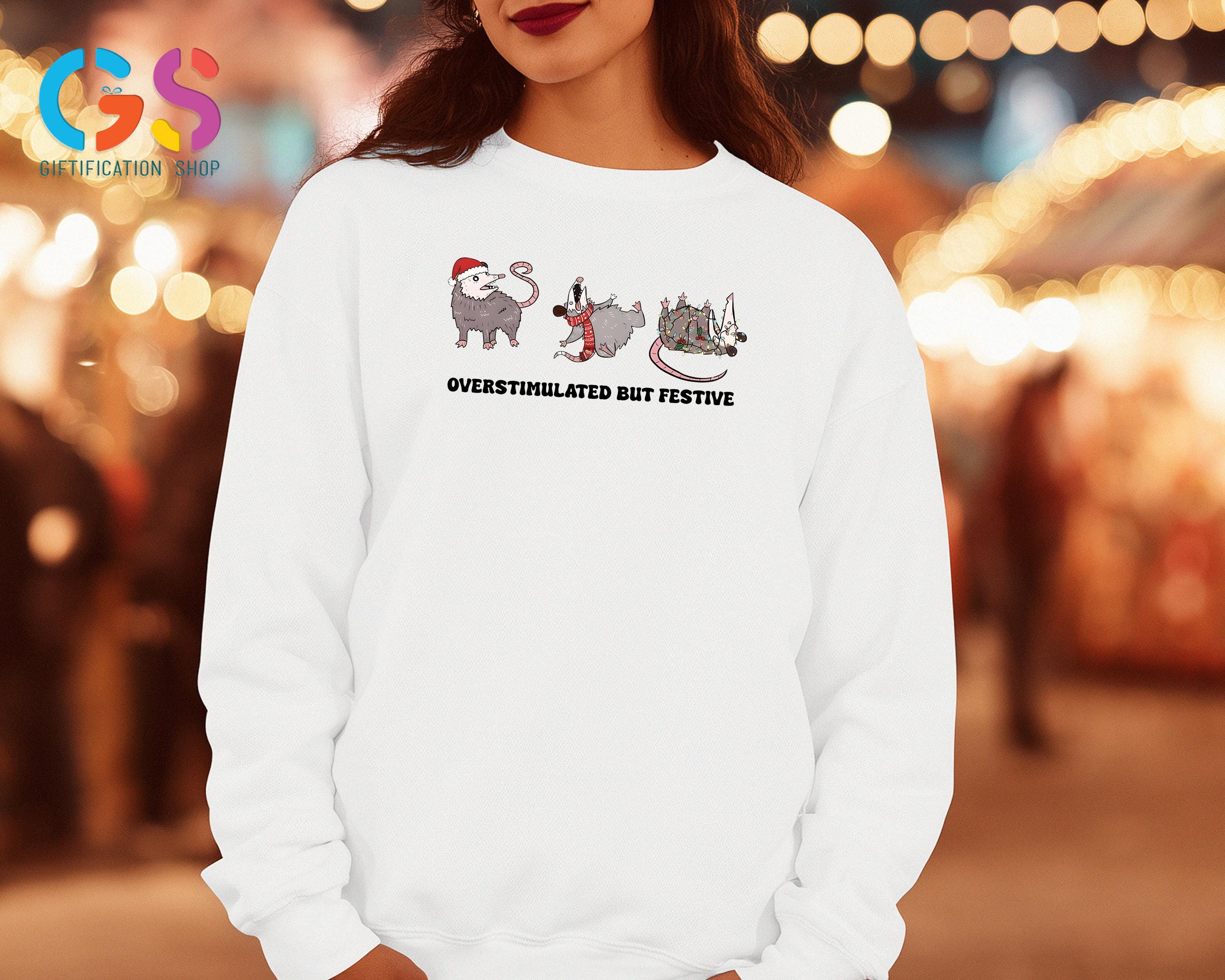 Rat Christmas Sweatshirt, Overstimulated Animal Sweater, Xmas Holiday Pet Lover Gift, Funny Sarcastic Winter Clothing