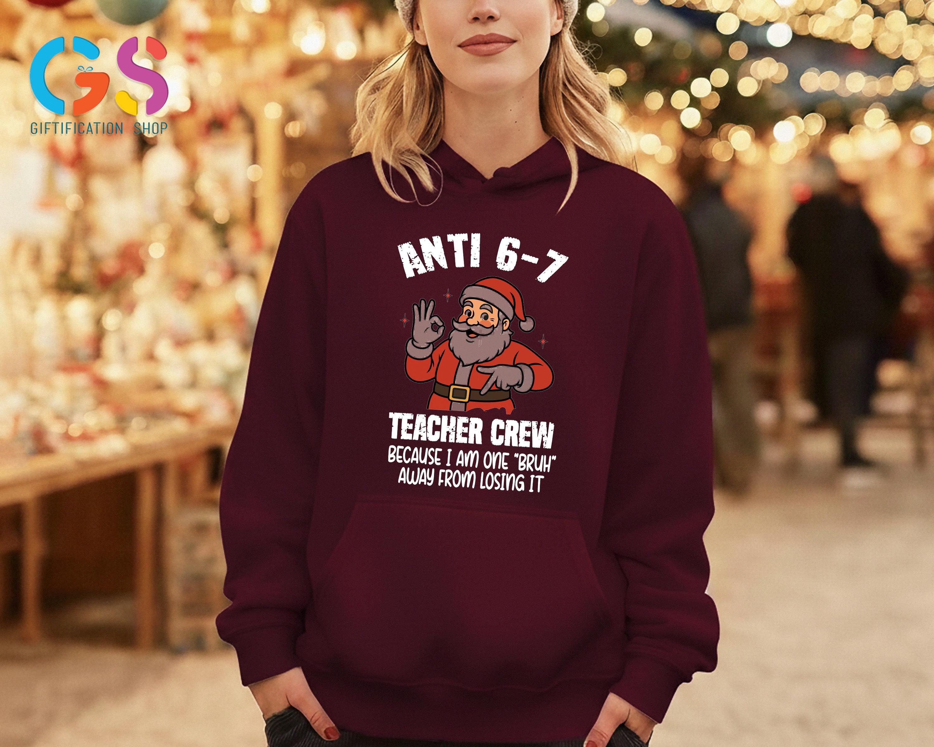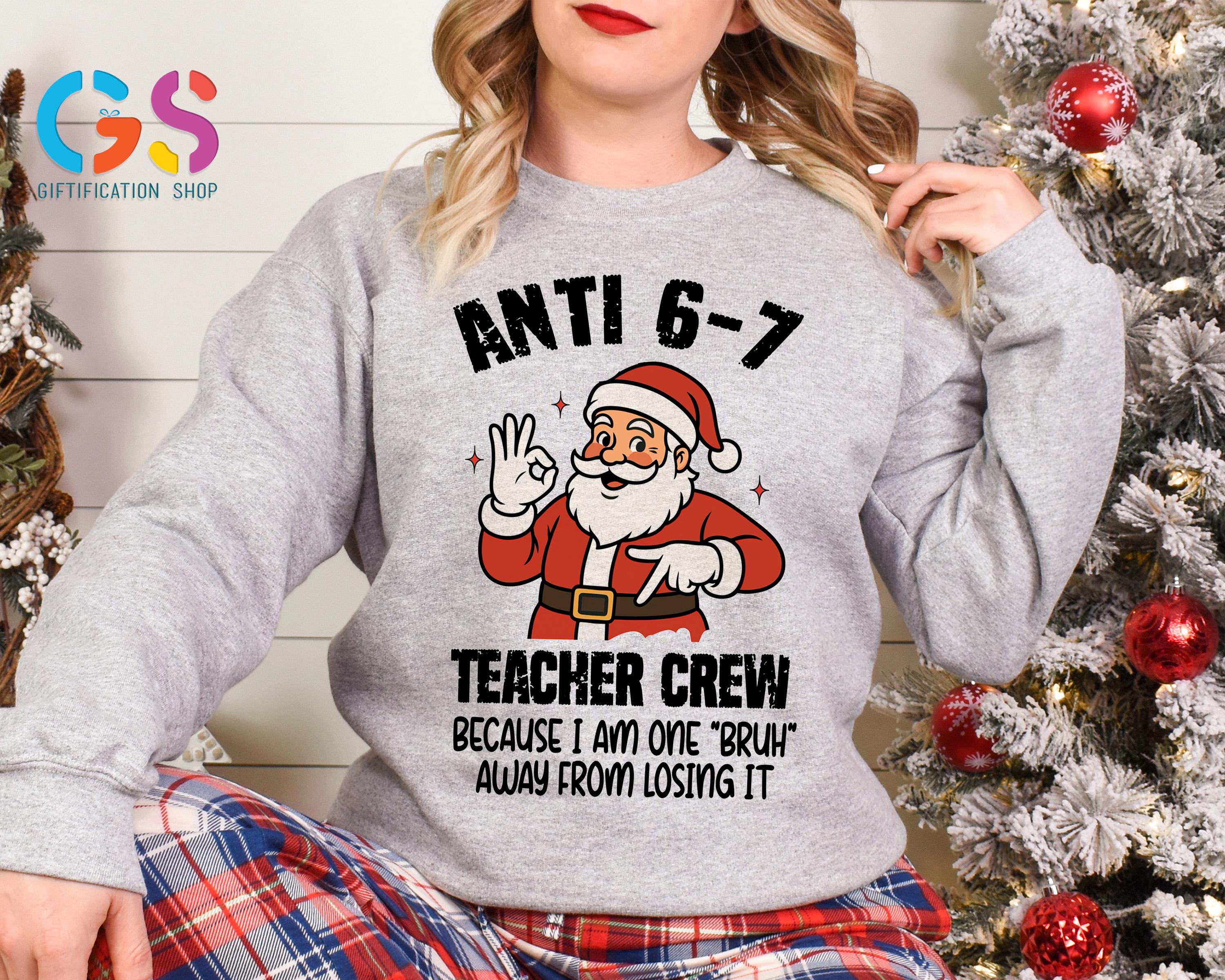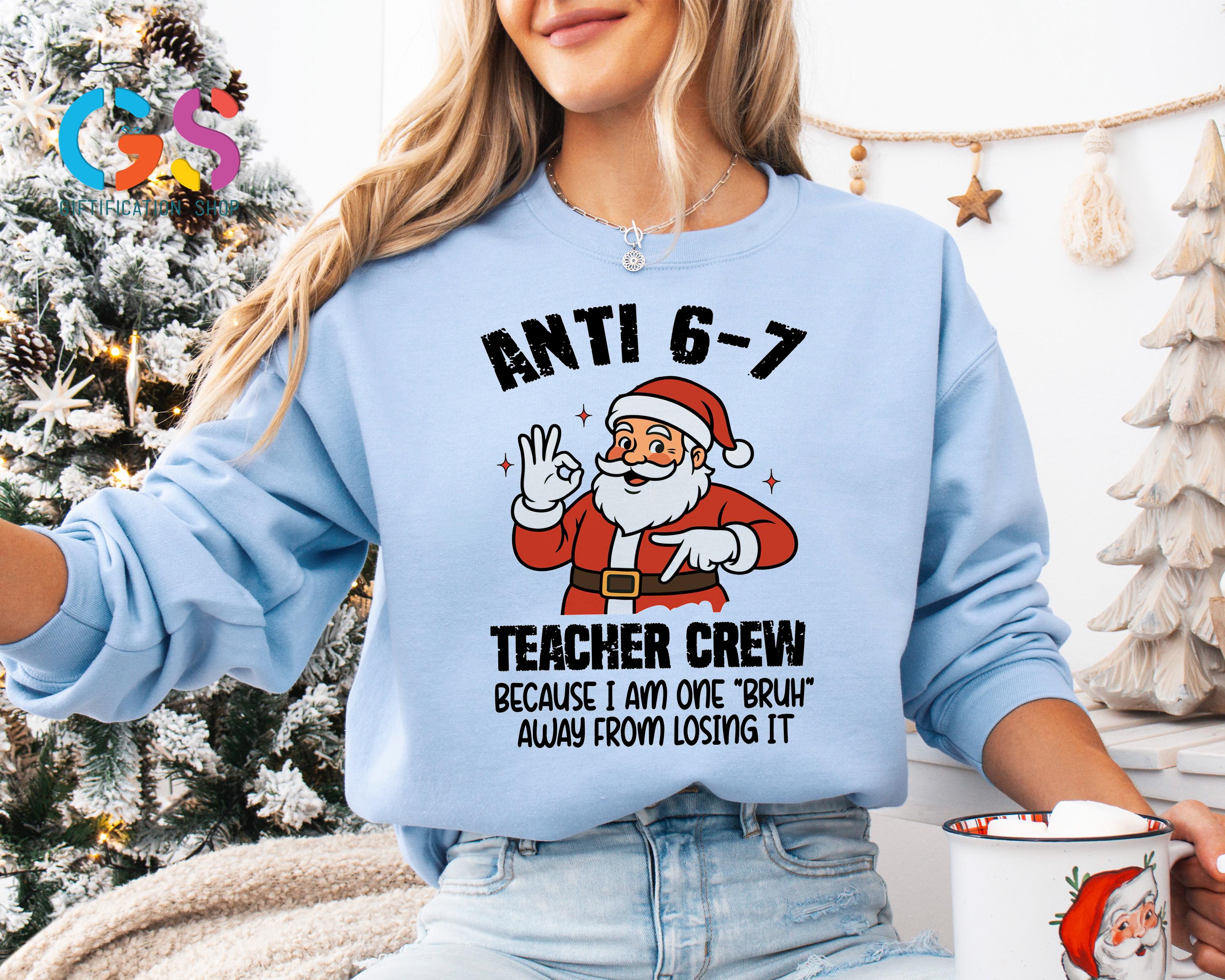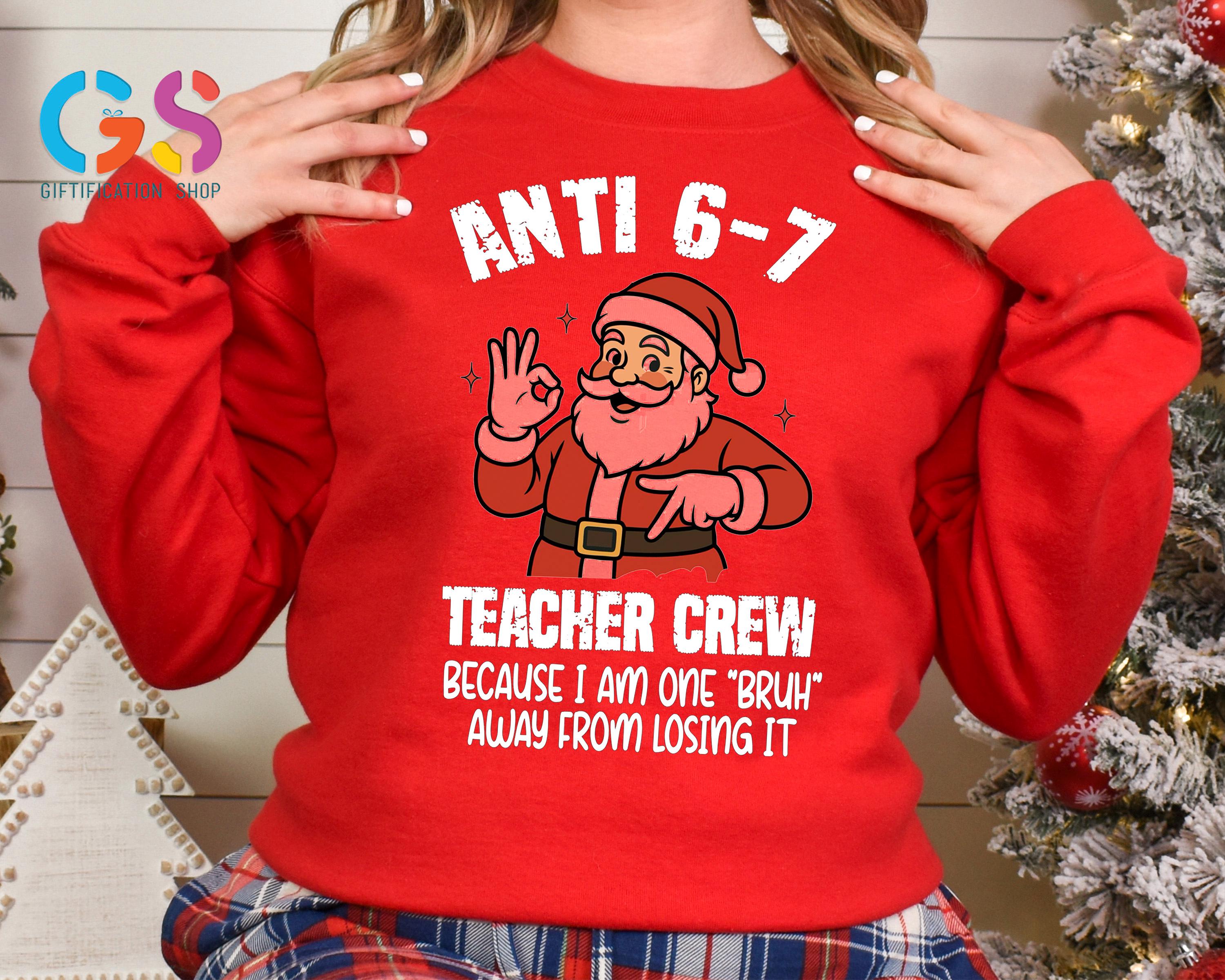 Bring humor to the classroom with this Christmas Santa 67 Teacher Crew Sweatshirt, a playful X-mas 6 7 sweater inspired by the iconic number meme loved by students and teachers alike. Perfect for celebrating the 67th day of school or adding some gen alpha humor to your Christmas apparel, this six seven shirt makes a fun math teacher gift or unique Christmas shirt for any educator. Whether you need a santa shirt for school days, a standout 67 teacher gift, or a cozy xmas shirt that brings smiles, this meme-style design blends Christmas themes, classroom charm, and viral humor into the perfect holiday gift.