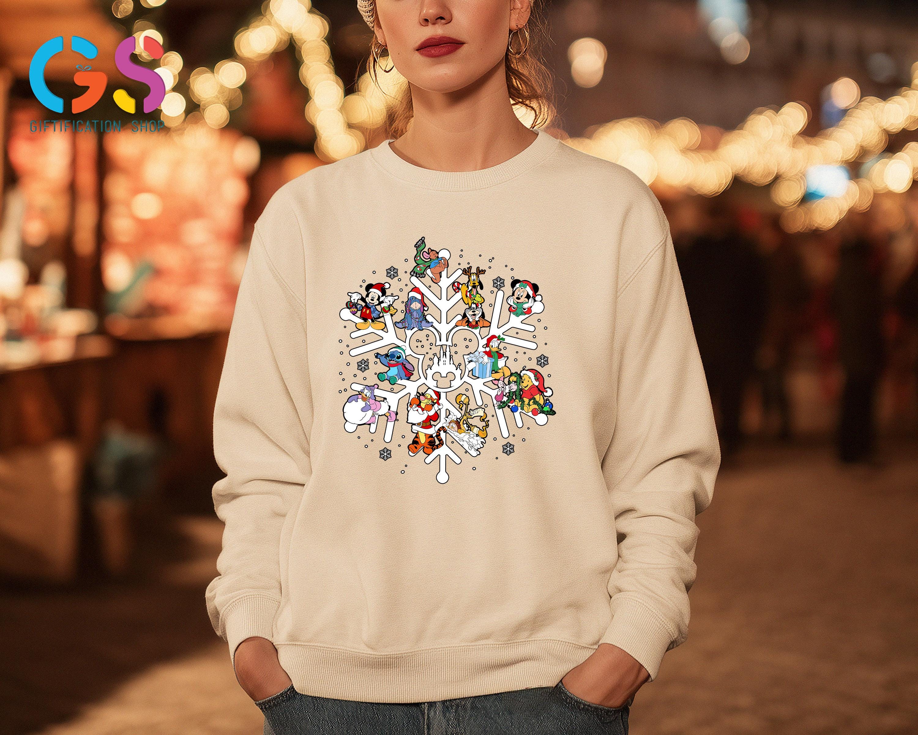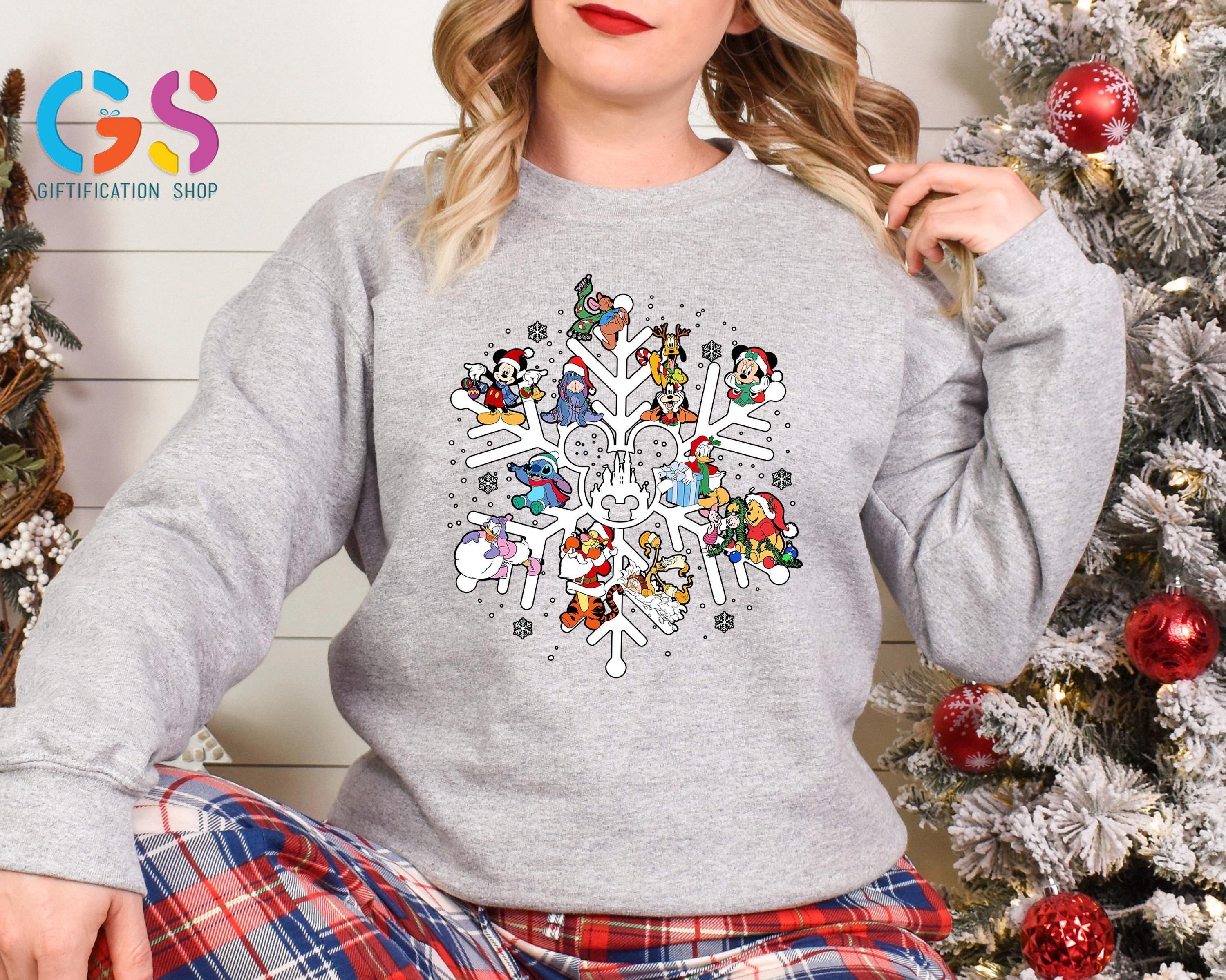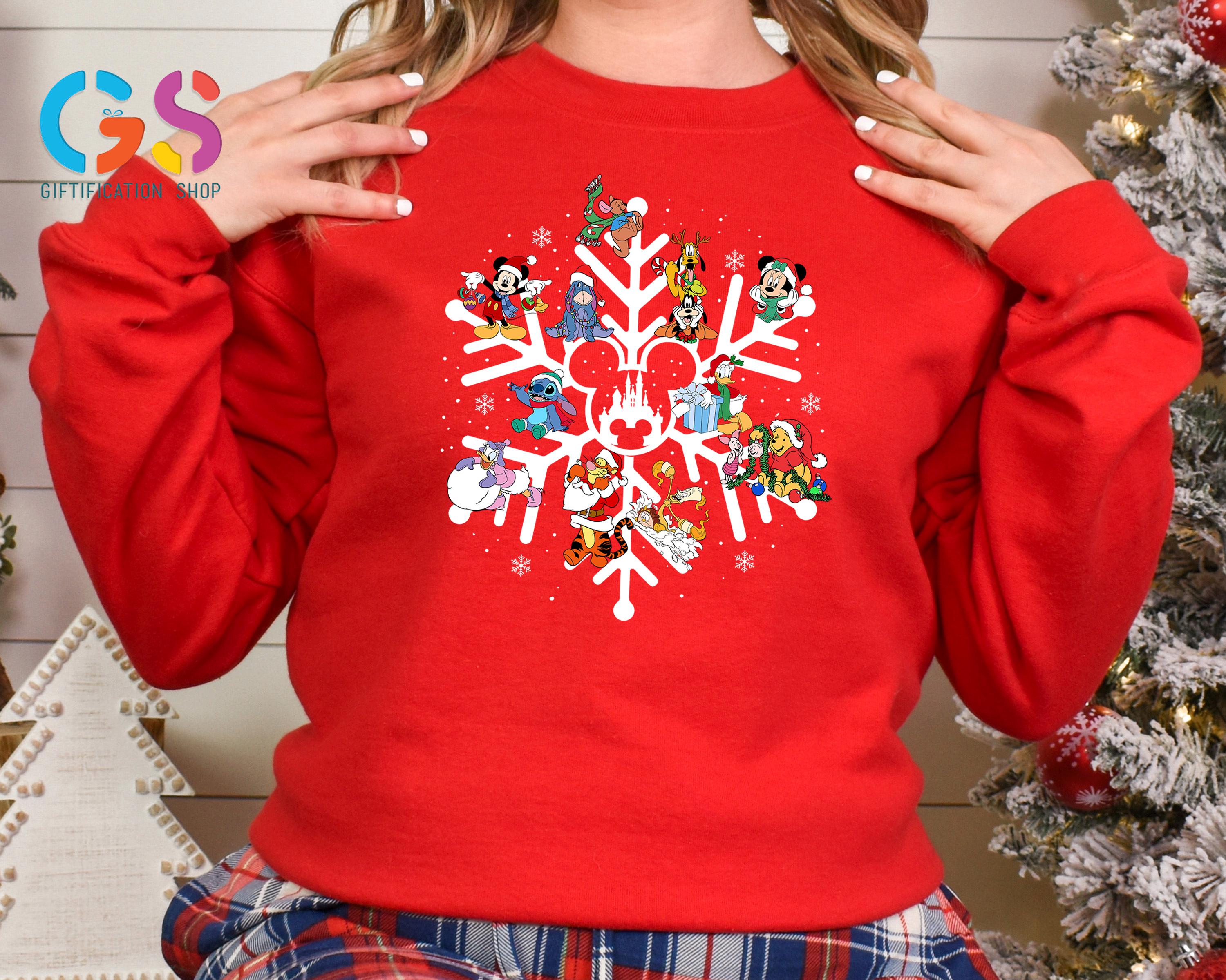 Disney Characters Snowflake Christmas Sweatshirt, Disneyland Holiday Sweater, Merry Xmas Mickey&Friends Clothing