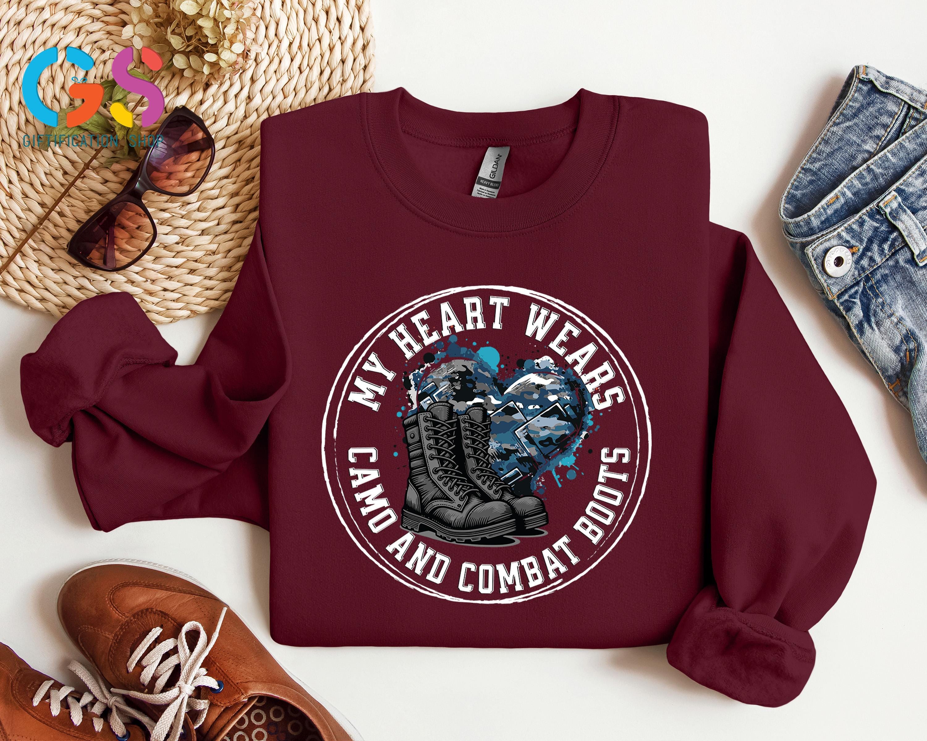 Honor bravery and service with this Military Boot Veteran Sweatshirt, a bold and meaningful design inspired by the classic military boot shirt and perfect for any soldier tribute tee lover. Ideal as a Veterans Day tee, soldier gift shirt, or everyday patriotic tee, it features strong American pride with a timeless American flag tee feel. Whether you support the US military, marine life, army, or air force, this cozy American Flag Navy sweater makes a powerful statement. Great for military homecoming, boot camp celebrations, or showing marine support, this Soldier Heart Homecoming Hoodie is a heartfelt way to honor the heroes who serve.
