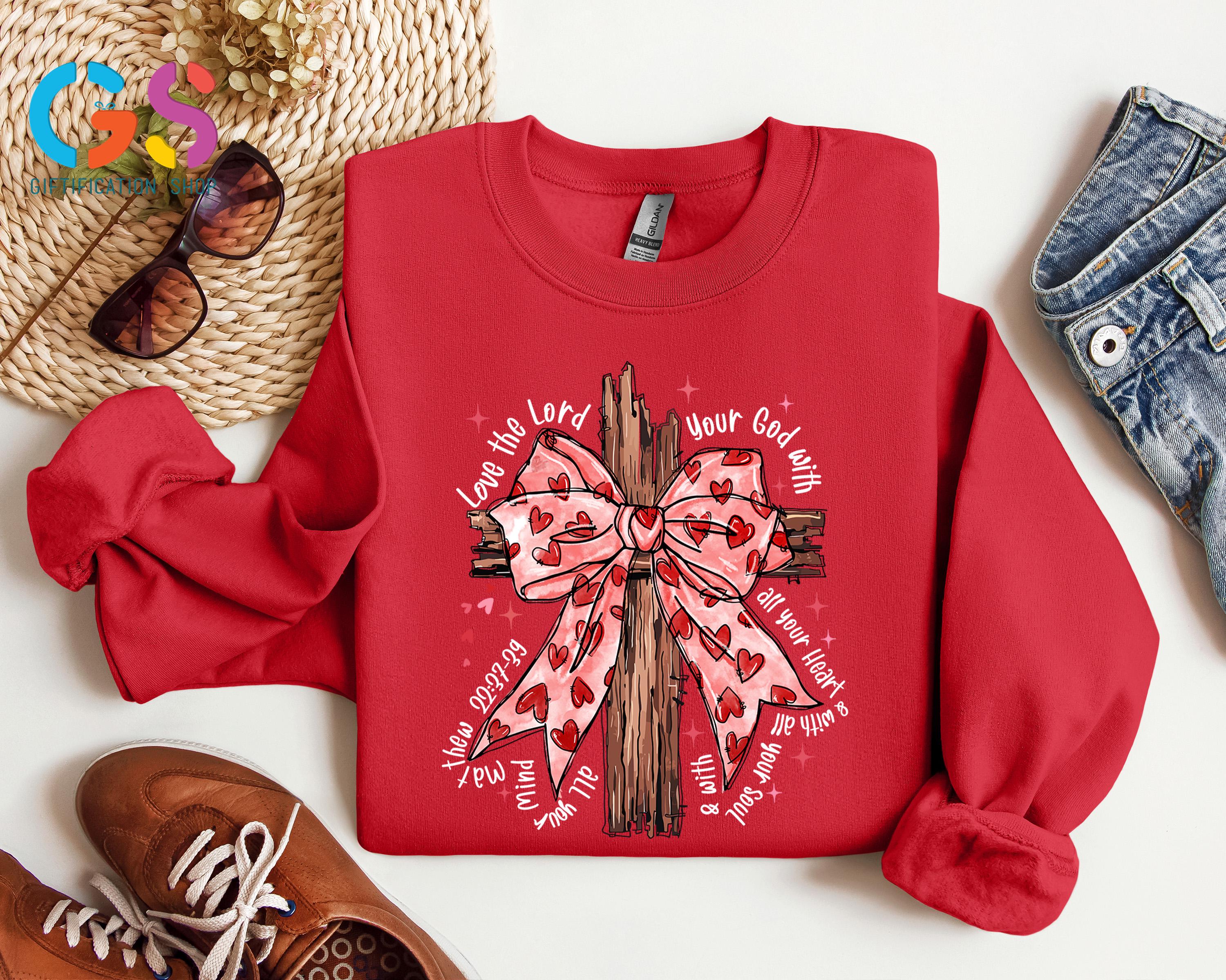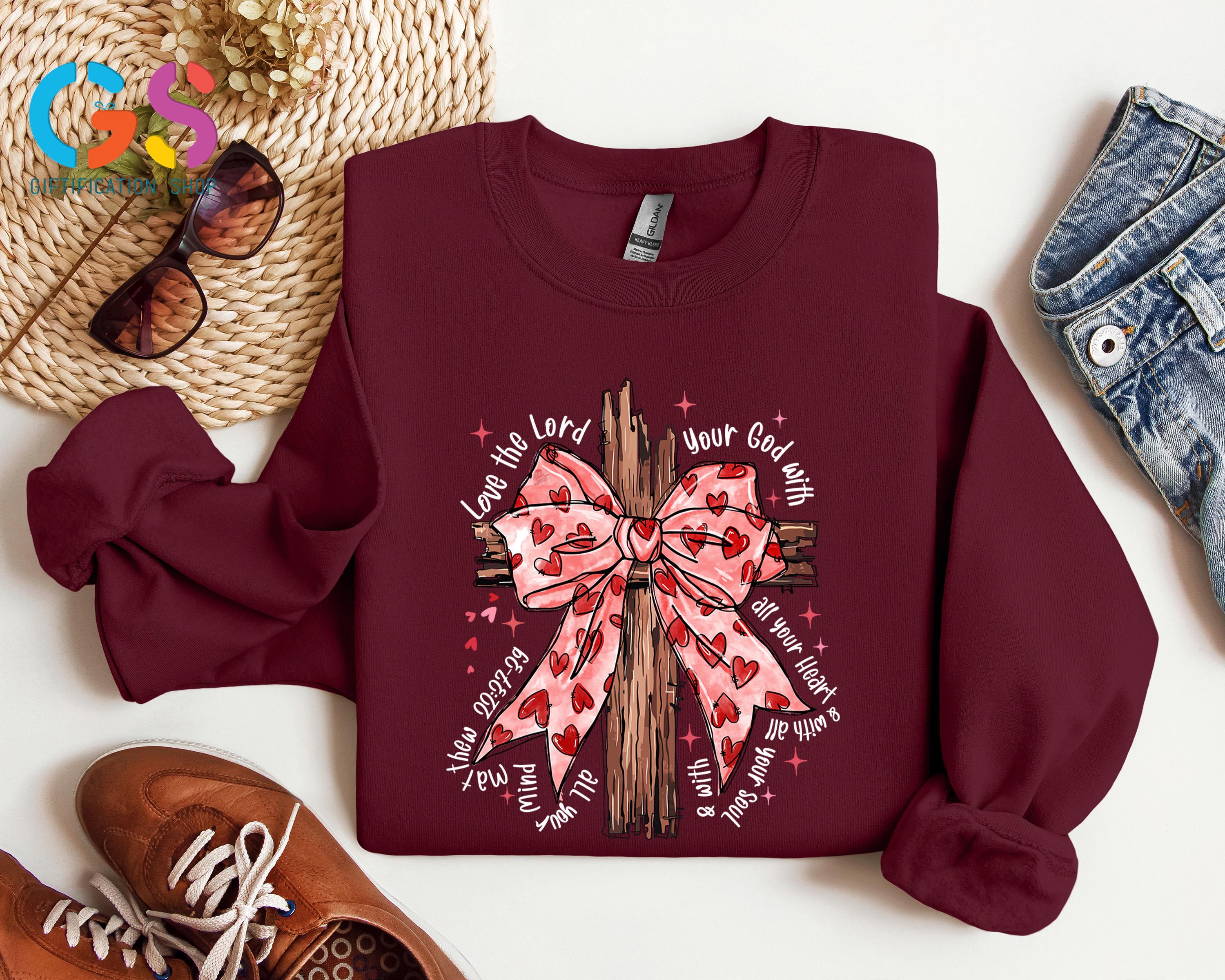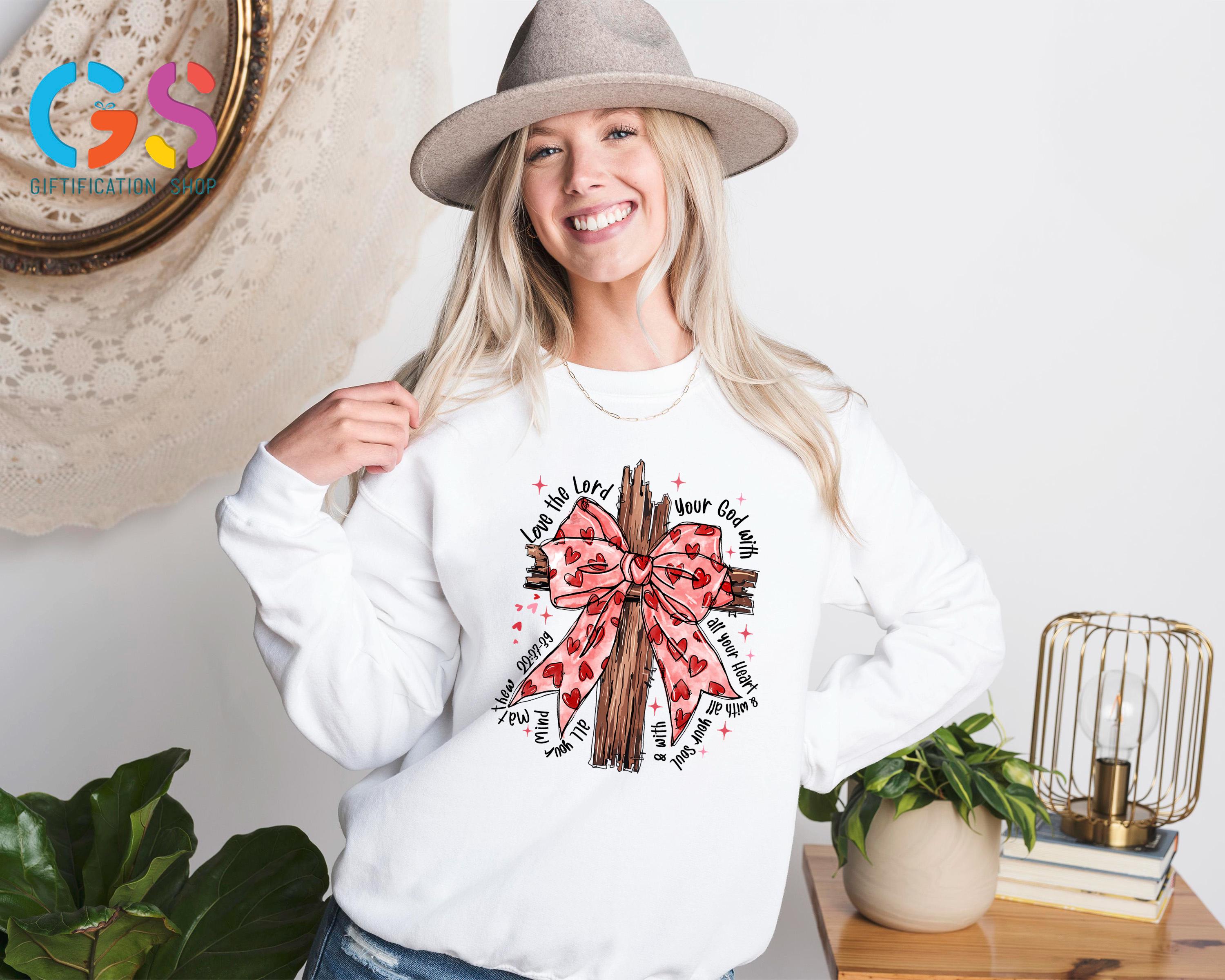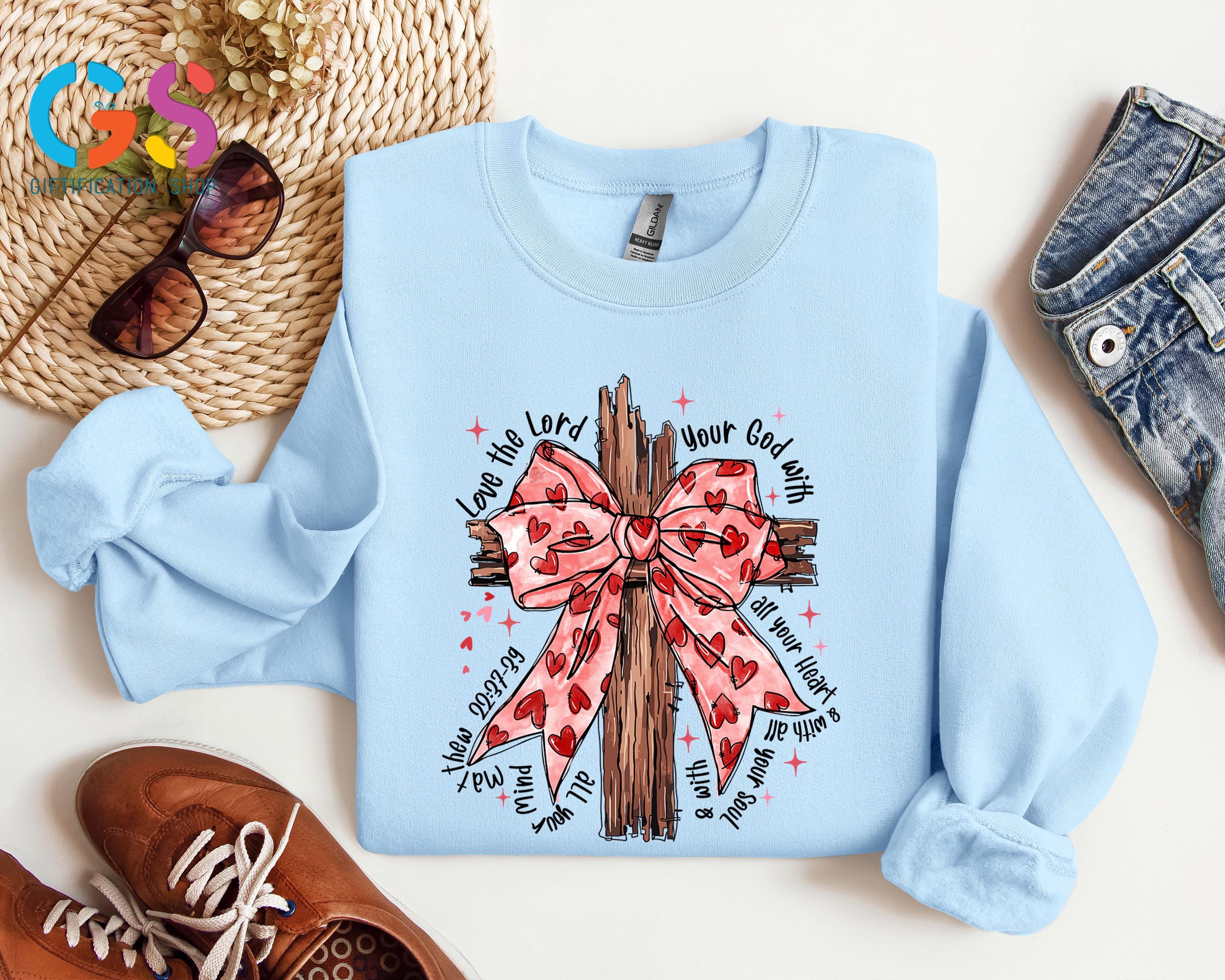 Valentine Coquette Christian Sweatshirt, Jesus Bible Verse Sweater, Religious Faith Women Gift, Heart Lover Hoodie