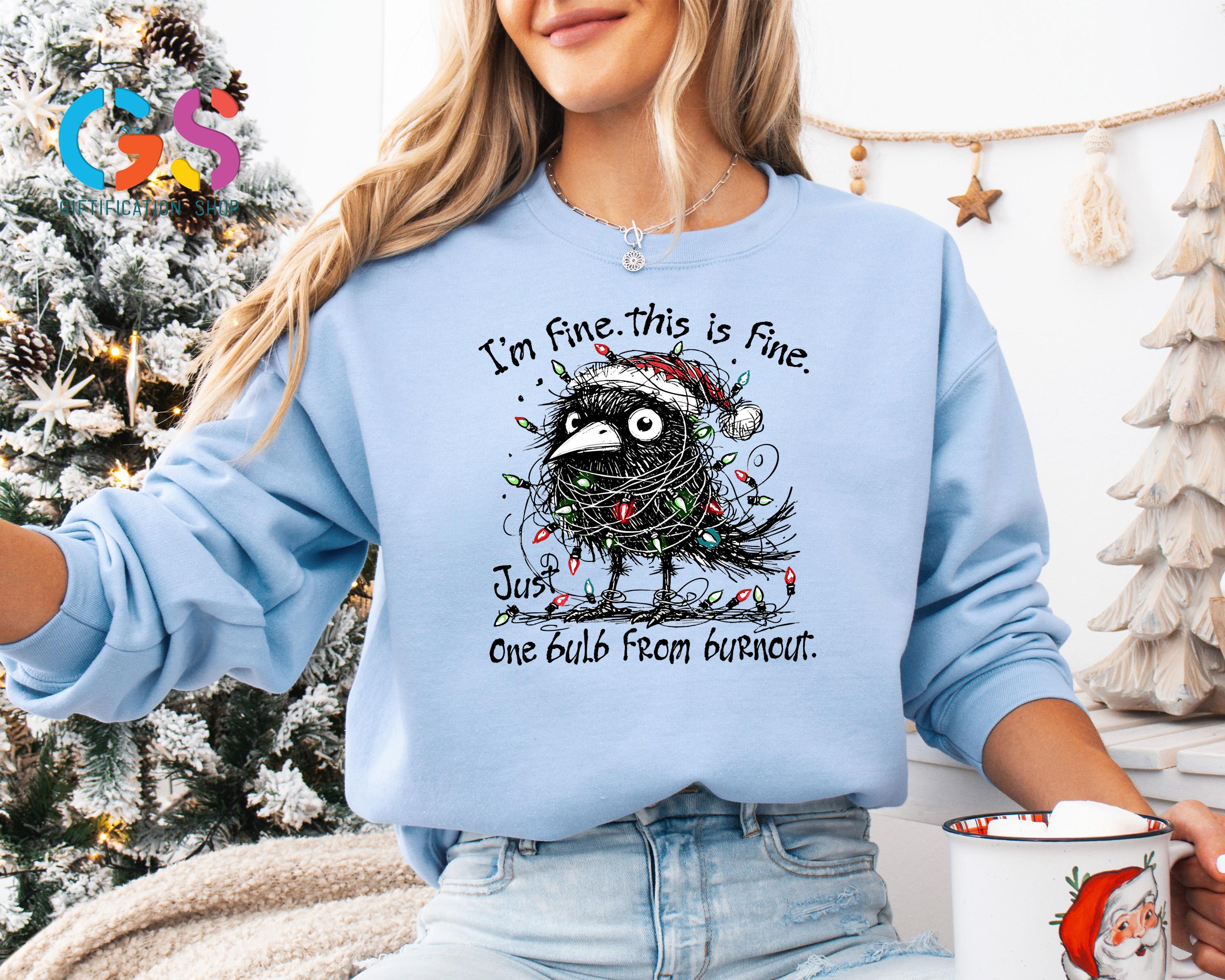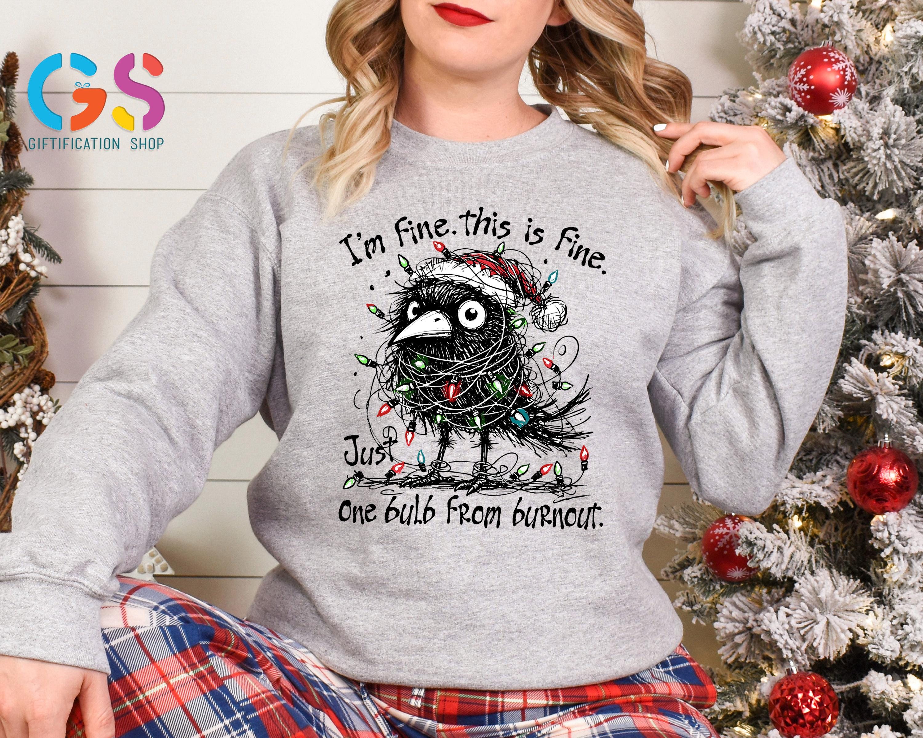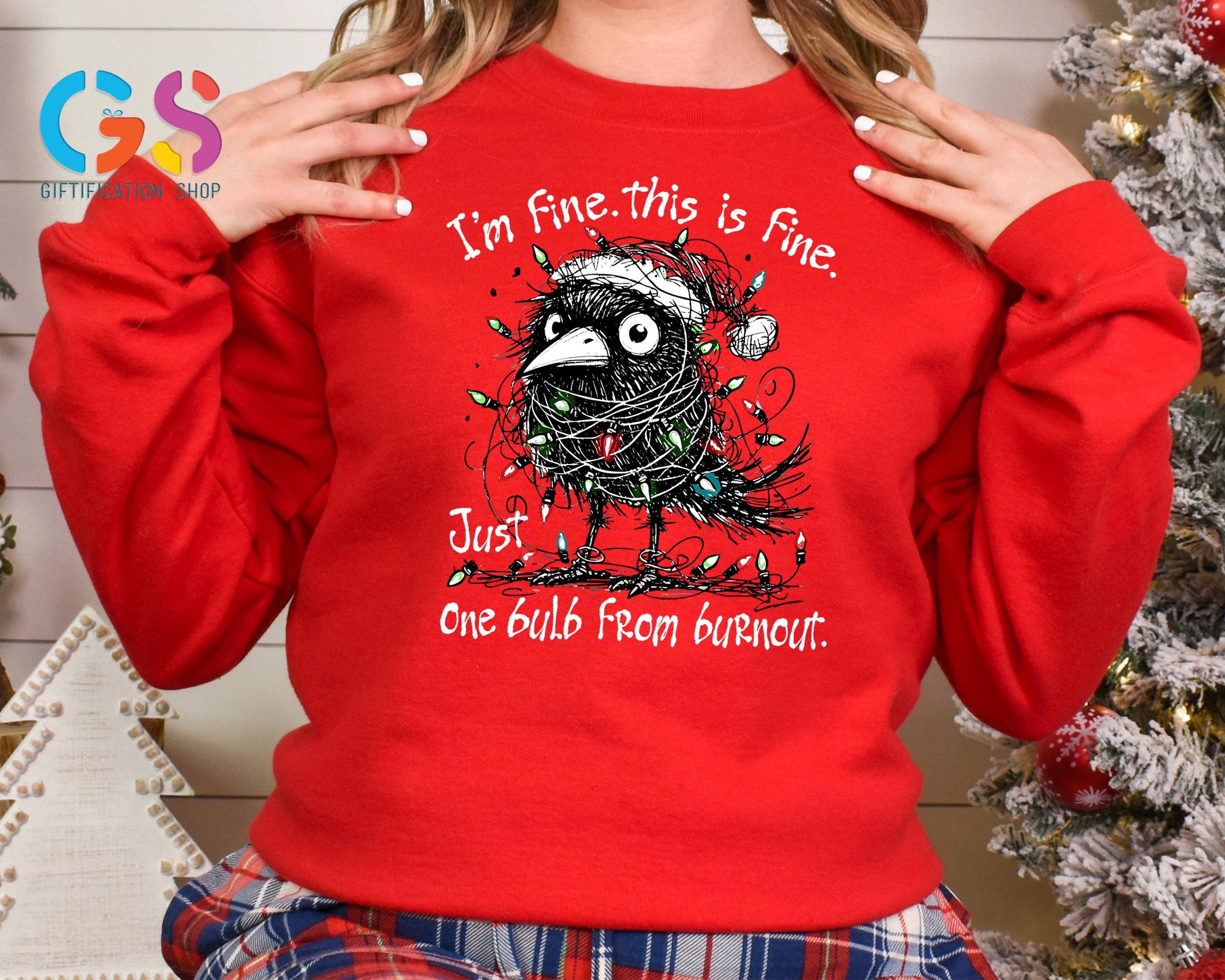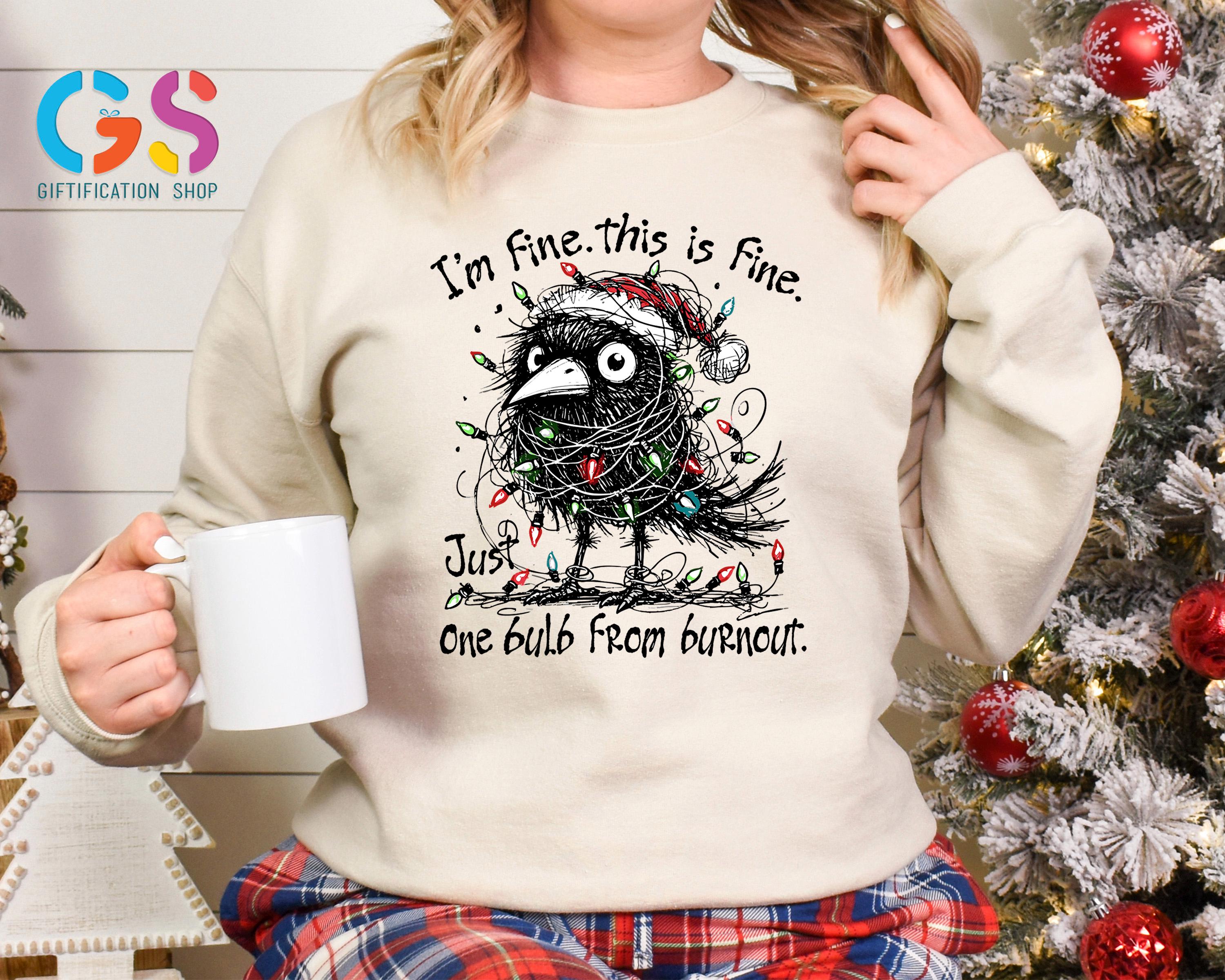 I am Fine Raven Christmas Sweatshirt, Dark Humor Holiday Crewneck, Merry Xmas Animal Lover Gift, Cozy Top