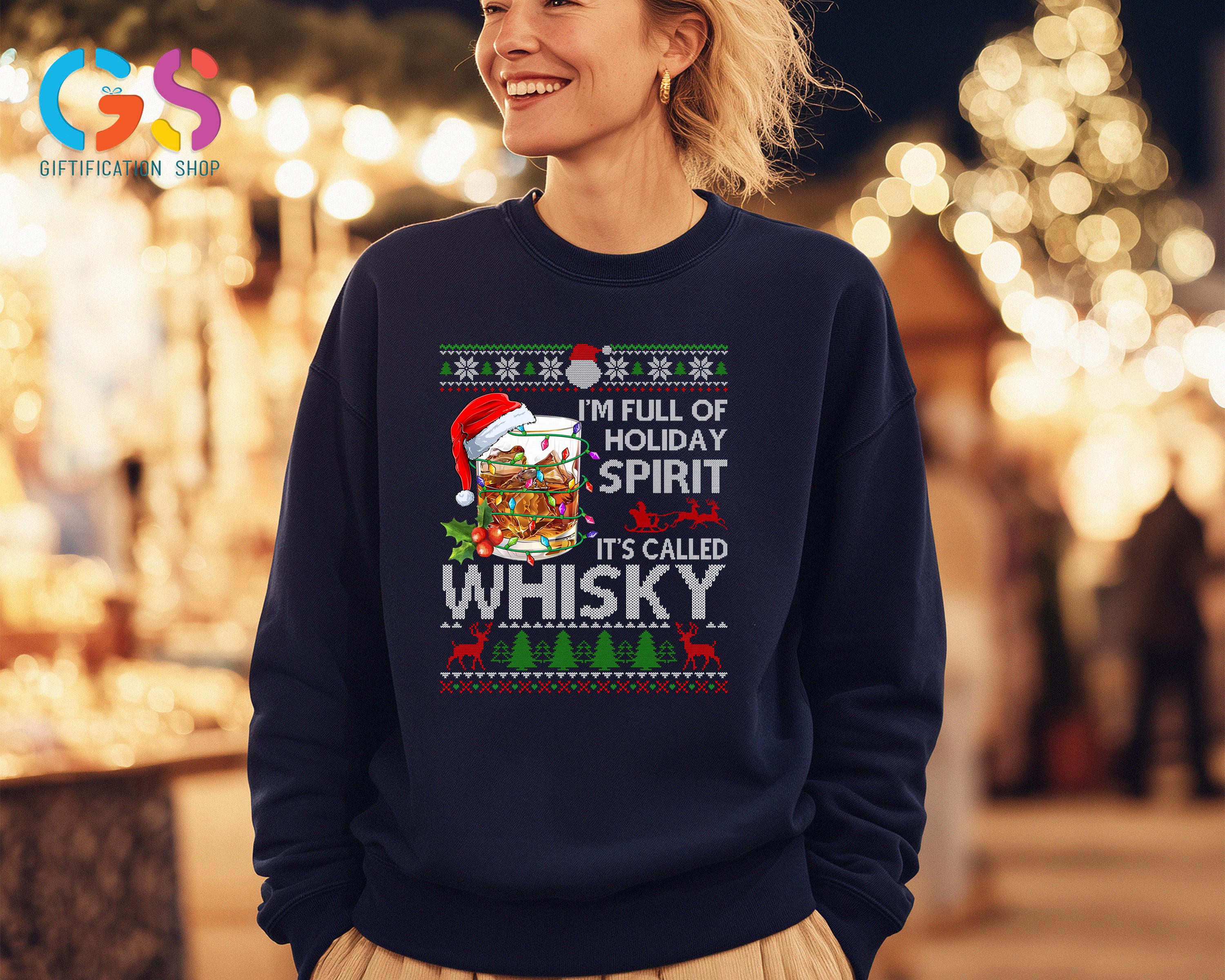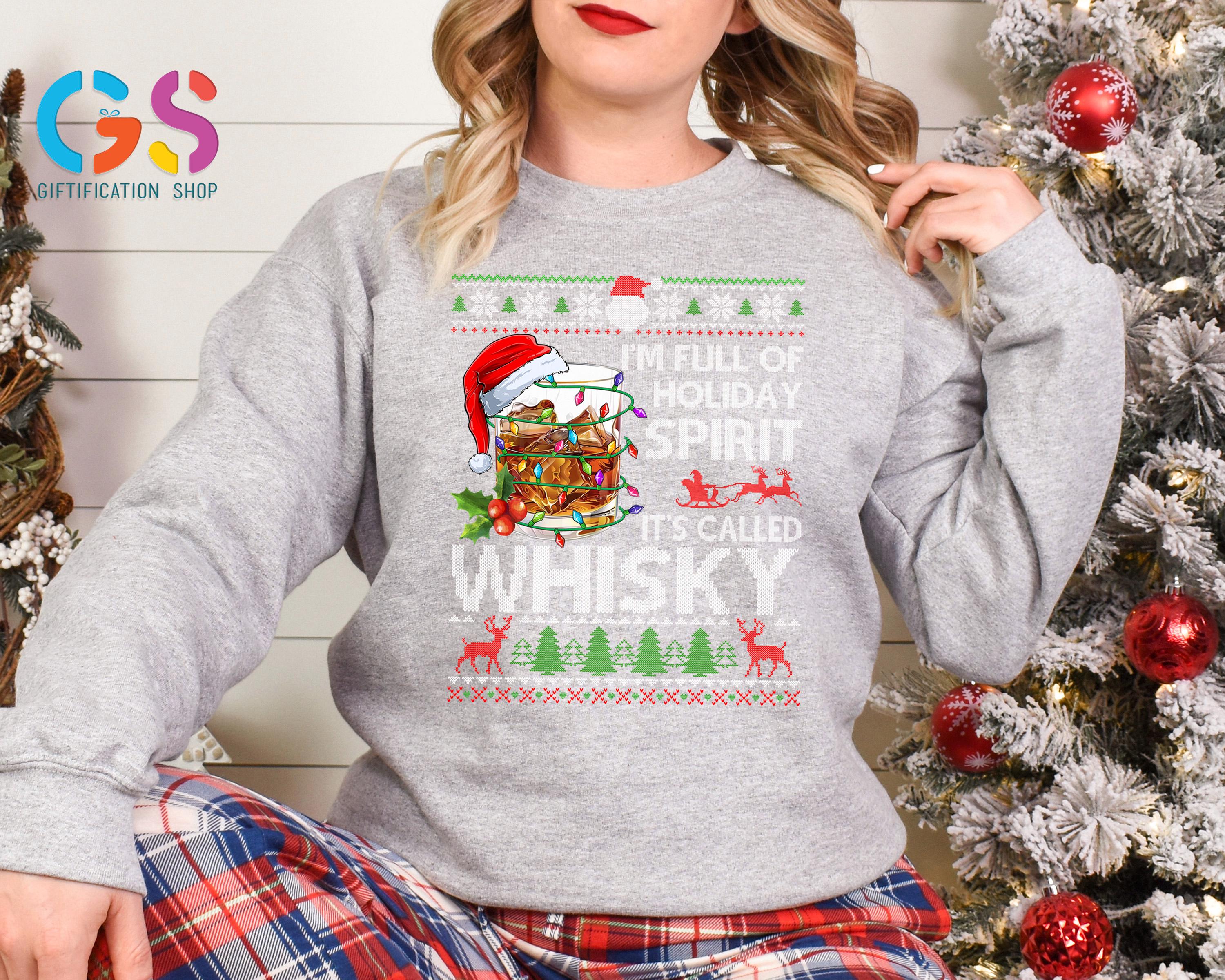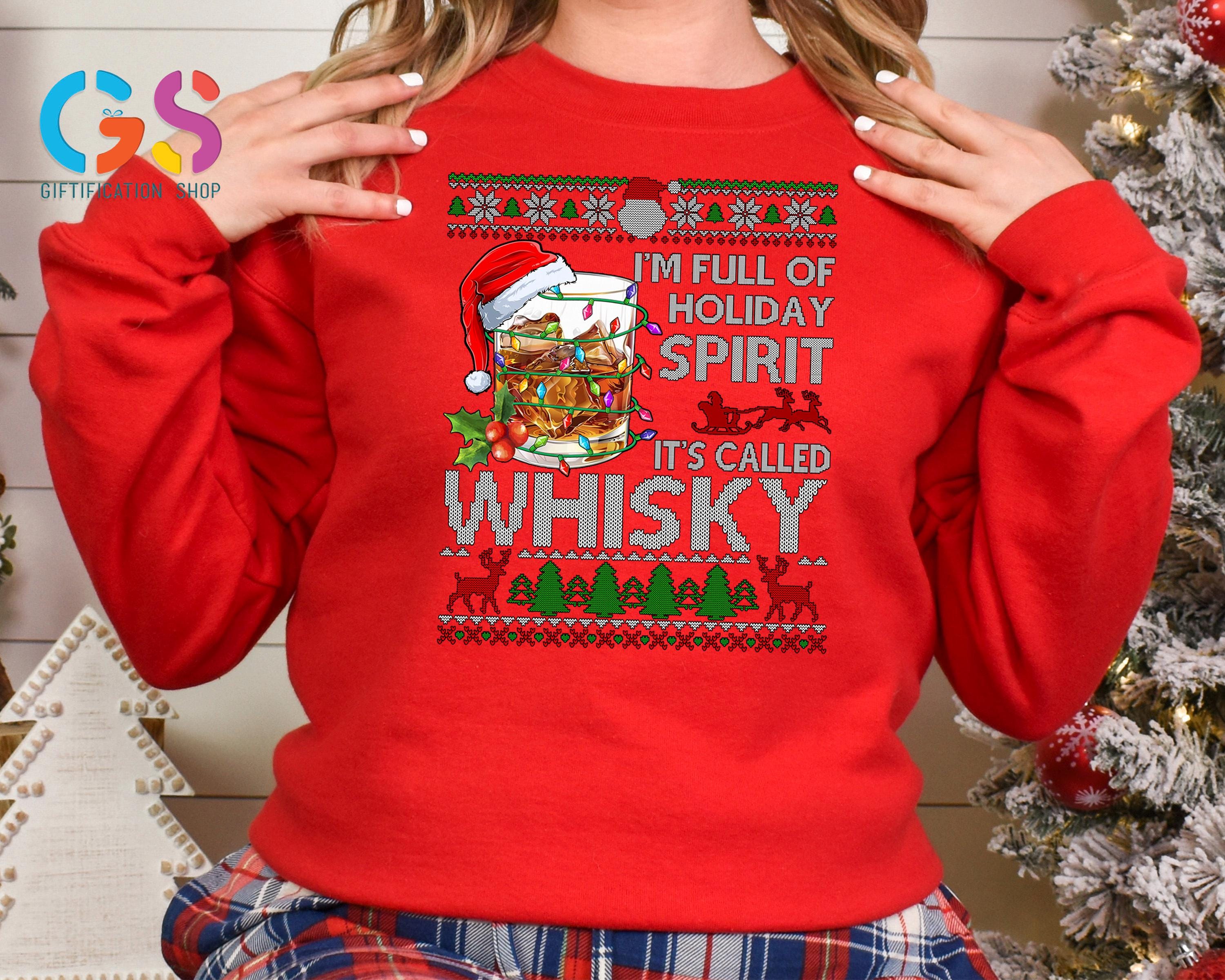 I'm Full Of Holiday Spirit It’s Called Whisky Sweater, Ugly Christmas Holiday Sweatshirt, Xmas Drink Party Hoodie