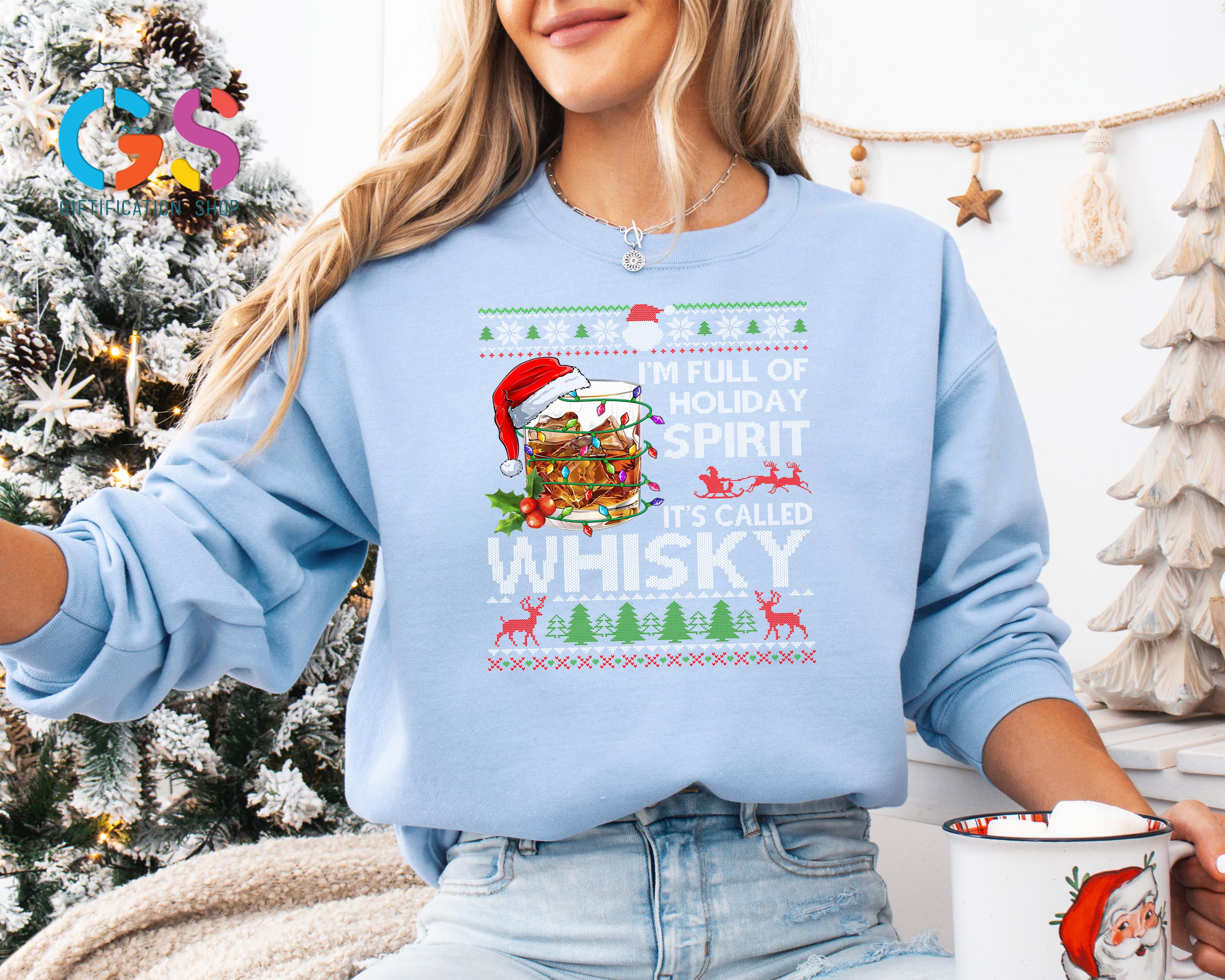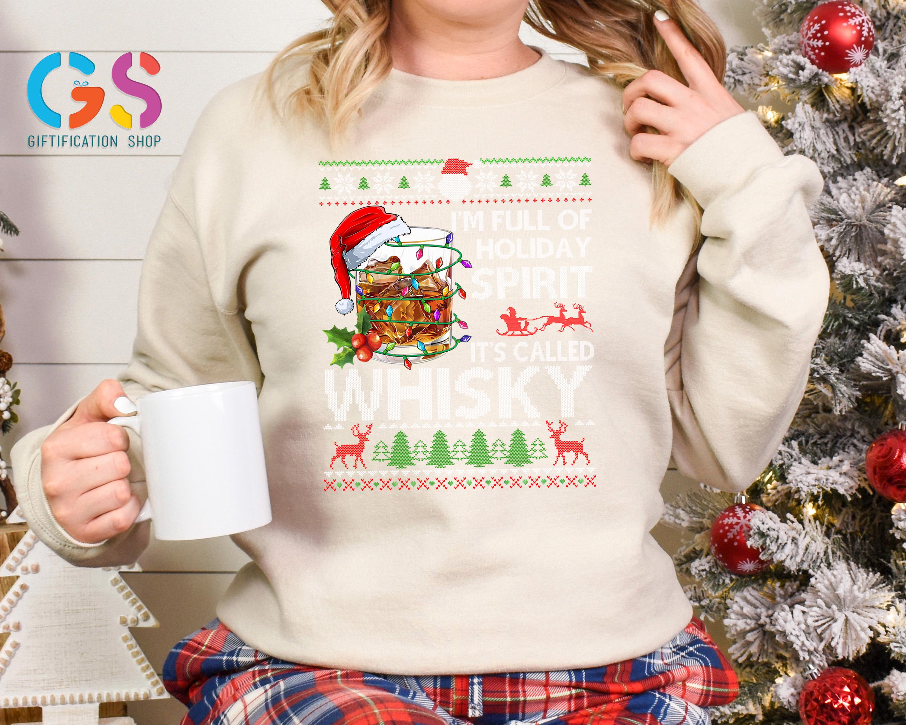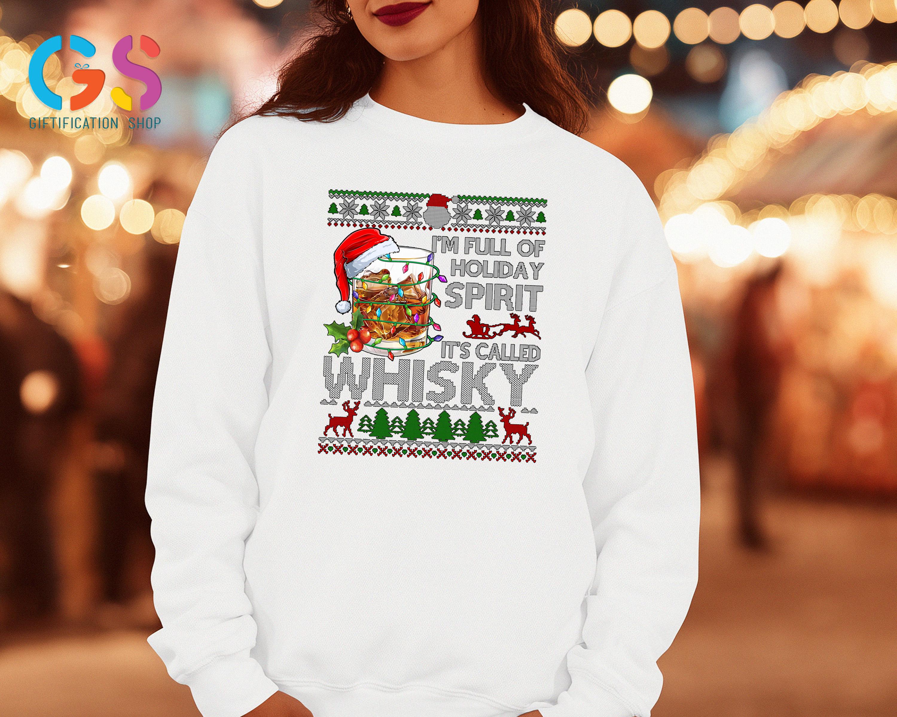 I'm Full Of Holiday Spirit It’s Called Whisky Sweater, Ugly Christmas Holiday Sweatshirt, Xmas Drink Party Hoodie