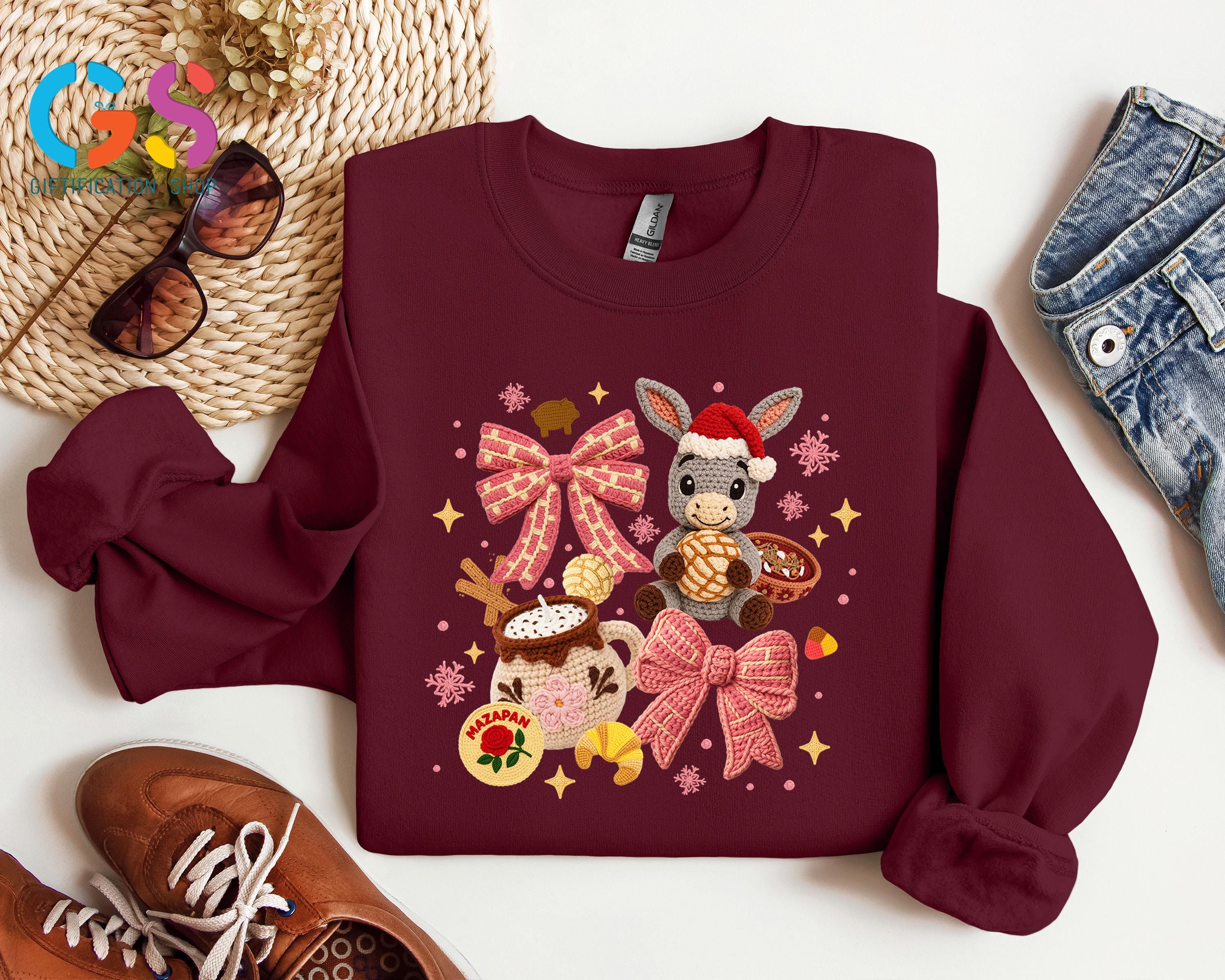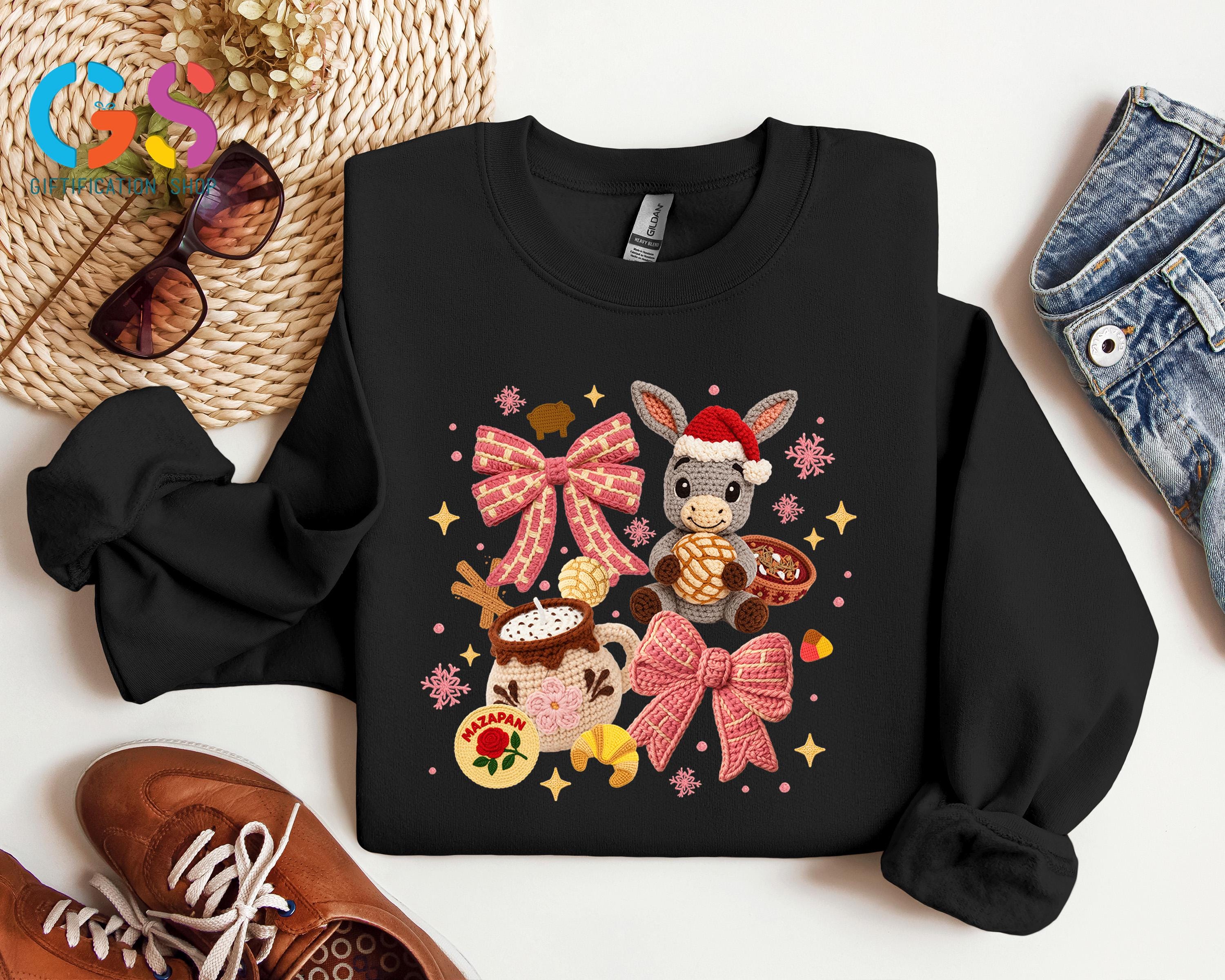 Coquette Bow Christmas Mexican Kid Sweatshirt, Spanish Toddler Holiday Sweater, Mexico Conchas Little Ginger Top