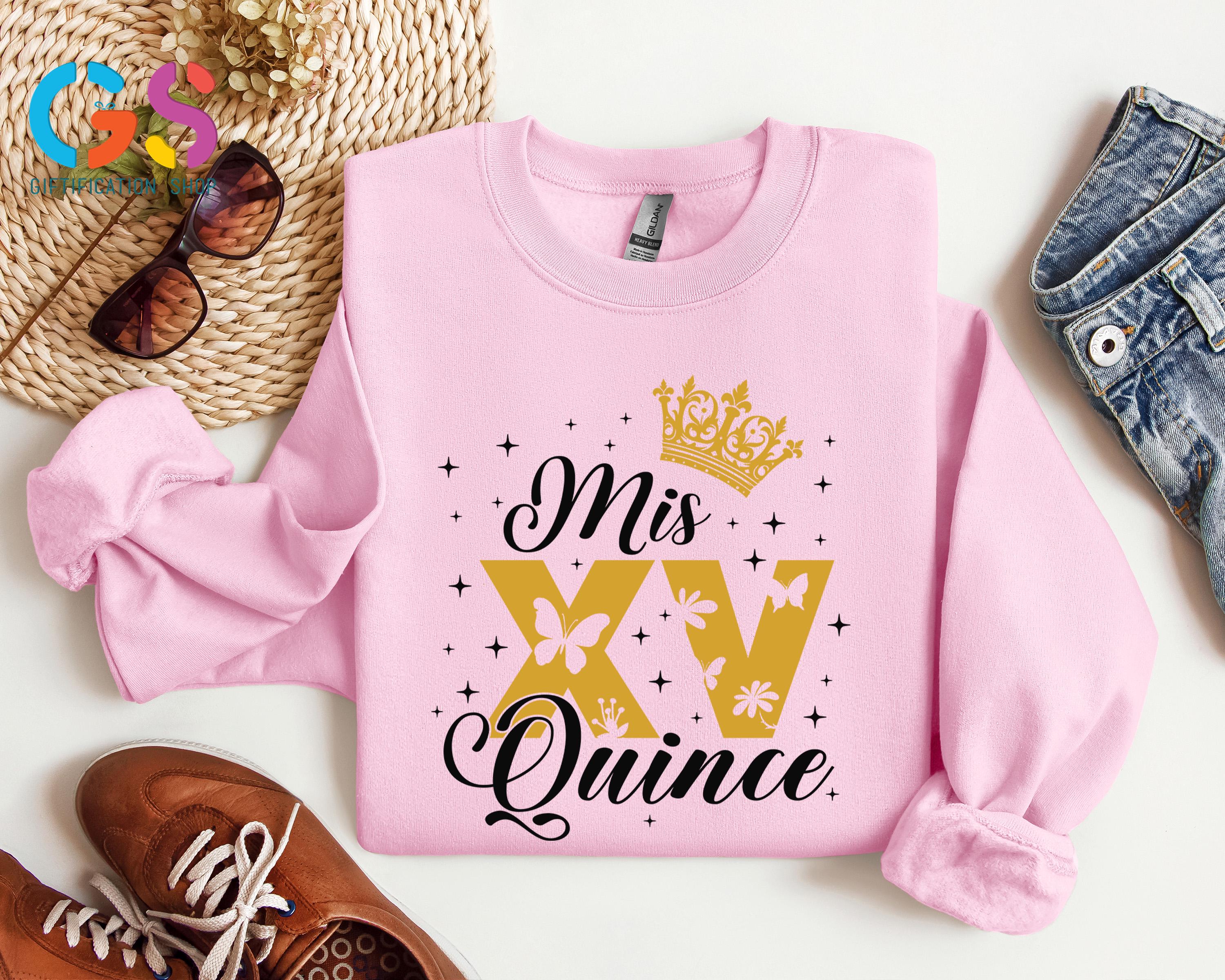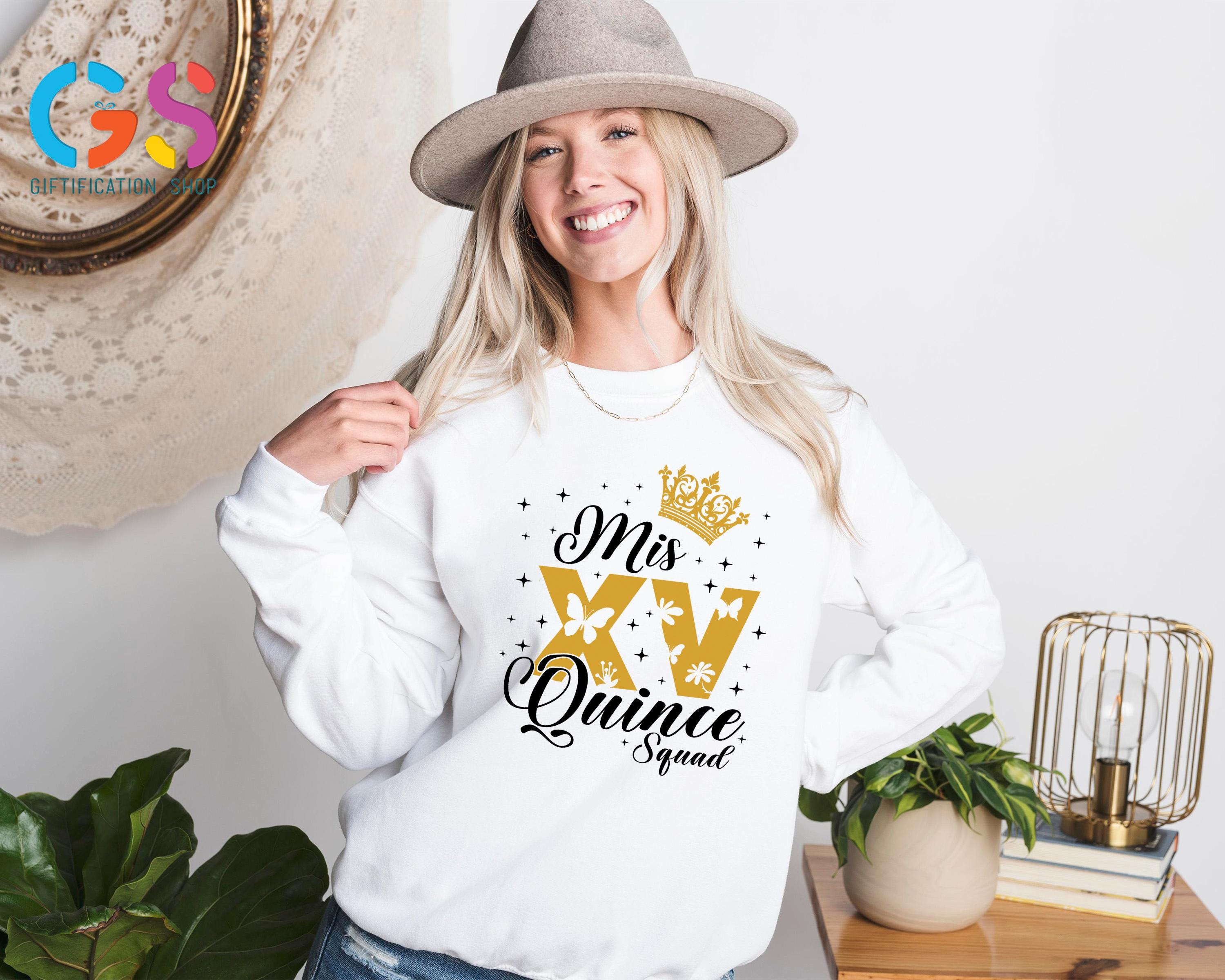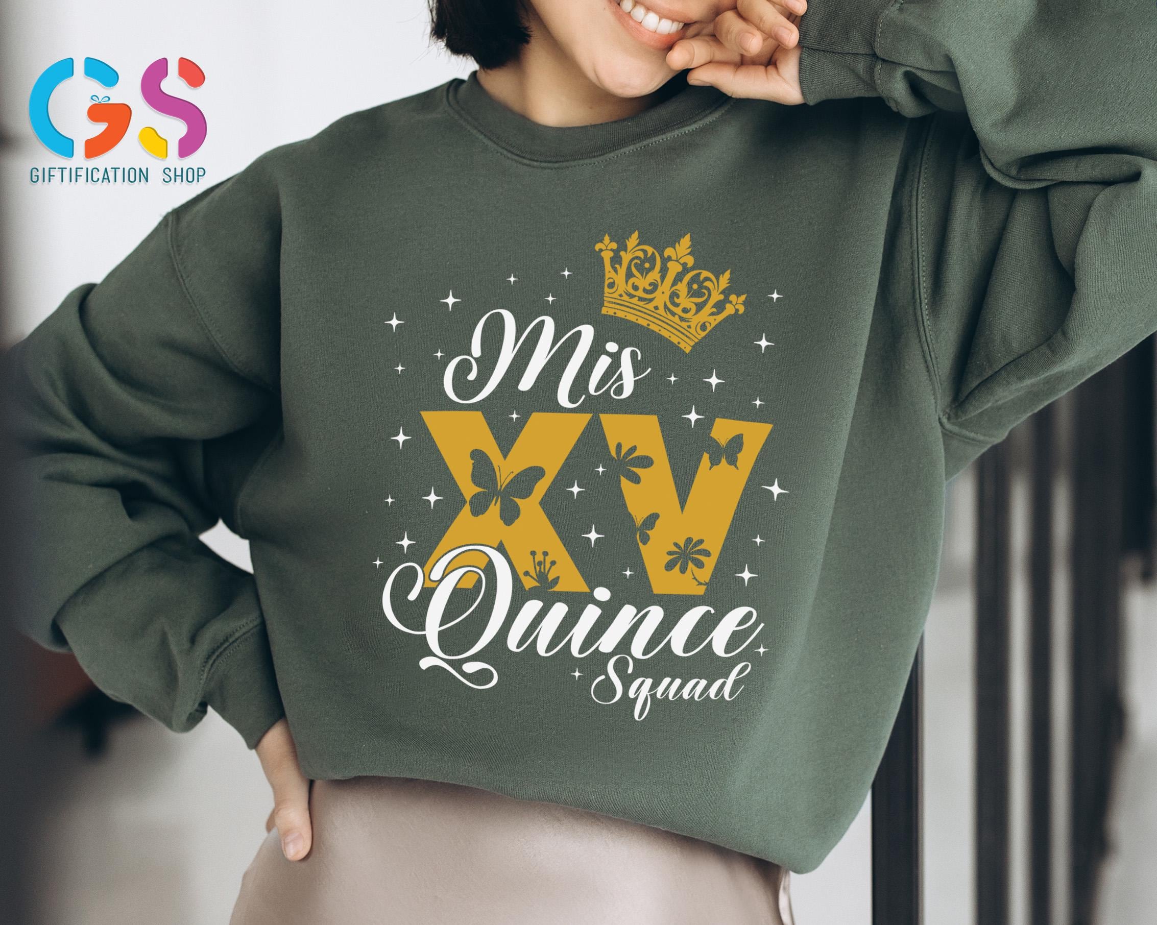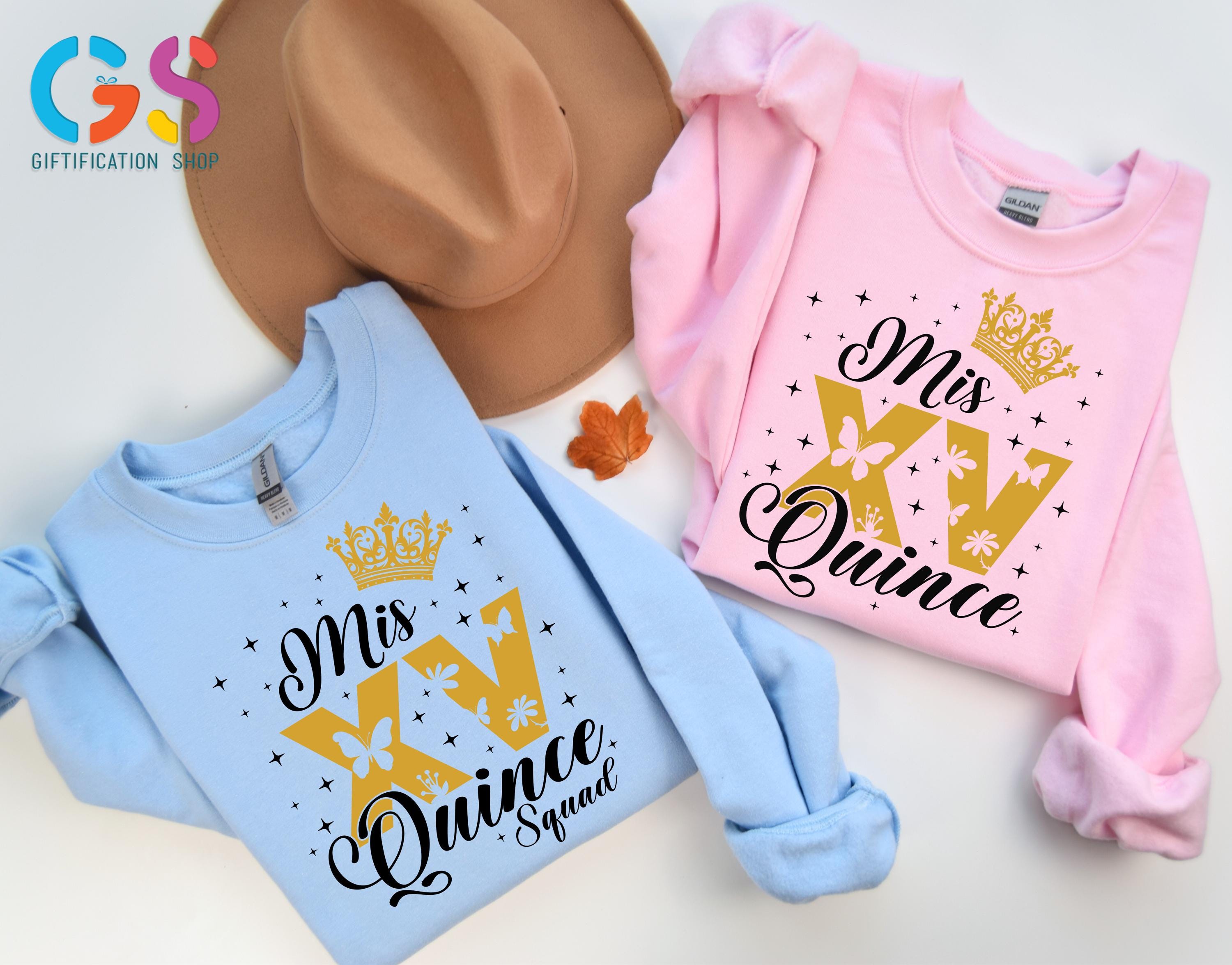 Mis Quince Princess And Squad Sweatshirt, 15th Birthday Matching Family Sweater, Mexico Bday Theme Party Gift