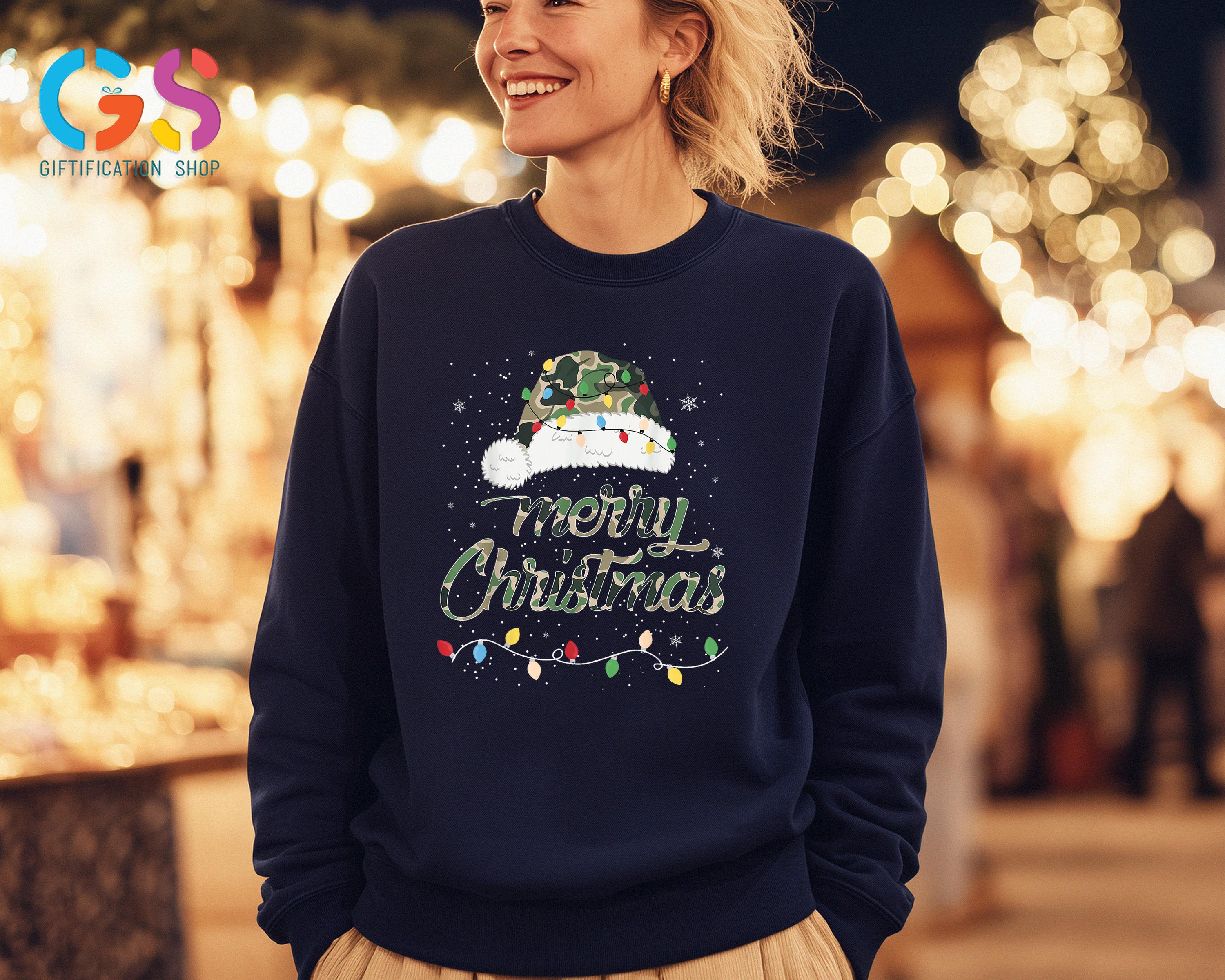 Add some rugged holiday cheer to your wardrobe with this energetic Camo Hat Merry Christmas Sweatshirt, designed for anyone who loves festive style with a hunting twist! Blending camo shirt vibes with playful Christmas lights and Santa shirt charm, this cozy top is perfect for the christmas season, christmas mama outfits, or anyone chasing those merry and bright moments. It makes an awesome hunting gift, hunter gift, or fun secret santa surprise, bringing bold personality to your favorite holiday tops. Whether you're after camo christmas shirt style or looking to boost your xmas vibes tshirt collection, this camouflage-inspired hoodie brings festive spirit and outdoorsy flair together in the merriest way!