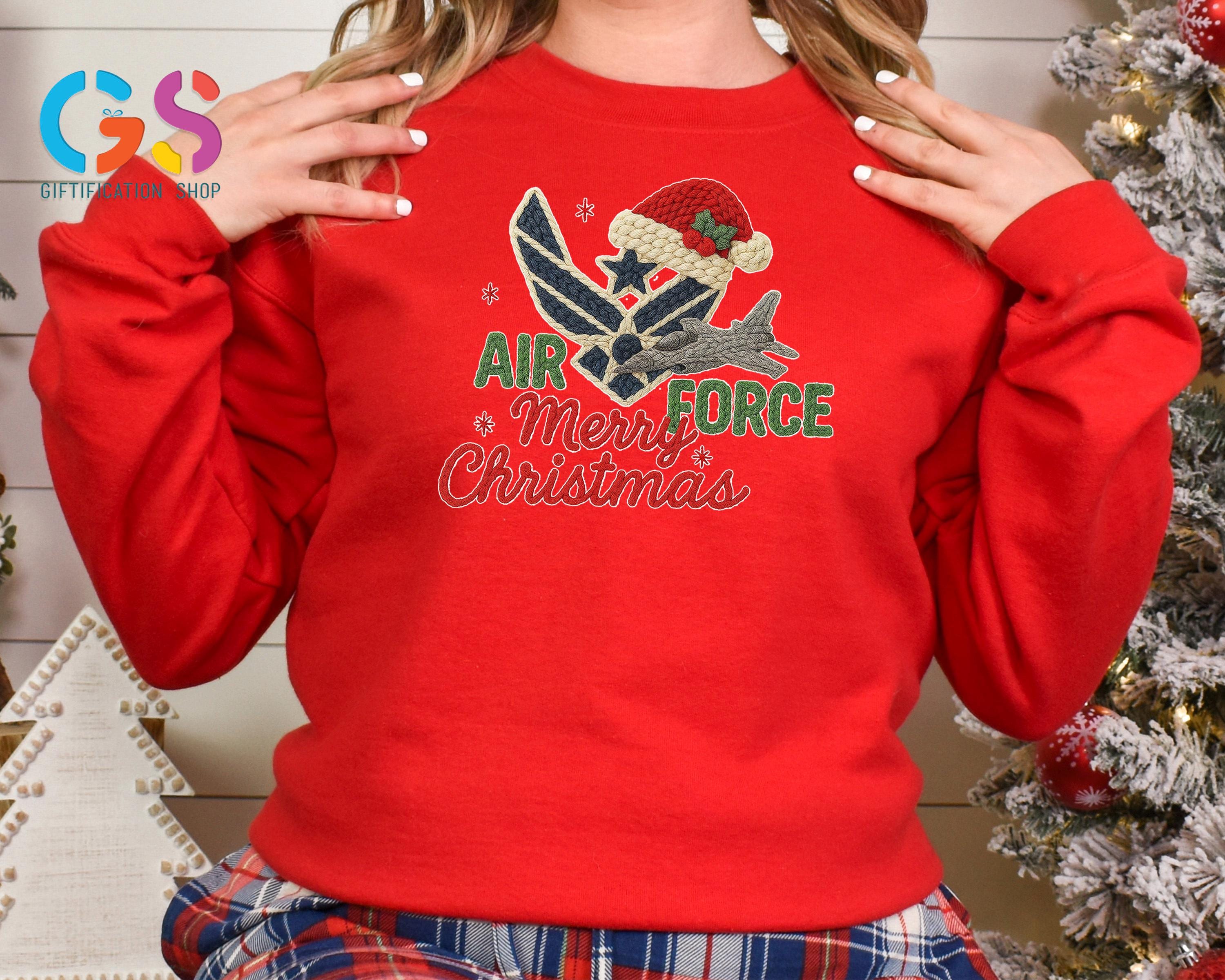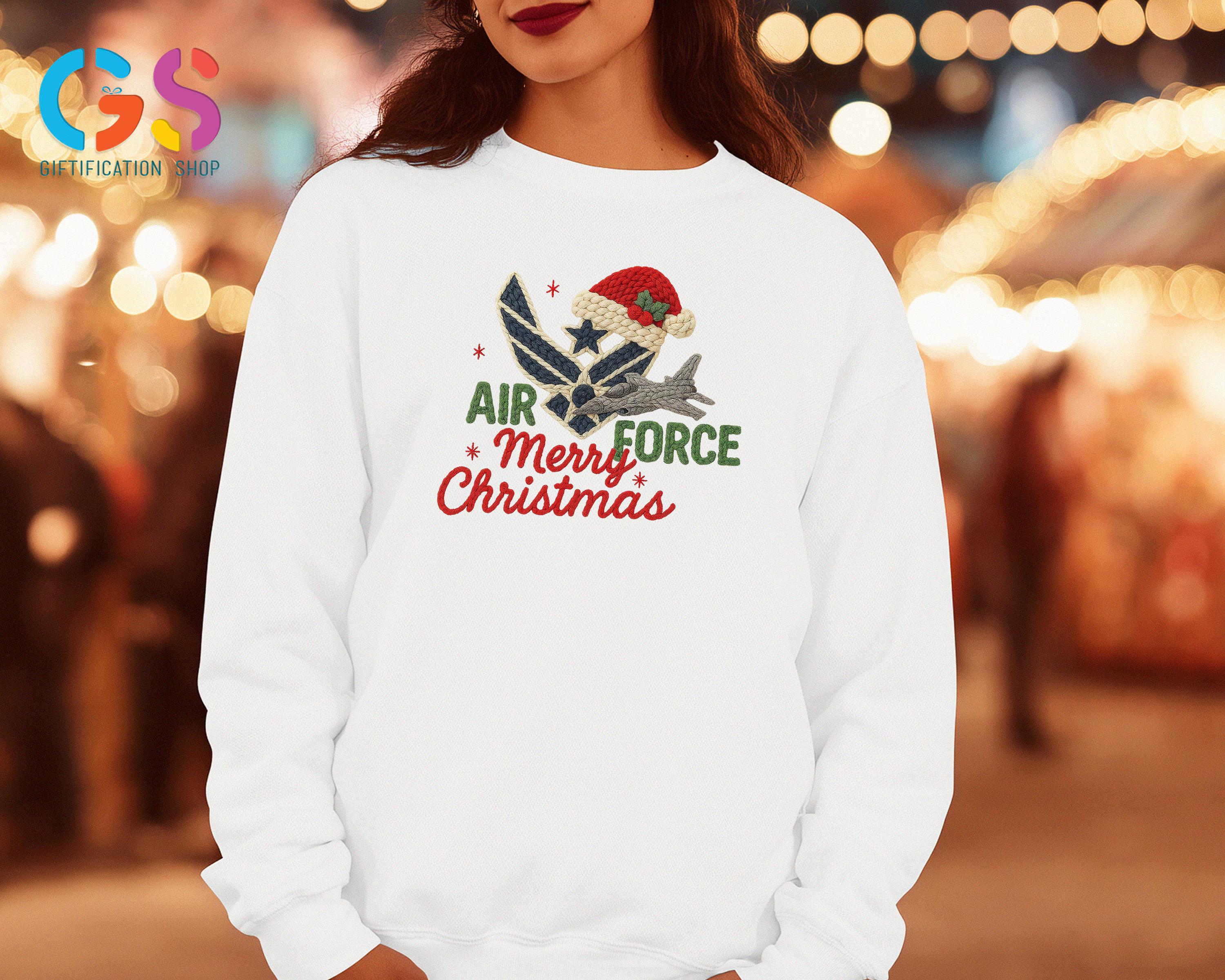Air Force Merry Christmas Sweatshirt, Military Holiday Sweater, Patriotic Pilot Gift, US Army Mom Wife Crochet Hoodie