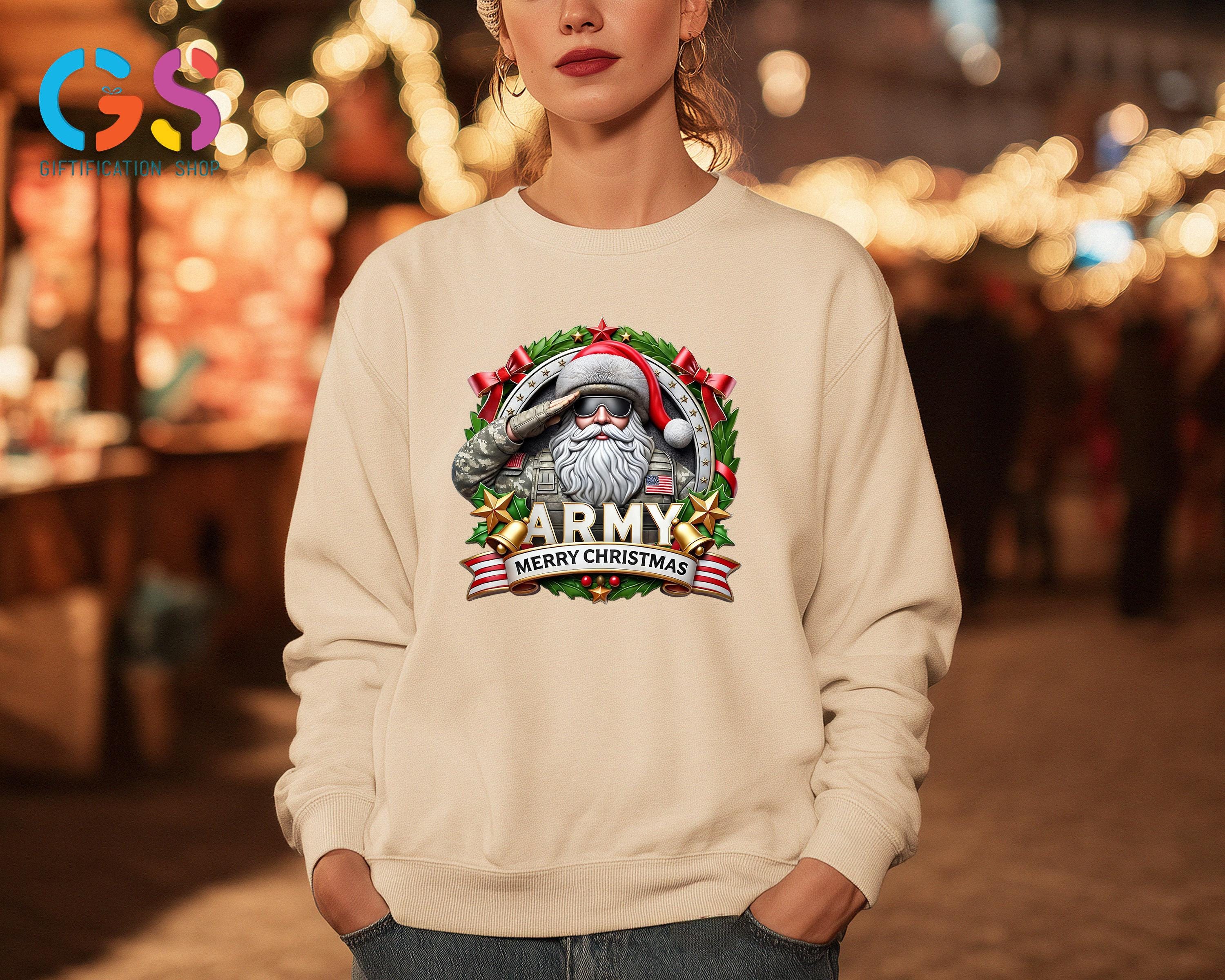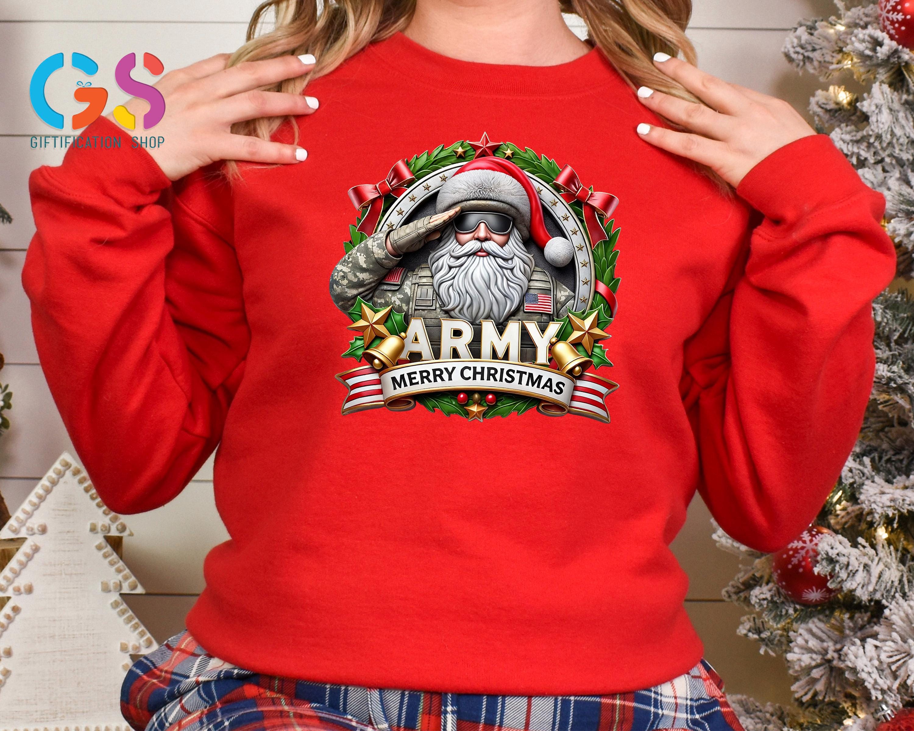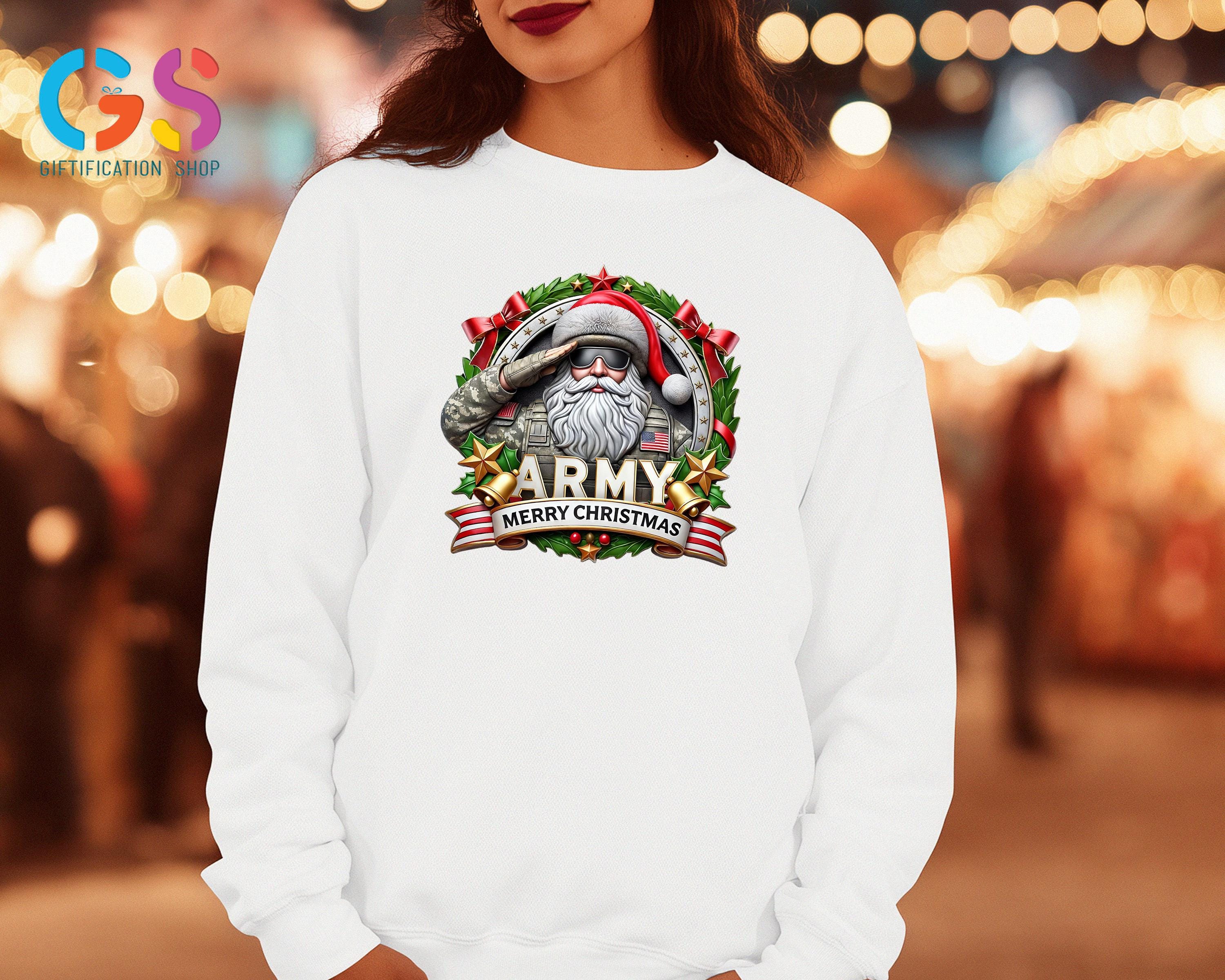 Army Santa Claus Sweatshirt, Merry Christmas Military Sweater, Patriotic Soldier Xmas Hoodie, Funny USA Holiday Top