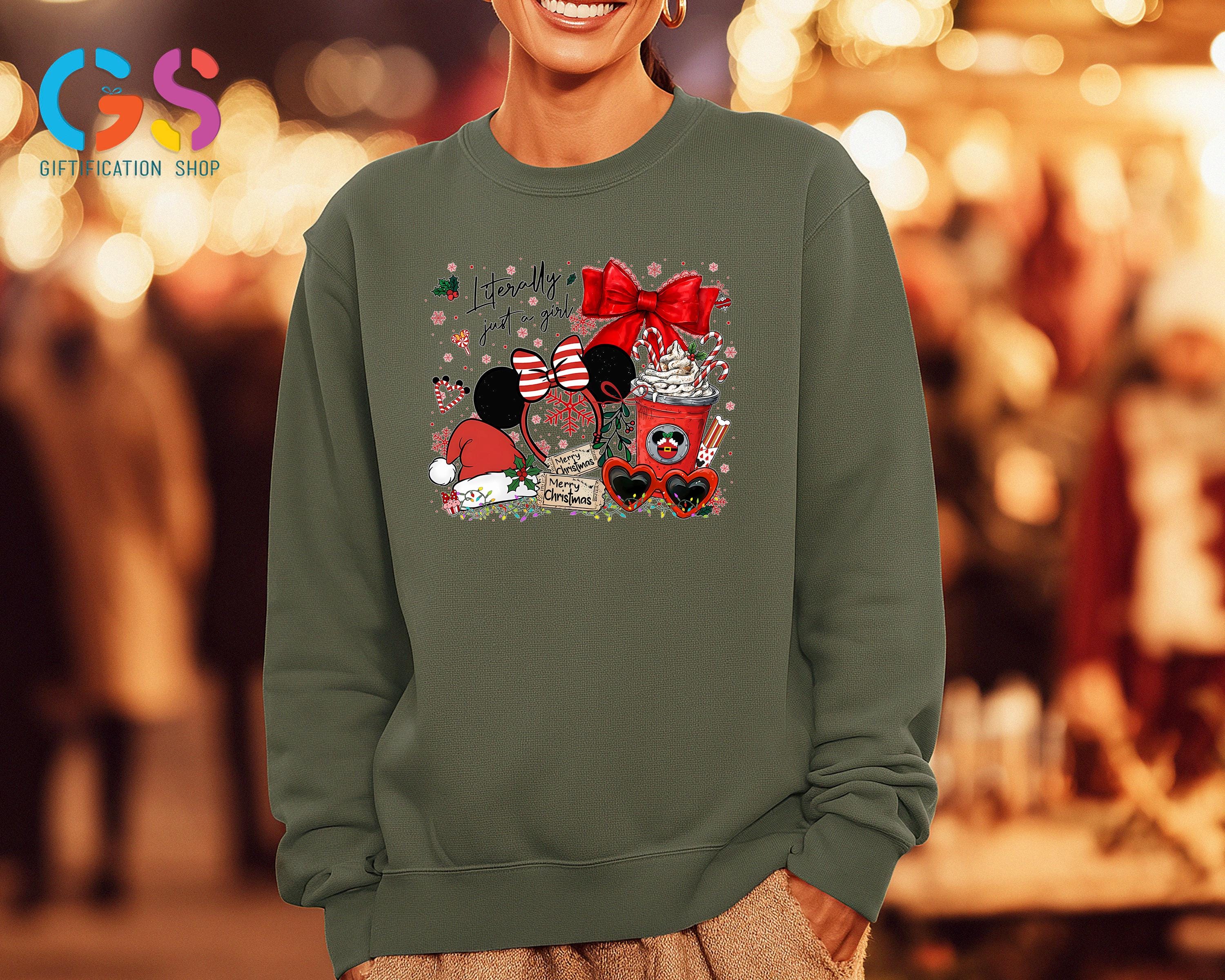 Celebrate the season in style with this Disney Literally Just A Girl Christmas Sweatshirt, perfect for holiday magic and cozy park days! Featuring a cute Minnie bow coffee design, this Minnie crewneck is ideal for your Disneyland vacation, Disney trip shirt, or matching Disney family shirt look. Whether you’re visiting Magic Kingdom, relaxing with cocoa, or planning a girls’ getaway, this holiday sweatshirt brings festive flair to your wardrobe. Great as a Christmas gift, this merry and bright Merry Christmas tee style top is the perfect pick for Disney lovers heading to Disney World or Animal Kingdom this holiday season!