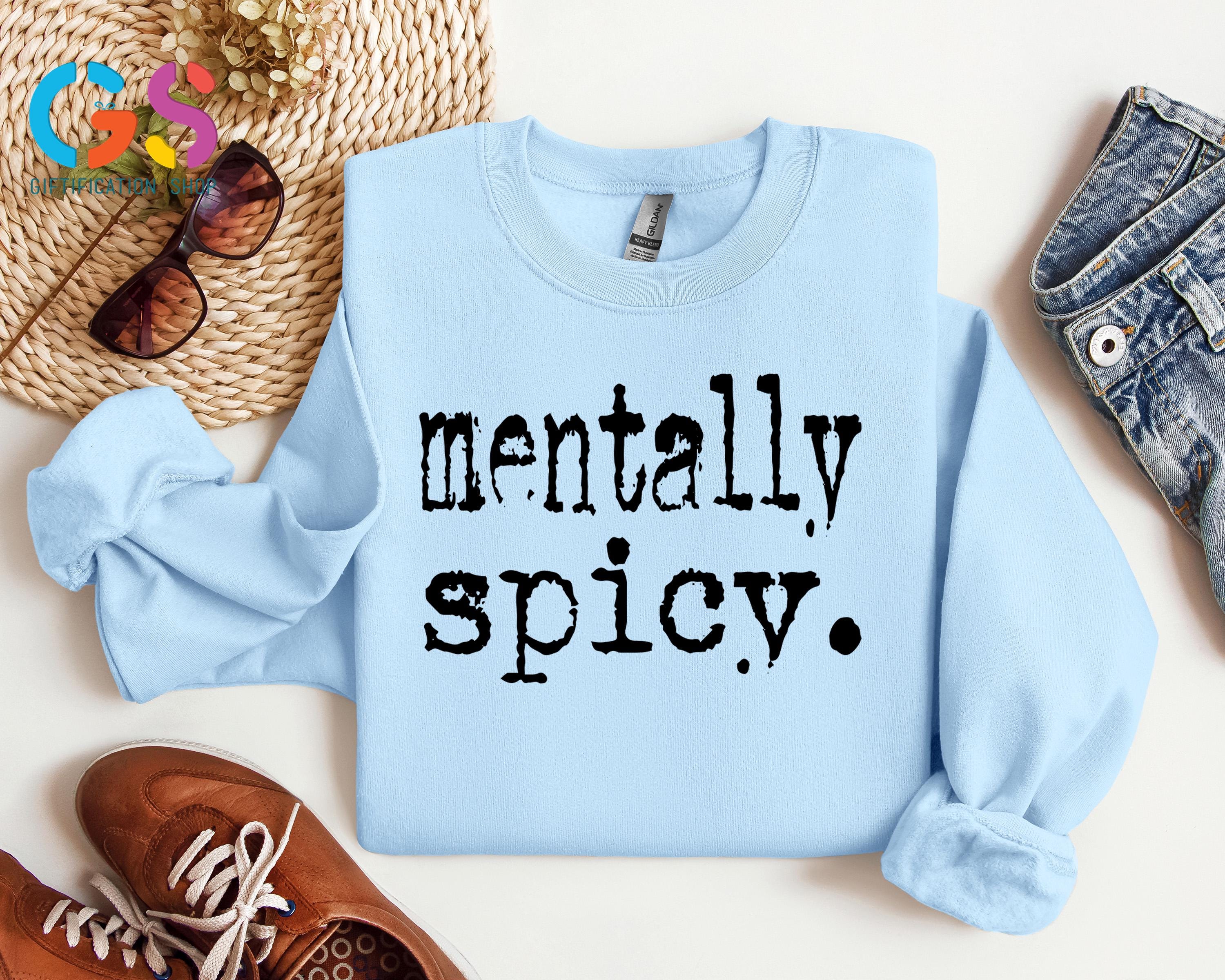 Mentally Spicy Sweatshirt is the perfect mix of cozy comfort and bold personality, making it an ideal sarcastic gift for anyone who loves a little sass. This funny spicy sweatshirt is a great choice for a gifted for wife, a best friend gift, or a cute and relatable girls sweatshirt for everyday wear. With its playful “mentally spicy” vibe, it doubles as a lighthearted mental health gift and a fun meme sweatshirt for women who enjoy humor in their wardrobe. Whether you're shopping for a sassy sweatshirt, a soft womens sweatshirt, or a quirky funny shirt for a book lover gift or therapy mom, this cozy sweatshirt delivers snarky comfort and style all in one.