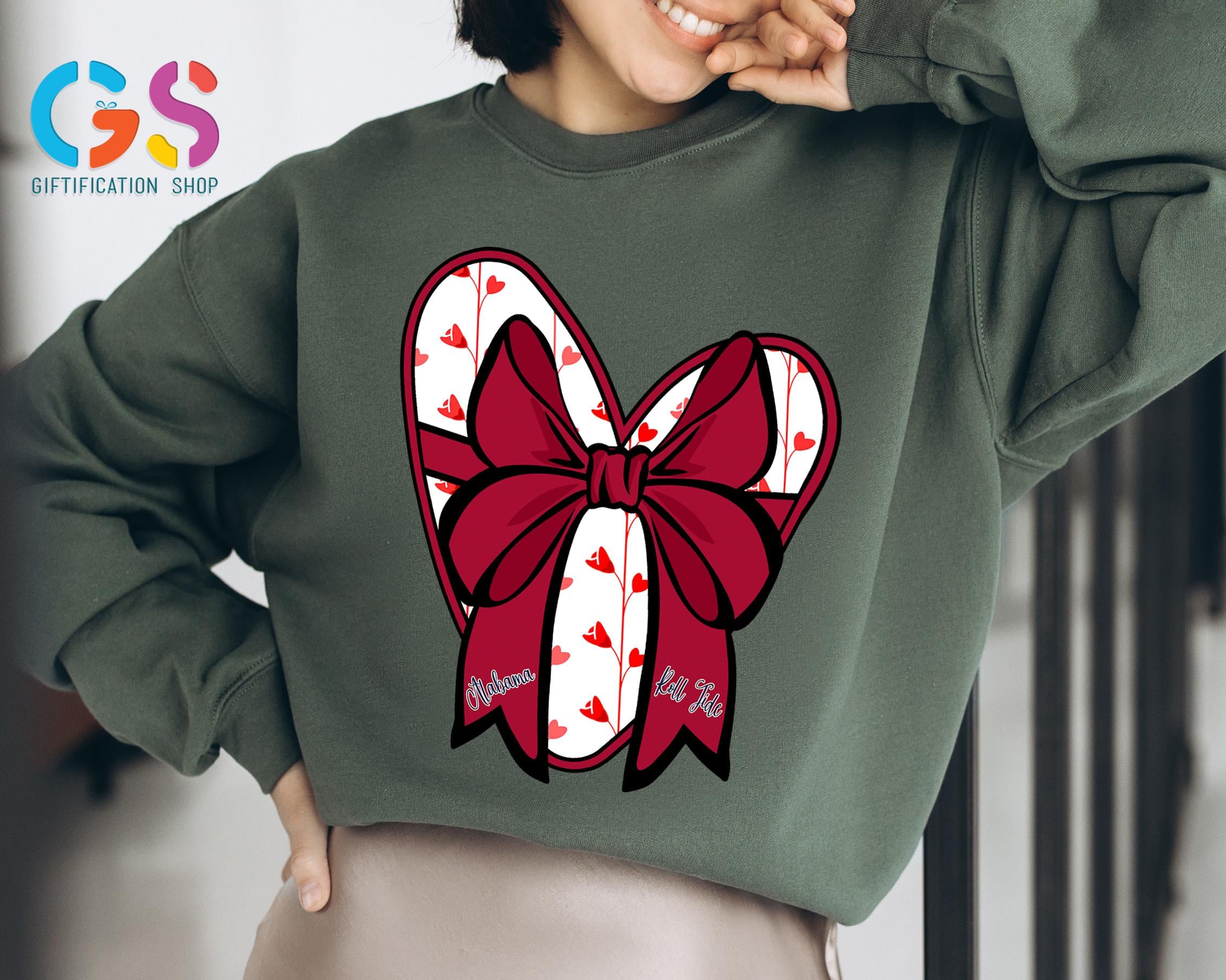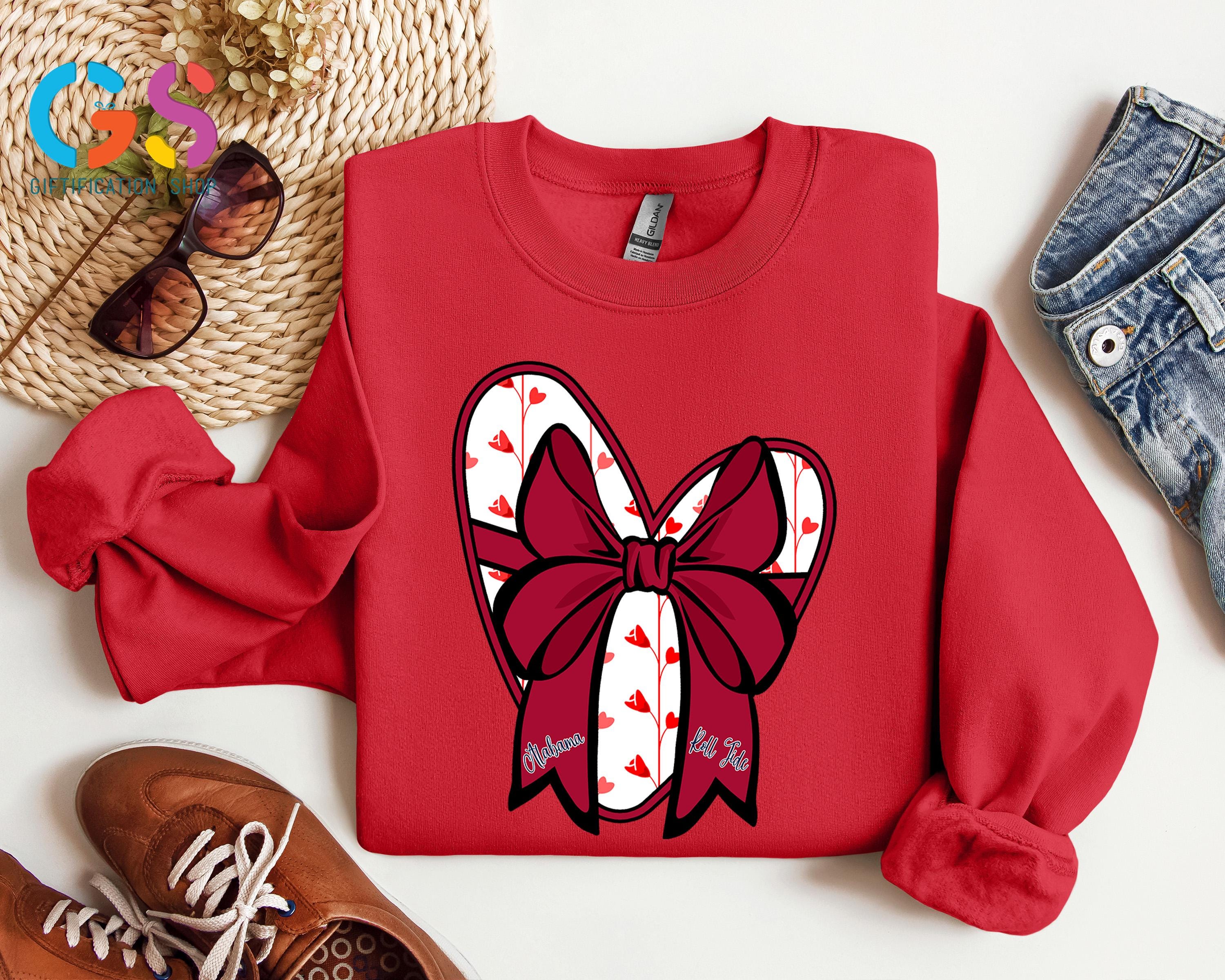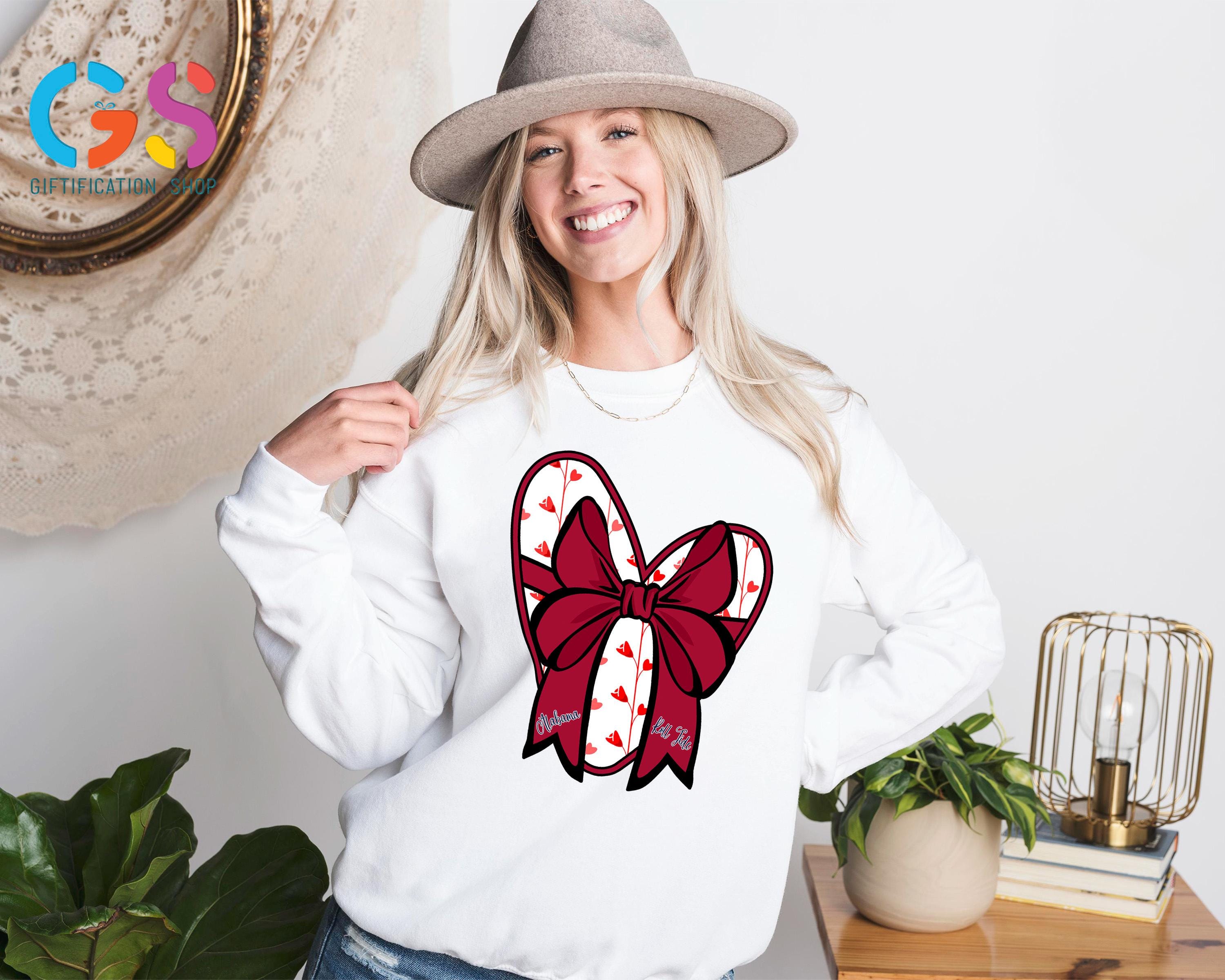 Coquette Bow Valentine Bama Sweatshirt is the perfect blend of sporty charm and sweet style, making it a great choice for women sweatshirts and football gifts. This adorable game day shirt features a cute heart design, ideal for valentine football outfits, college spirit, and home sweet team pride. Whether you're a proud football mom, looking for a thoughtful valentines day gift, or shopping for a unique football lover gift, this cozy top delivers both comfort and style. It’s a fun sport team gift, meaningful football player gift, and a charming heart tshirt alternative for showing someone “I love you” on game day or Valentine’s Day. Perfect for college apparel lovers and anyone who wants a cute, feminine twist on classic football gear.