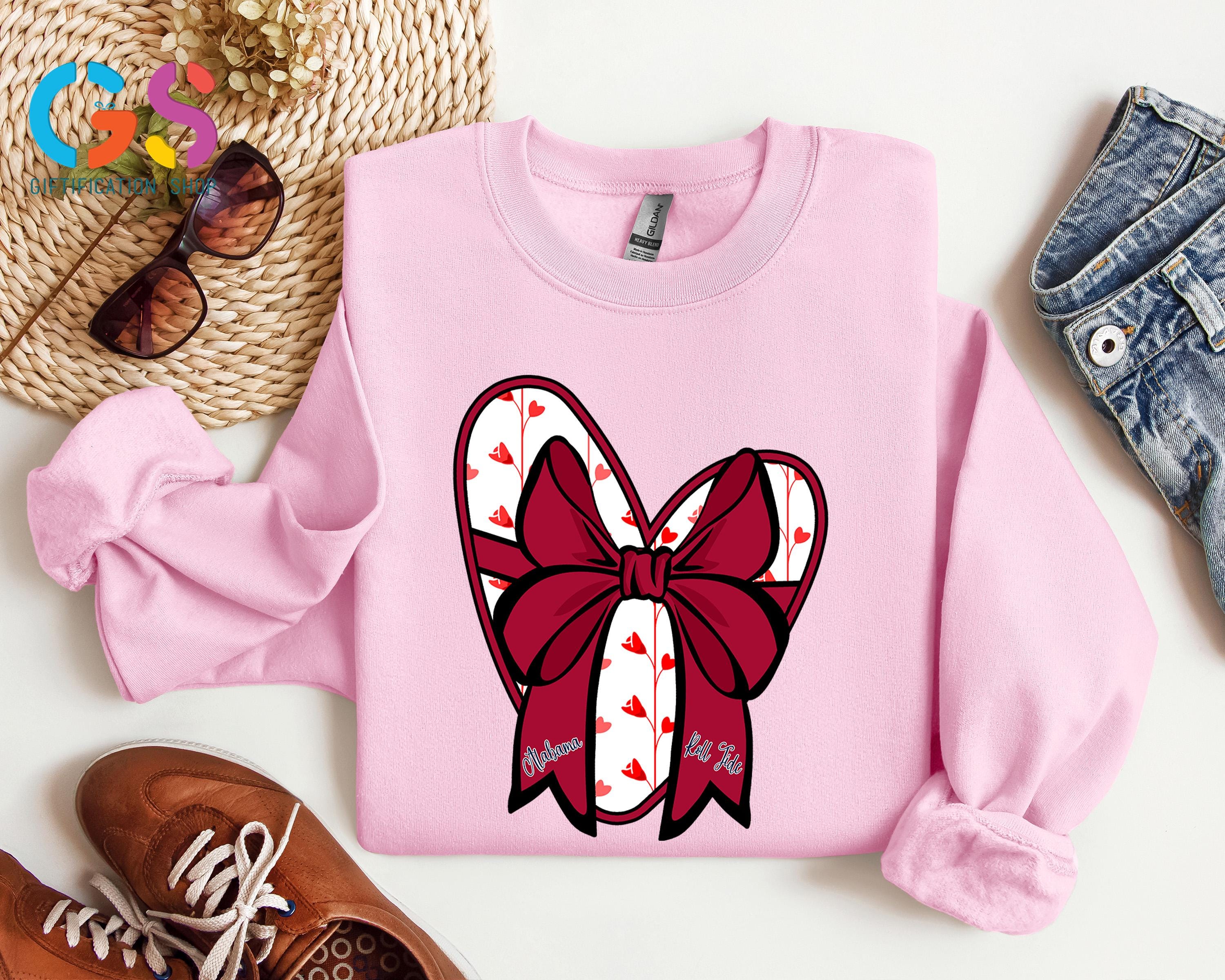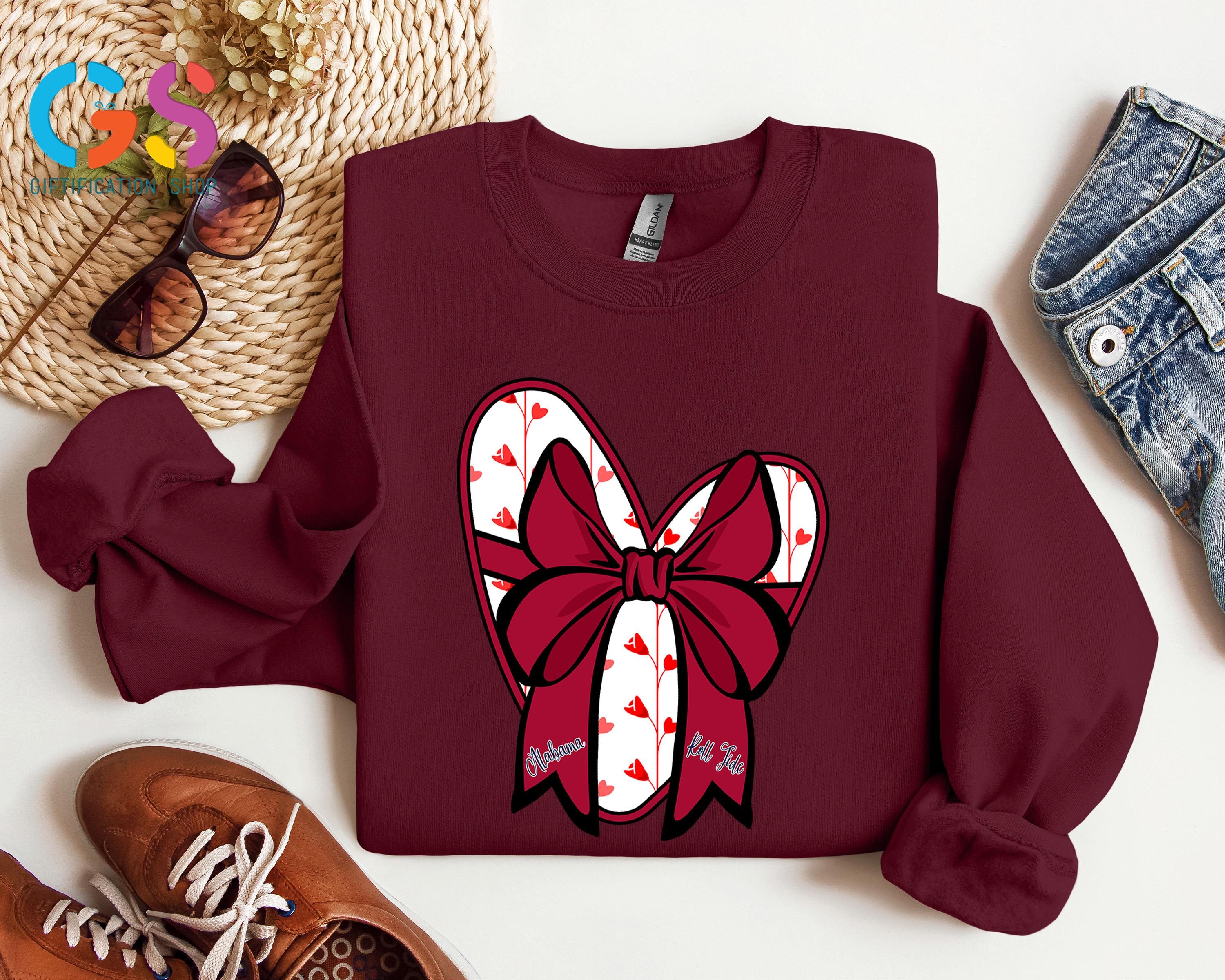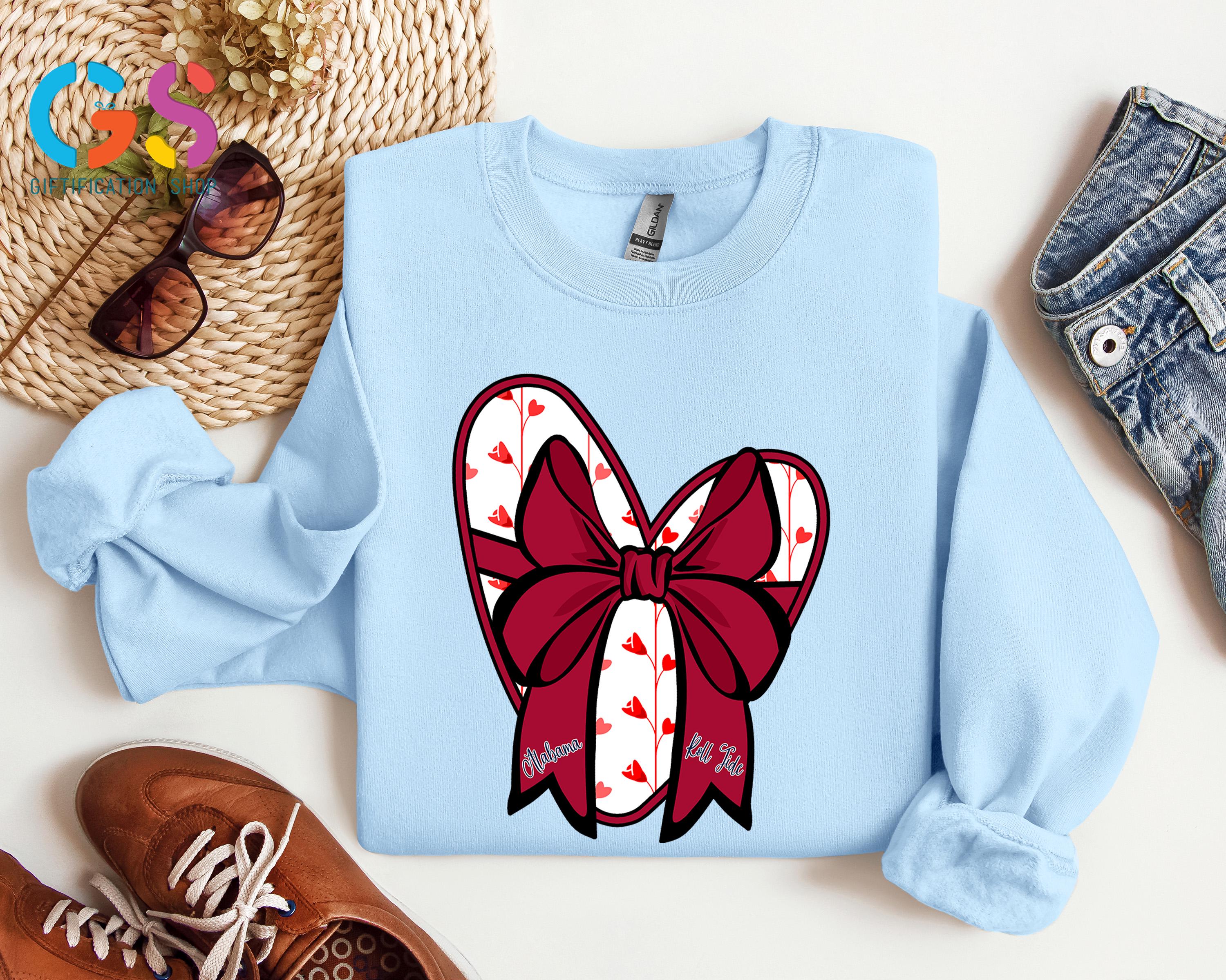 Coquette Bow Valentine Bama Sweatshirt is the perfect blend of sporty charm and sweet style, making it a great choice for women sweatshirts and football gifts. This adorable game day shirt features a cute heart design, ideal for valentine football outfits, college spirit, and home sweet team pride. Whether you're a proud football mom, looking for a thoughtful valentines day gift, or shopping for a unique football lover gift, this cozy top delivers both comfort and style. It’s a fun sport team gift, meaningful football player gift, and a charming heart tshirt alternative for showing someone “I love you” on game day or Valentine’s Day. Perfect for college apparel lovers and anyone who wants a cute, feminine twist on classic football gear.