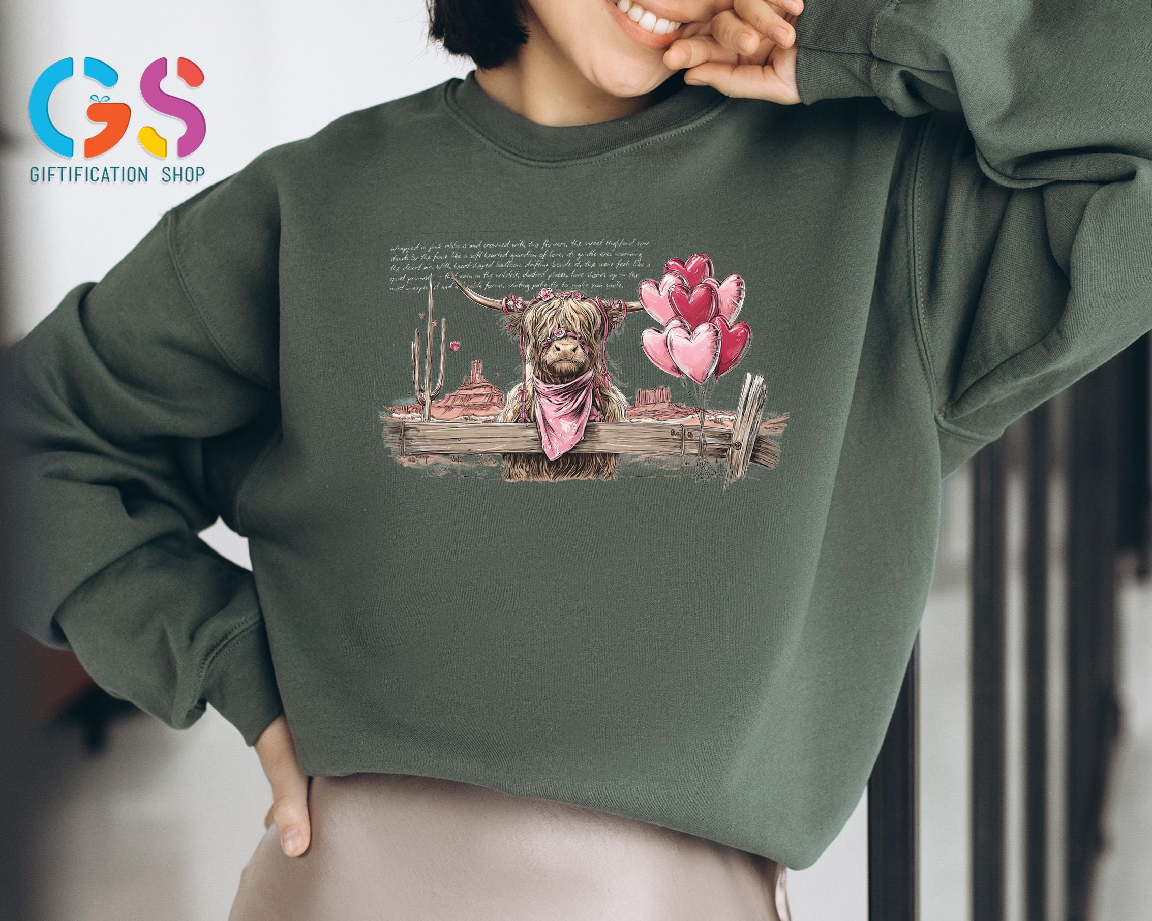 Howdy Valentine Sweatshirt, Love Vibe Valentines Sweater, Highlandcow Lover Hoodie, Animal Woman Clothing
