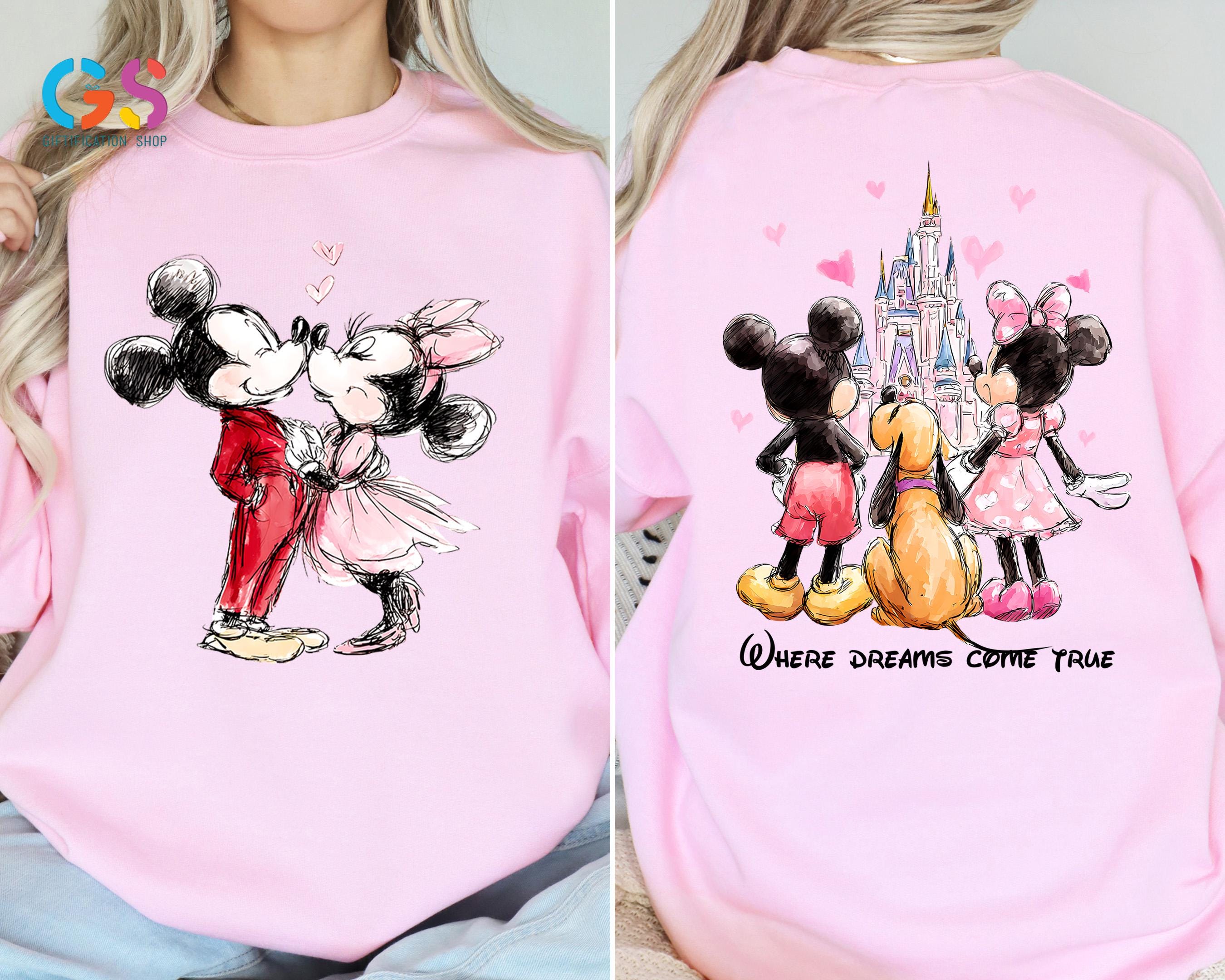 Mickey Minnie Disneyland Valentines Sweatshirt, Disney Love Couple Sweater, Disneyland Vacation Hoodie