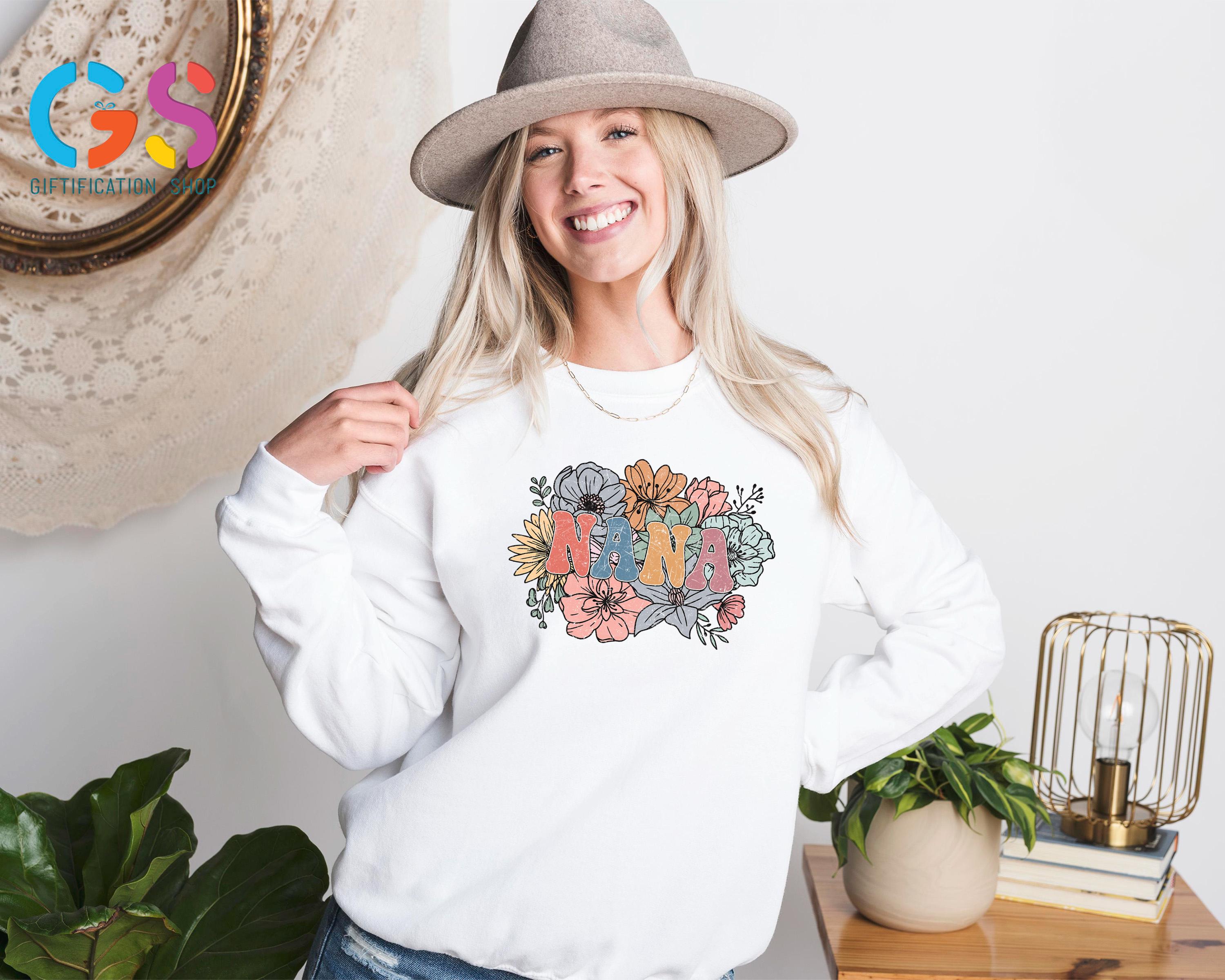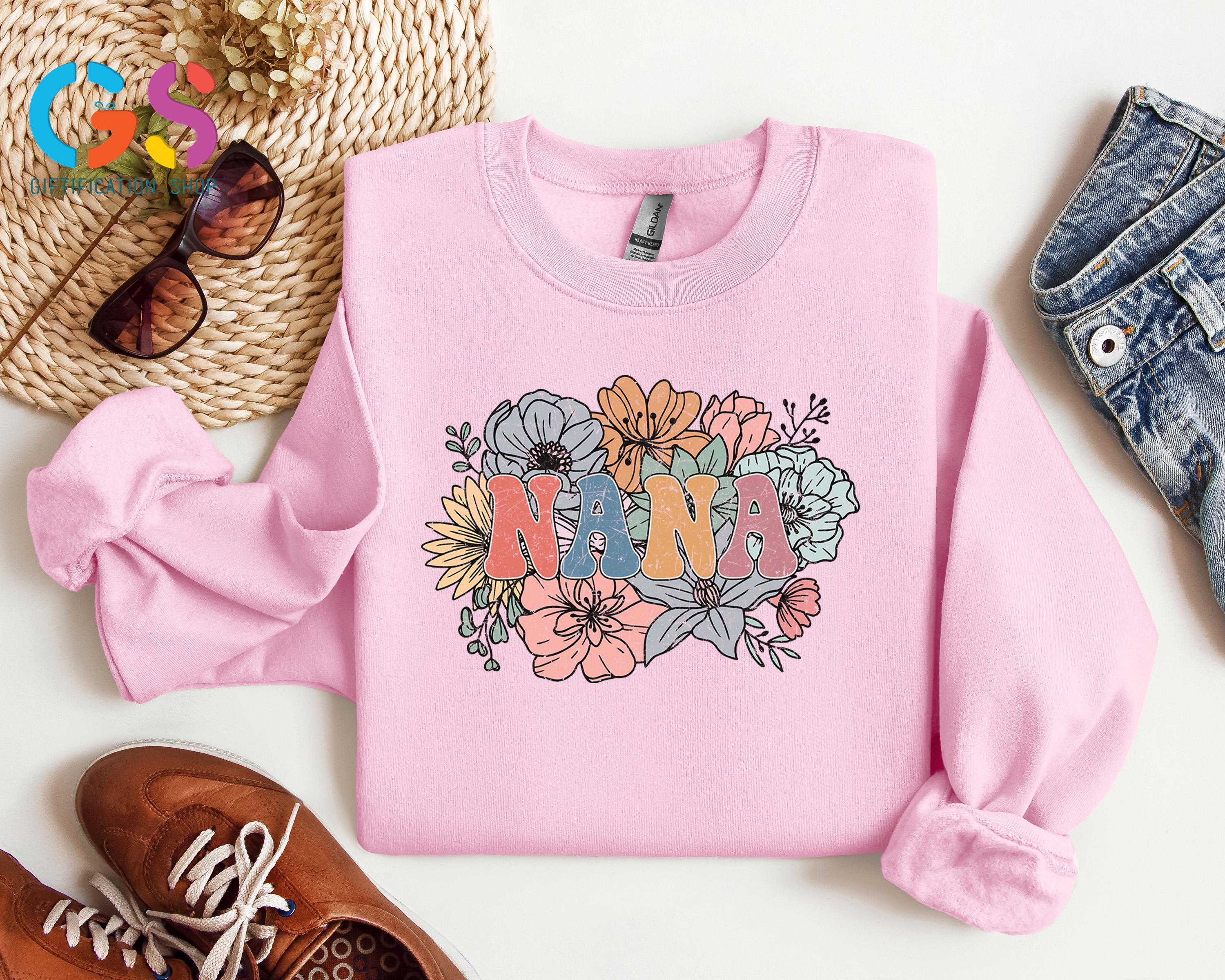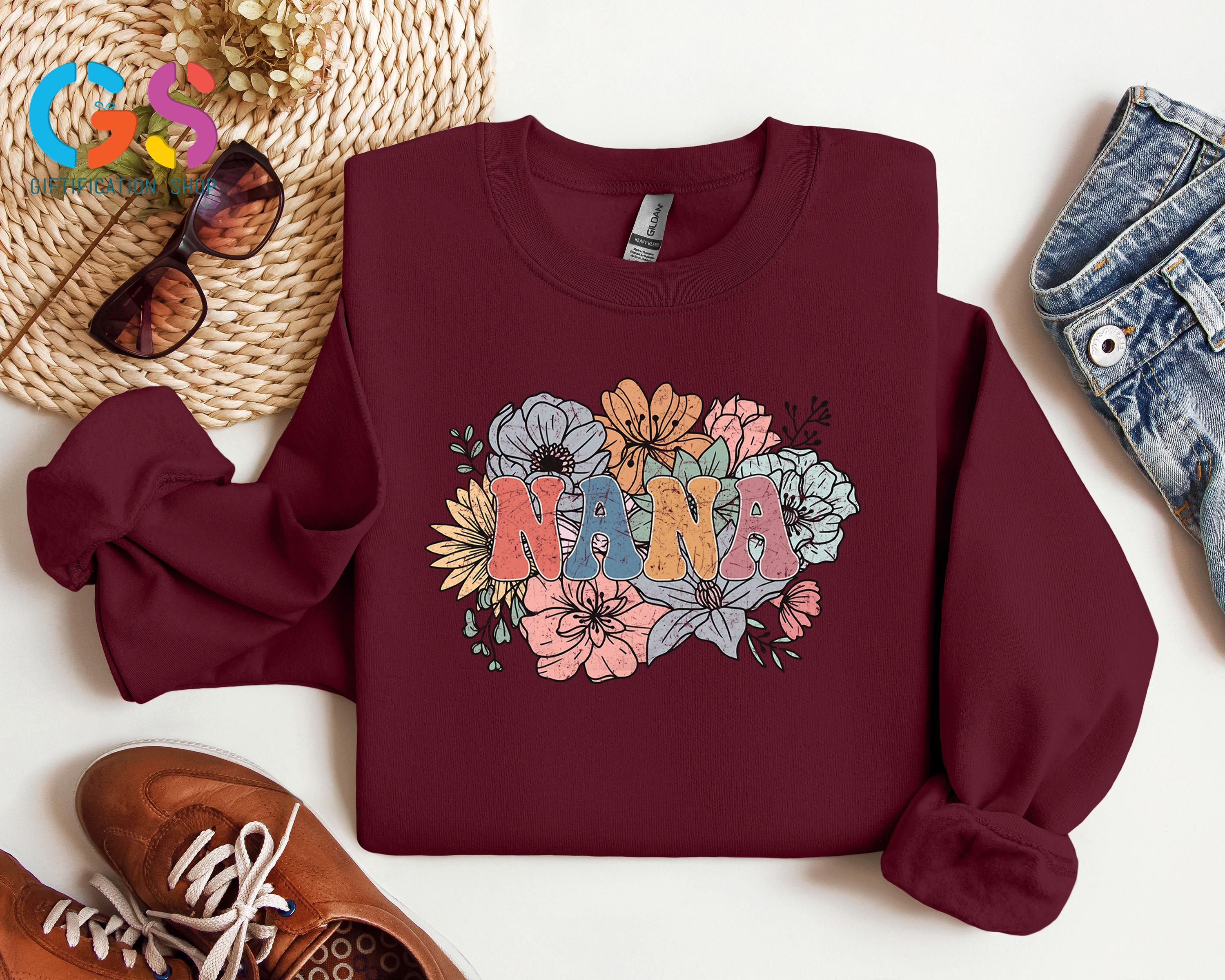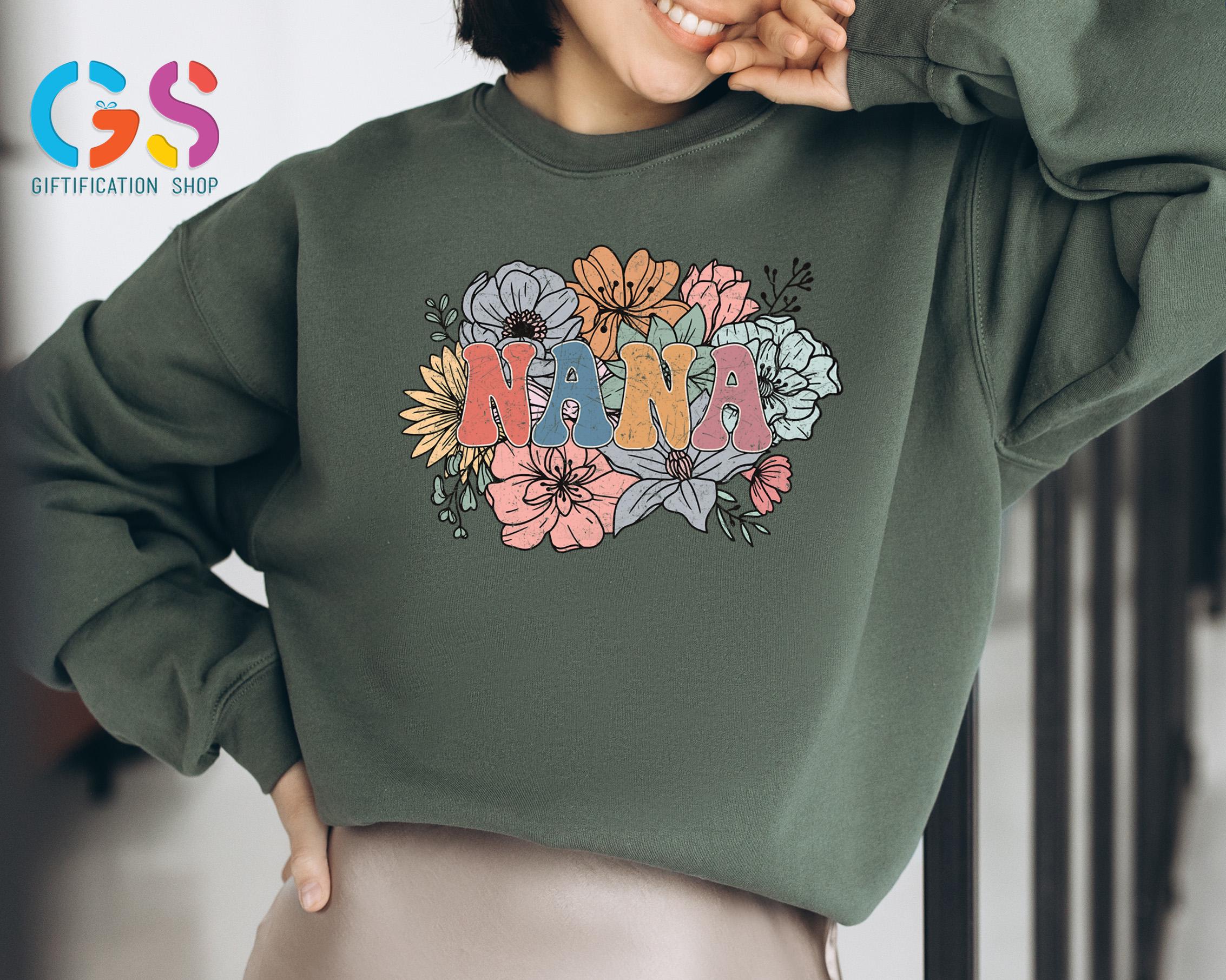 Nana Floral Sweatshirt, Grandma Flower Hoodie, Gigi Womens Sweater, Cozy Grammy Clothing, Gift for Mom