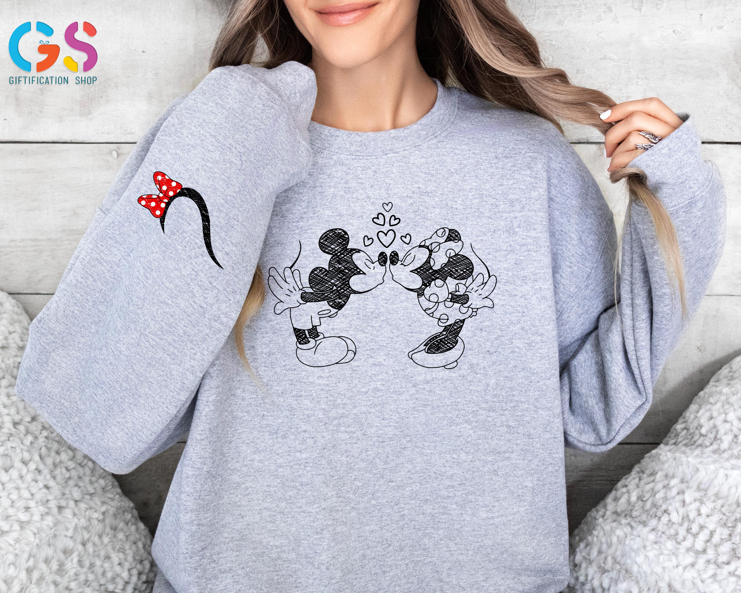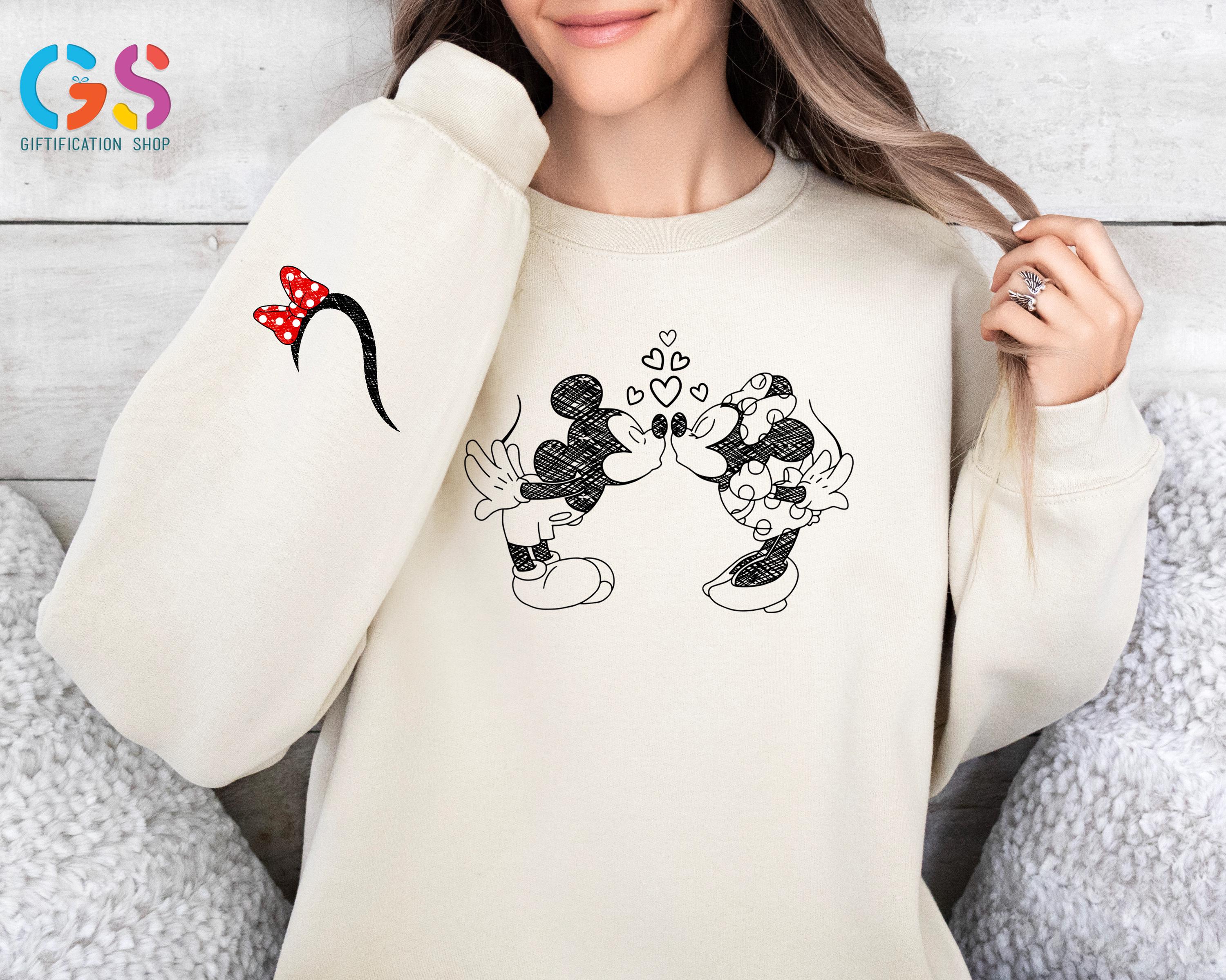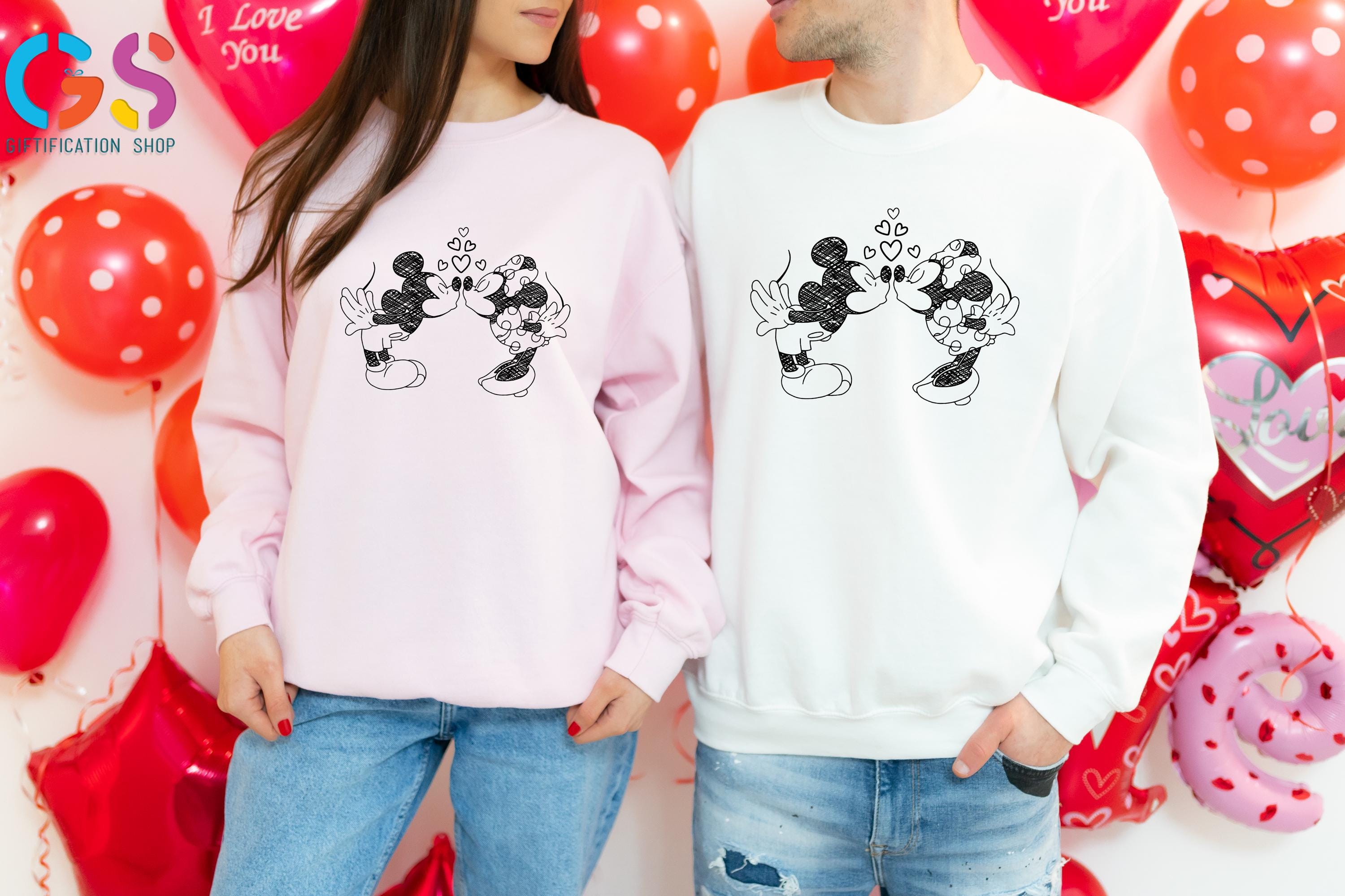 Disney Mickey Minnie Matching Sweatshirt, Kissing Couple Valentine Day Sweater, Anniversary Love Hoodie