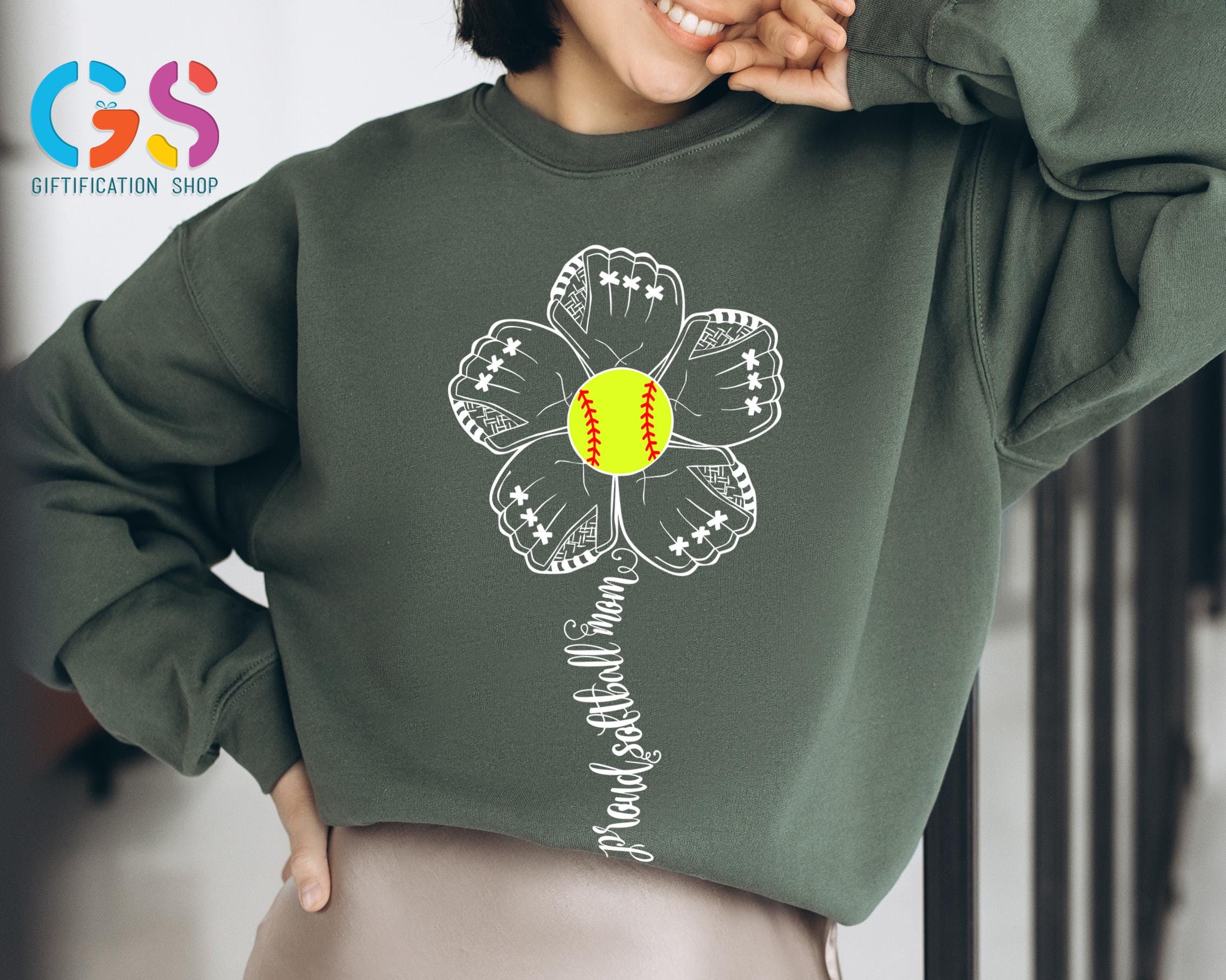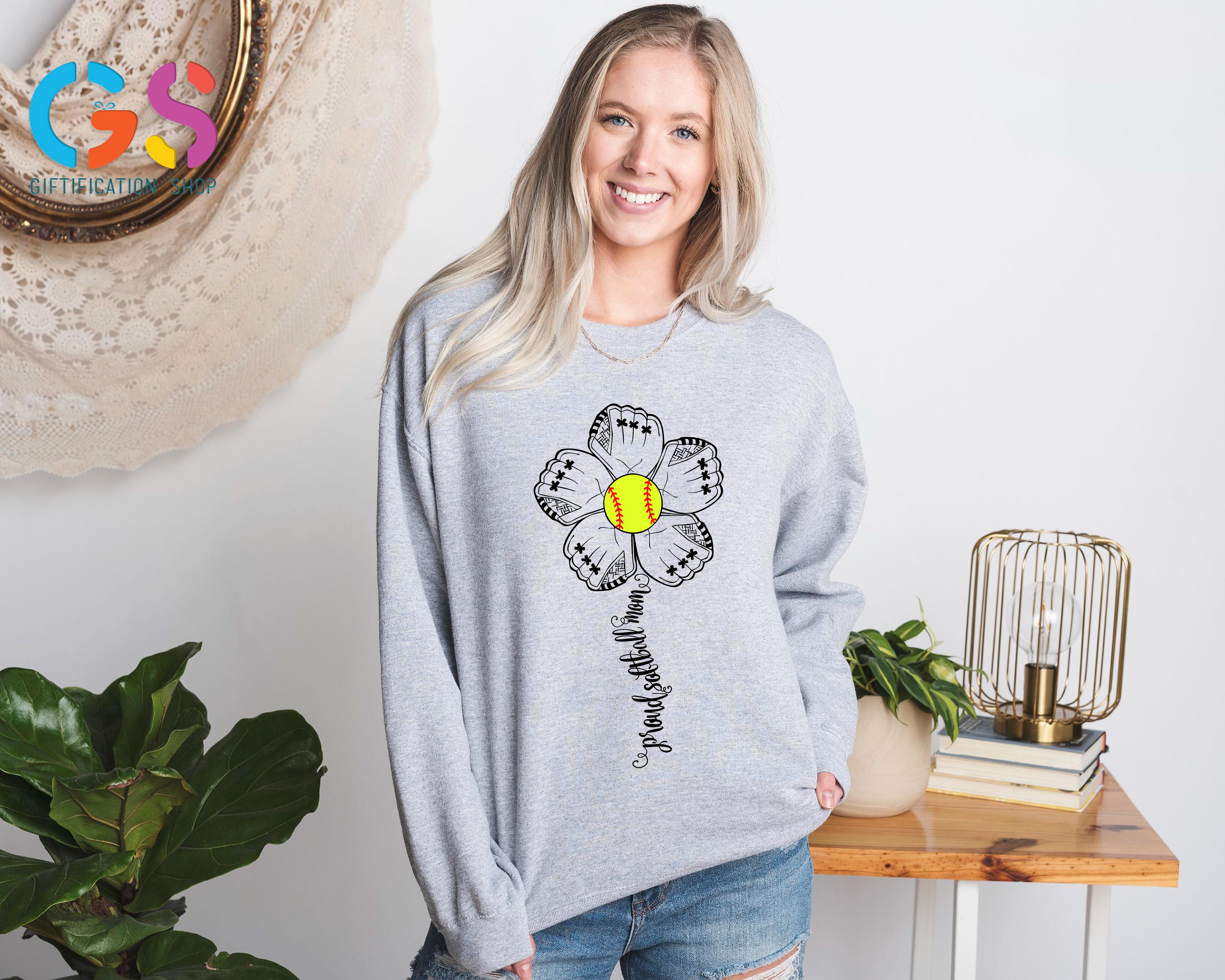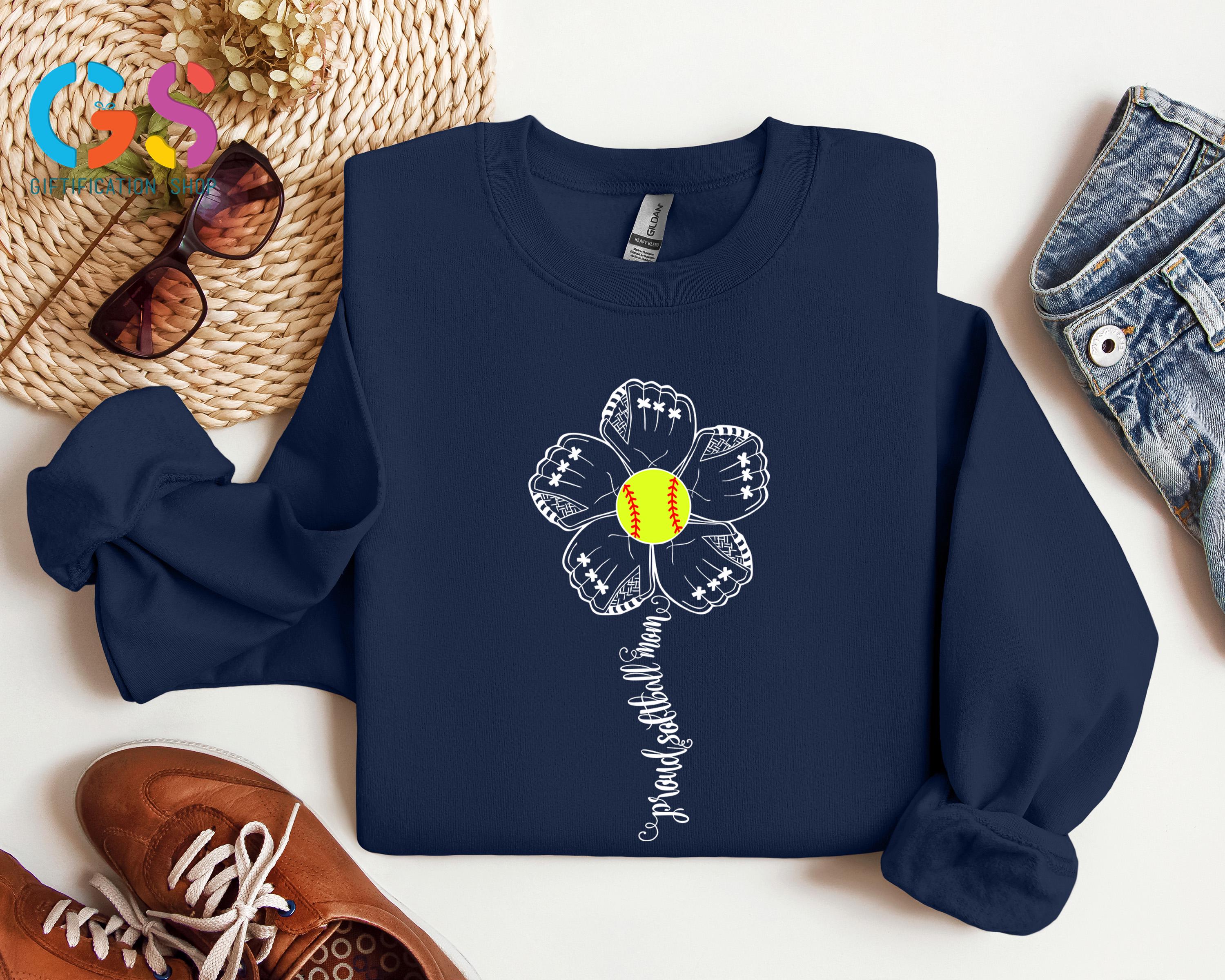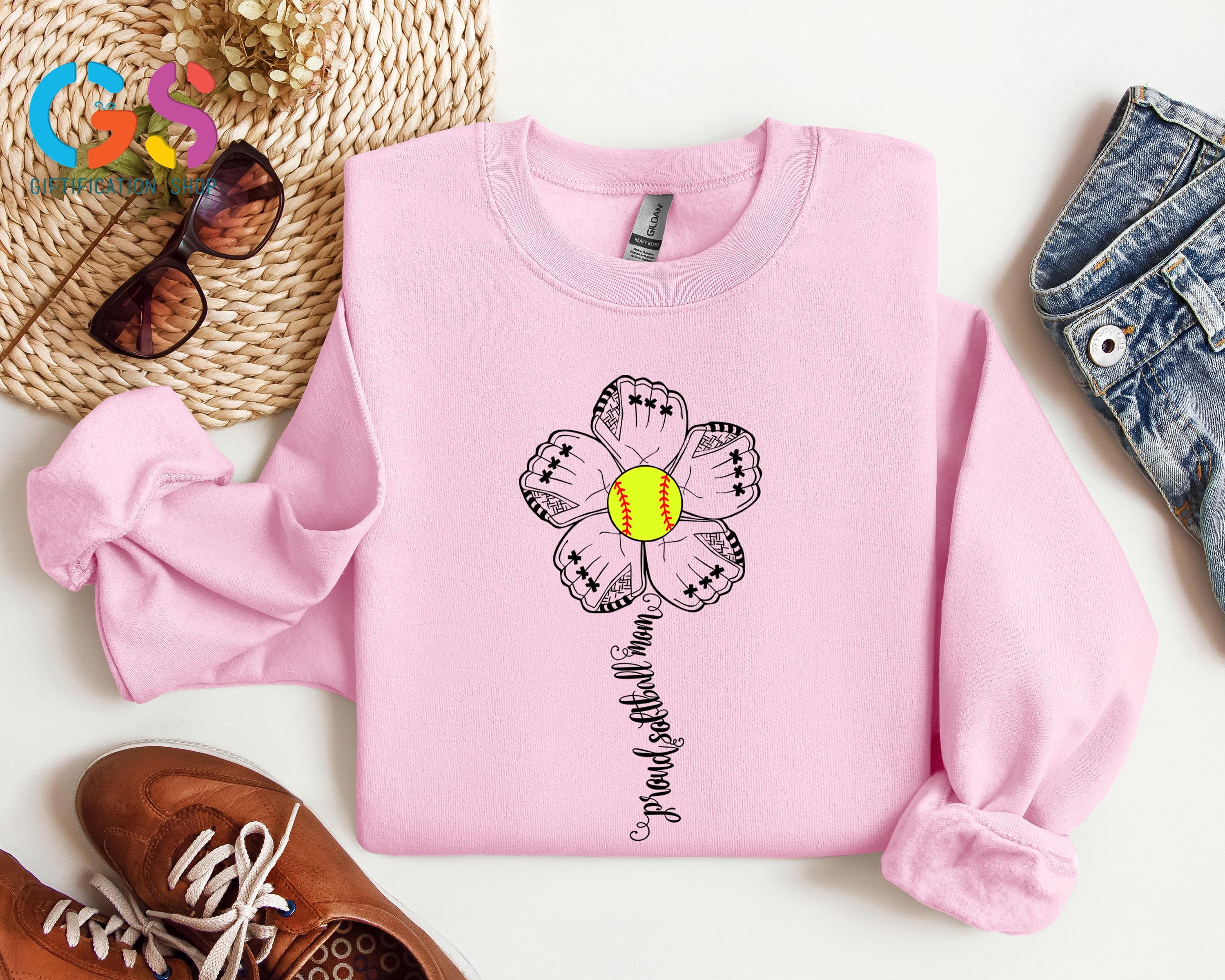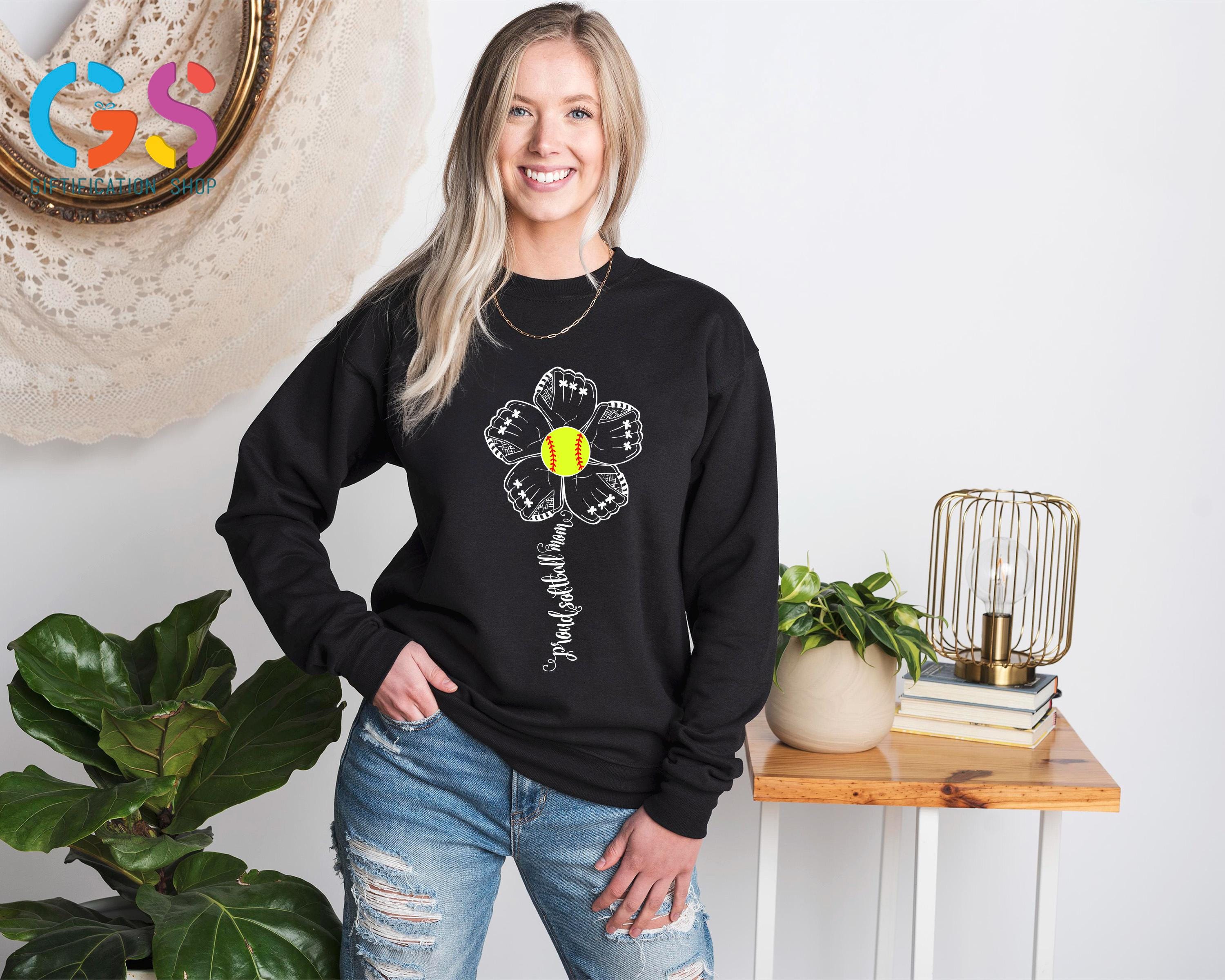 Proud Softball Flower Womens Sweatshirt, Mom Support Sweater, Sports Team Fan Hoodie, Mama Life Clothing