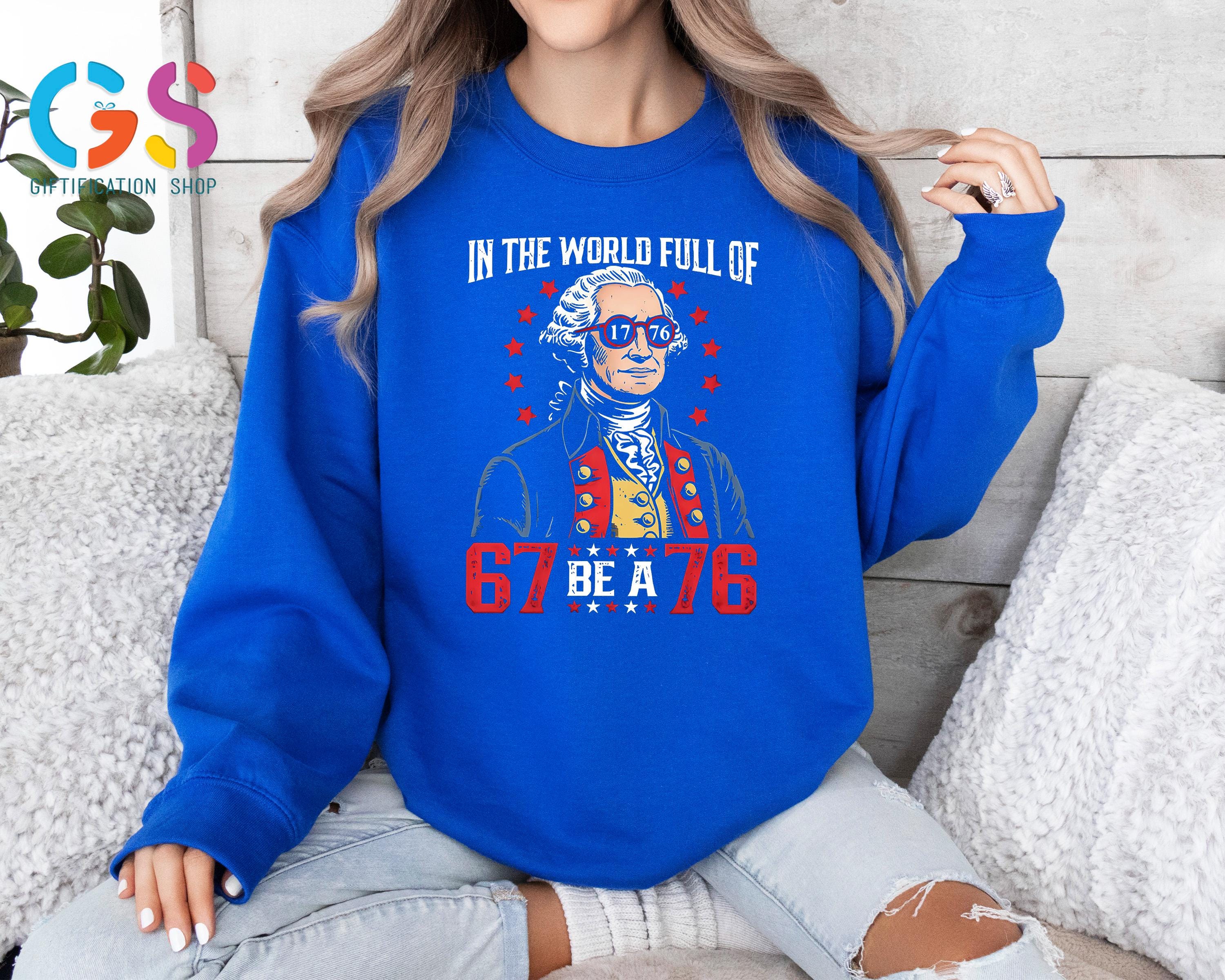 In The Worl Full 67 Be A 76 Sweatshirt, Patriotic Six Seven Humor Sweater, Sarcastic History Clothing
