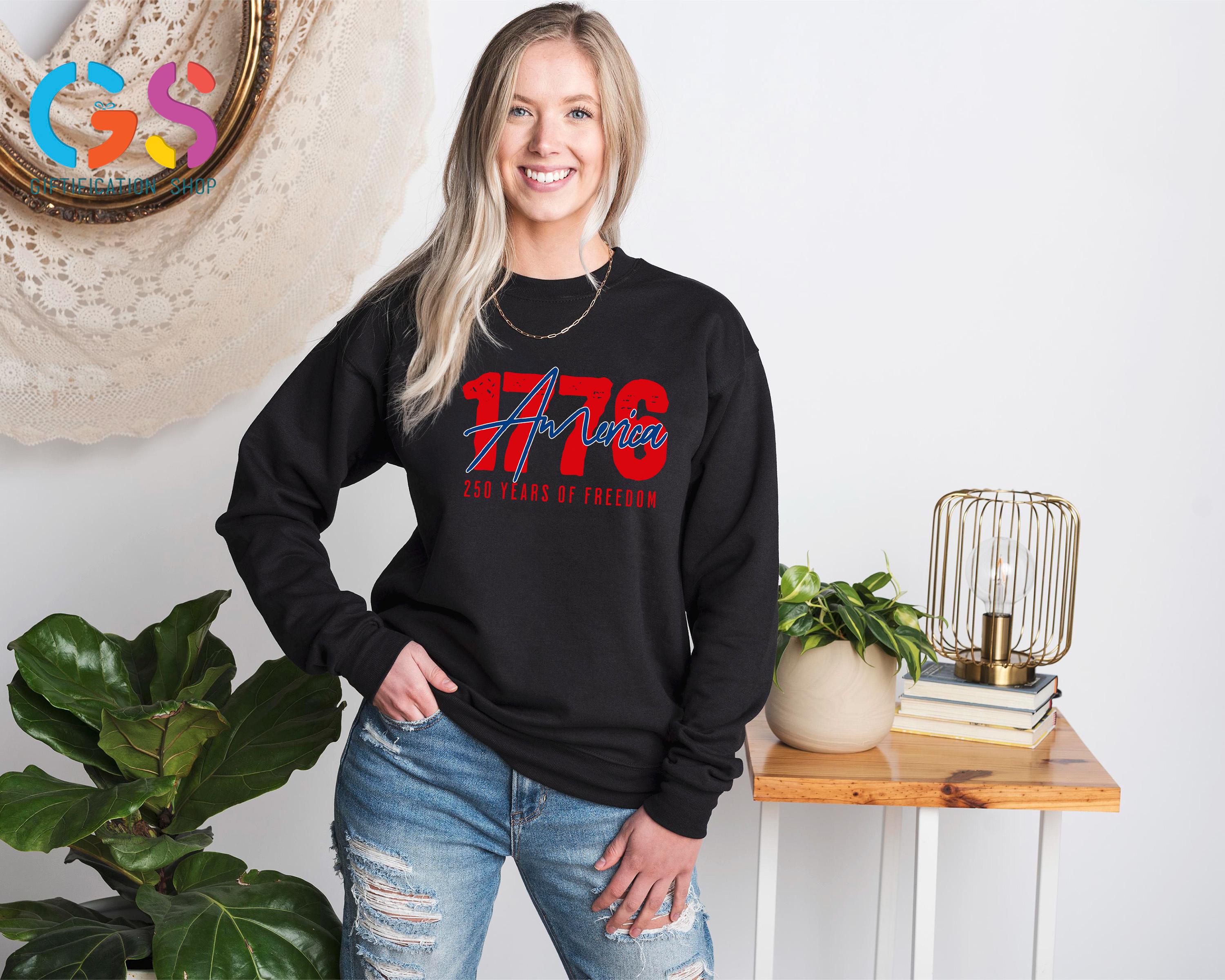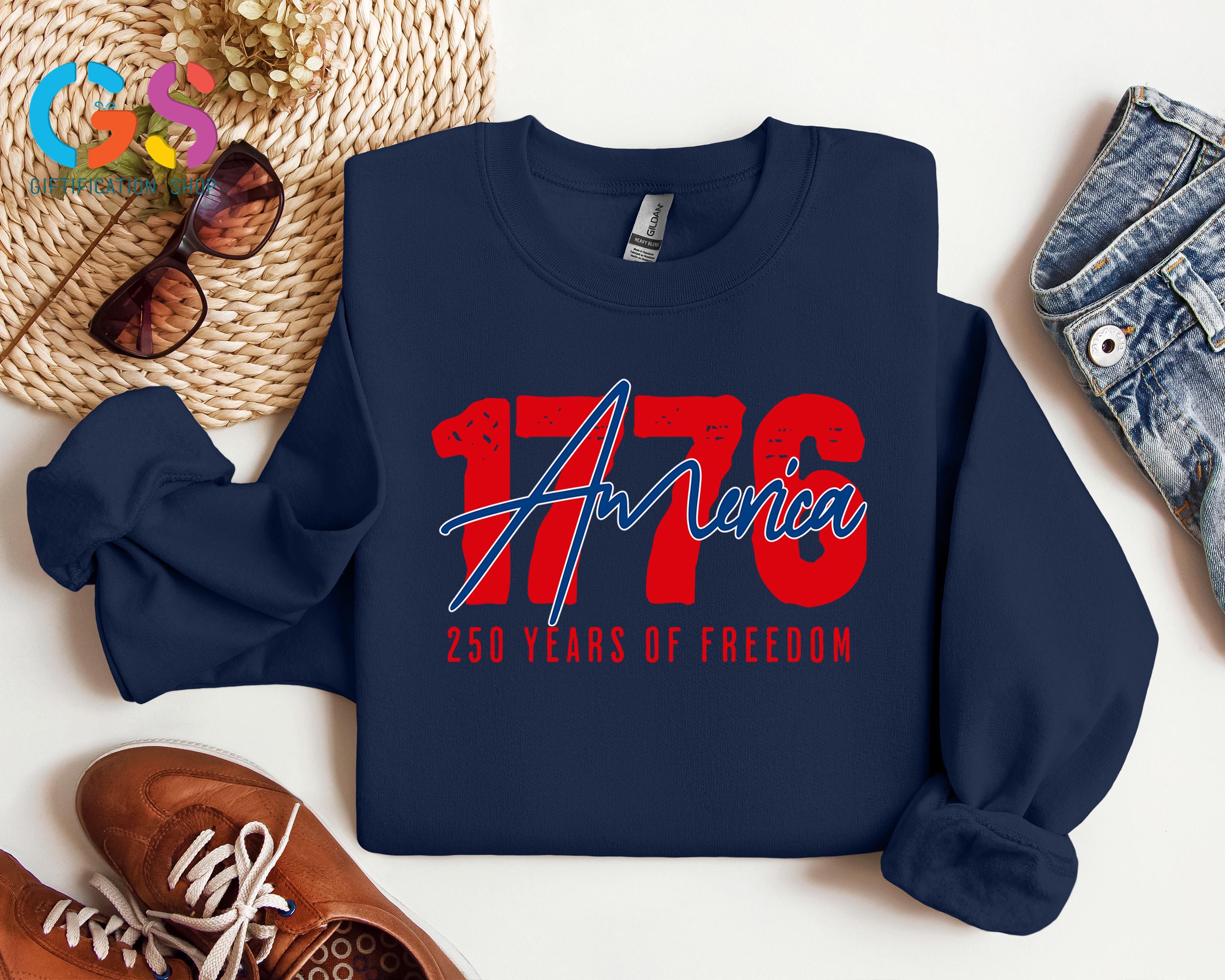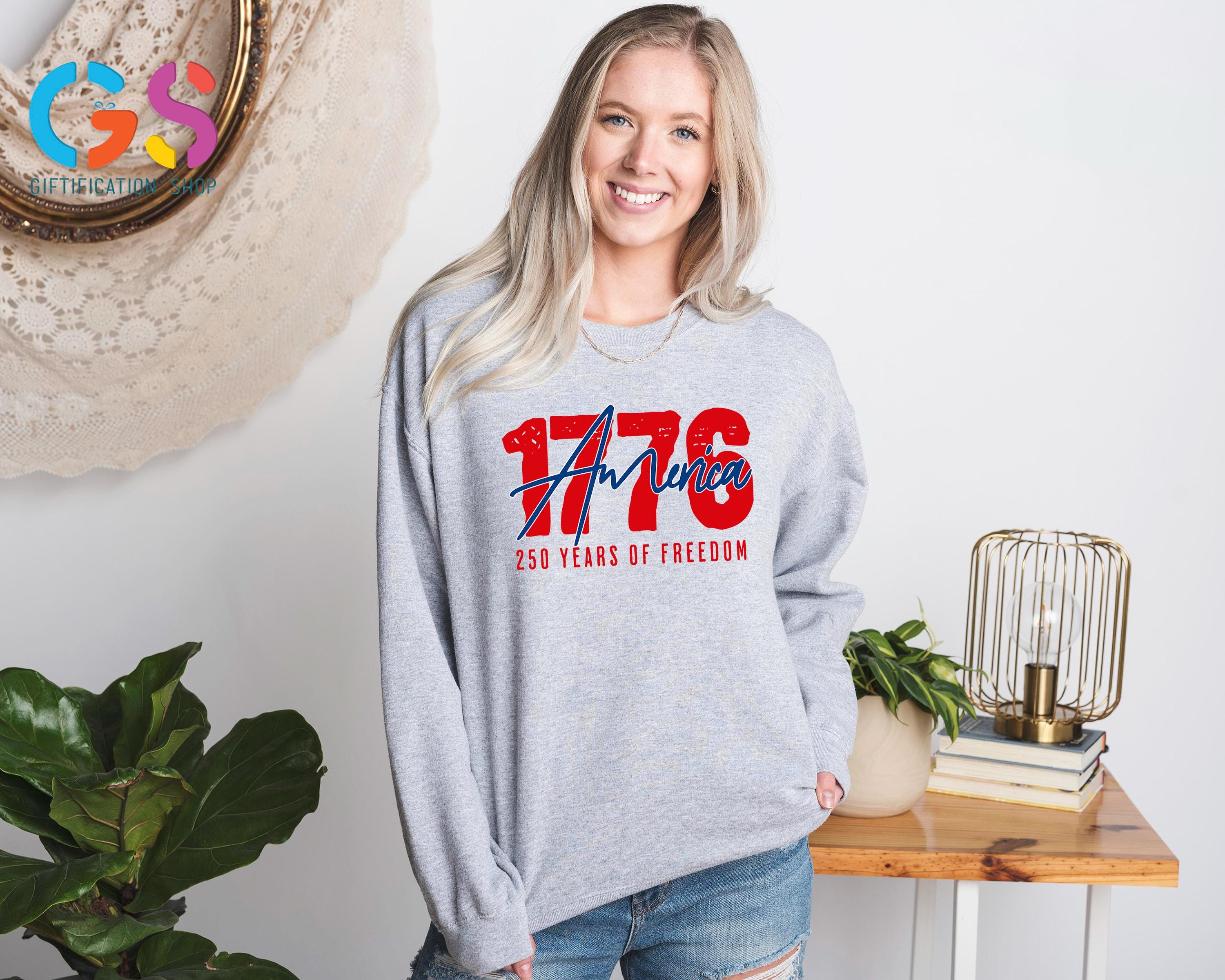 Honor American history and pride with the 1776 250 Years Of Freedom Sweatshirt, a bold America sweater created to celebrate 250 years of independence and the enduring spirit of the United States. Perfect as an anniversary gift, this patriotic USA hoodie and freedom shirt is ideal for Memorial Day, Independence Day, and the 4th of July, making it a standout memorial day shirt and 4th July shirt. Featuring classic 1776 shirt inspiration and land of the free messaging, this patriotic shirt reflects America First pride and timeless national values. Whether worn as an America shirt, pride tshirt, or meaningful holiday outfit, this land of the free pride clothing design is perfect for anyone who proudly celebrates freedom, history, and American heritage.