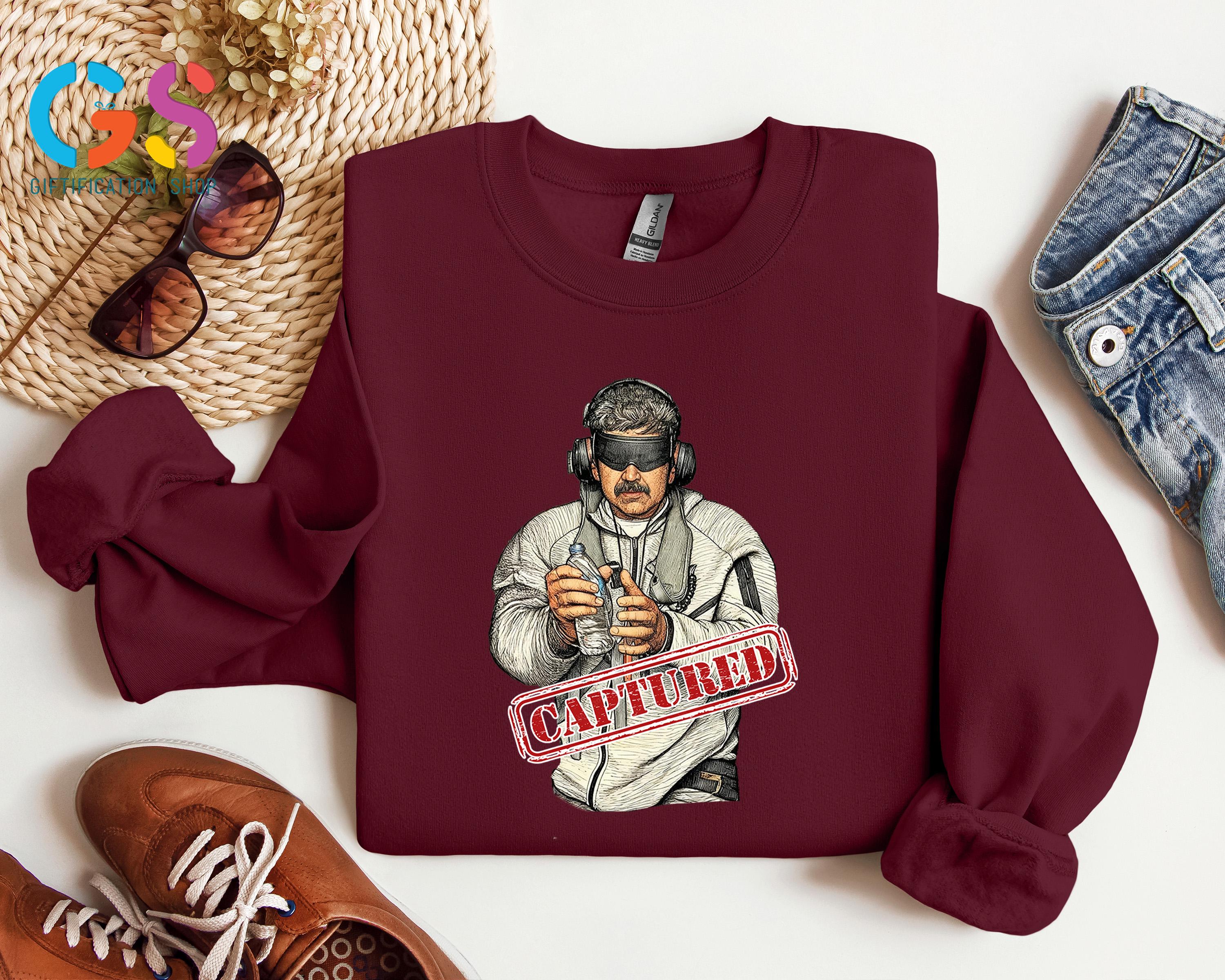 Maduro Captured Sweatshirt, Political Meme Sweater, Patriotic USA Citizen Gift, Democracy Humor Clothing