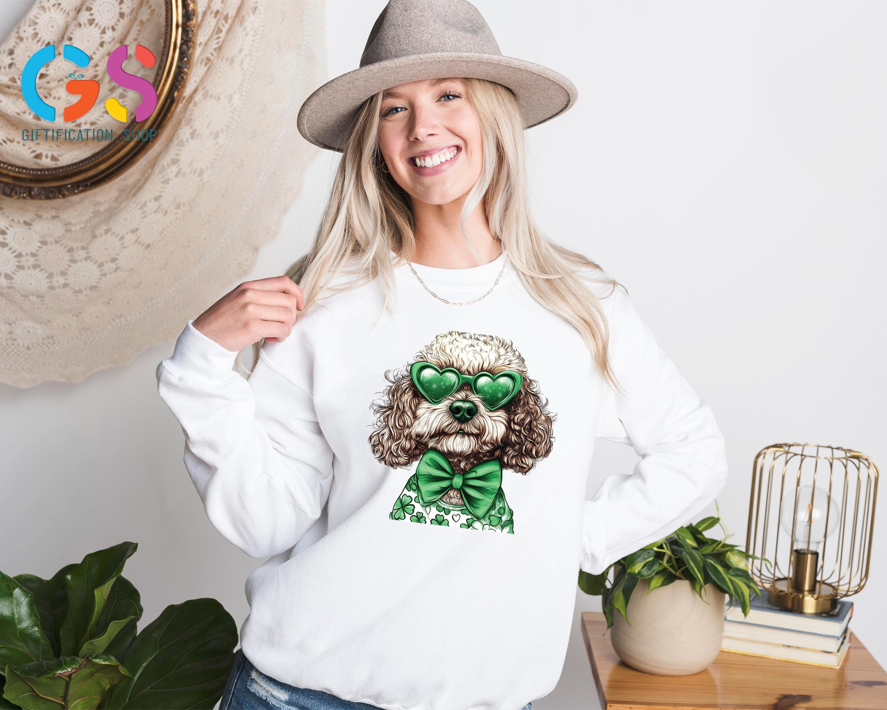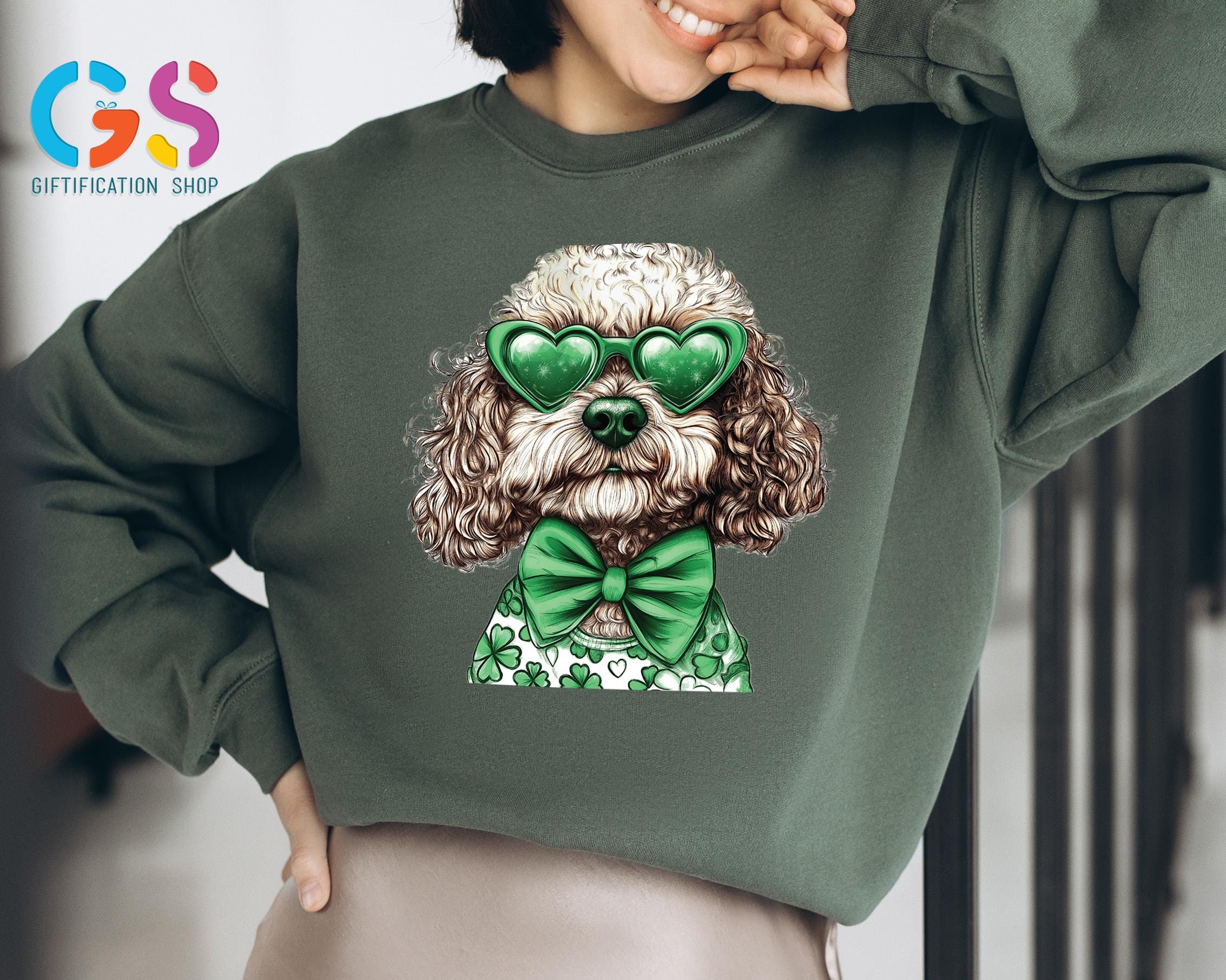 Poodle Saint Patricks Day Glasses Sweatshirt, Paddys Sweater For Dog Owner, Funny Lucky Charms Hoodie