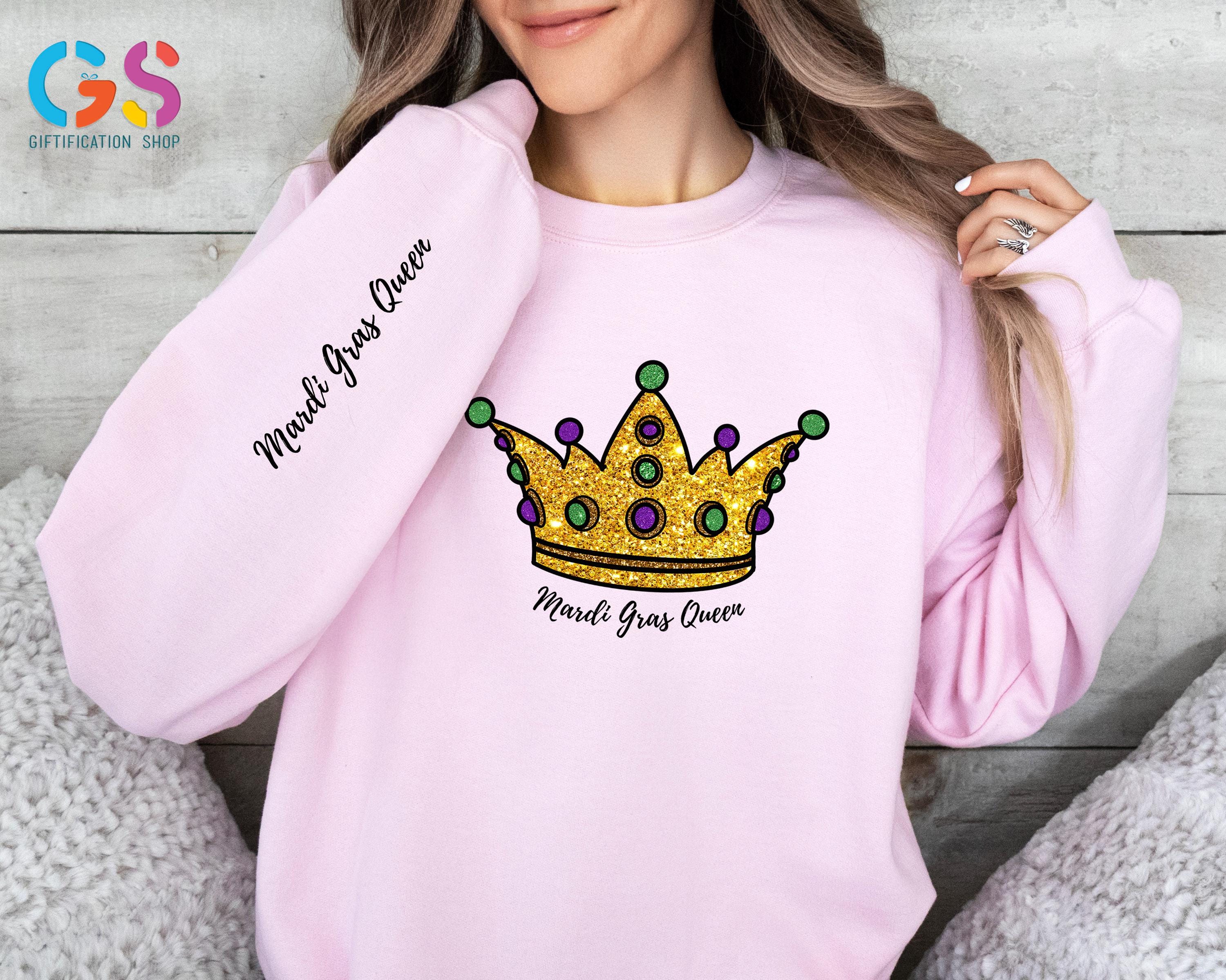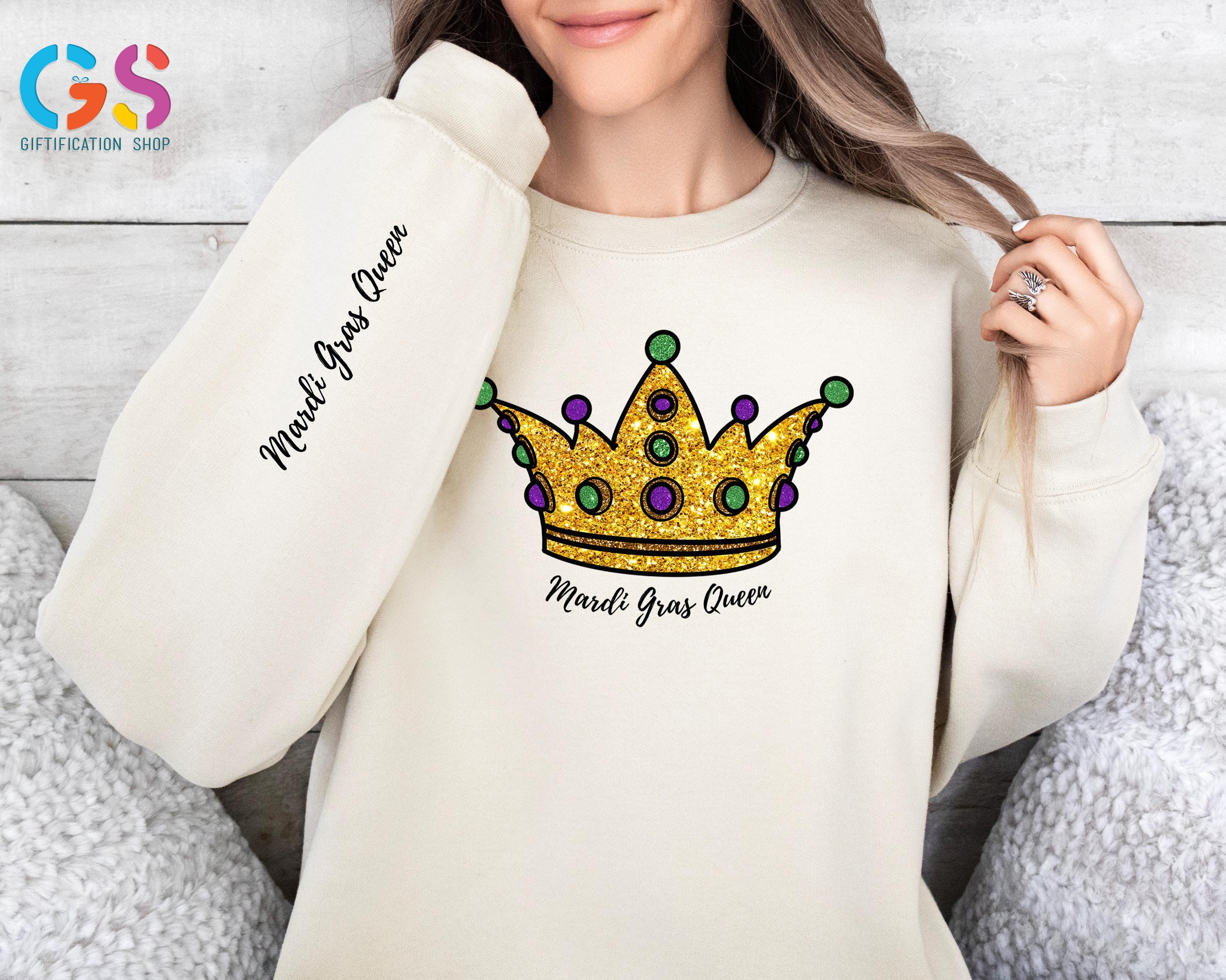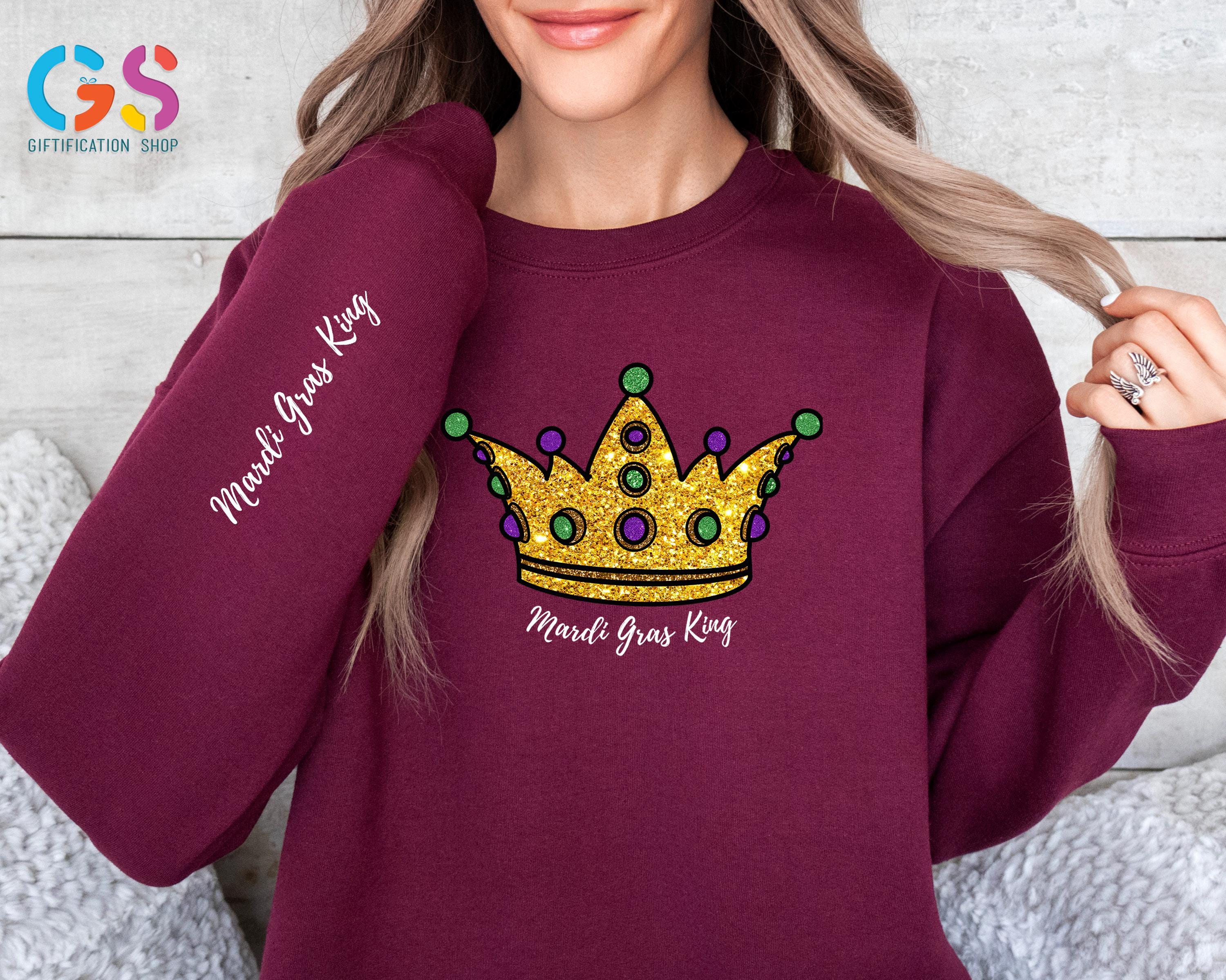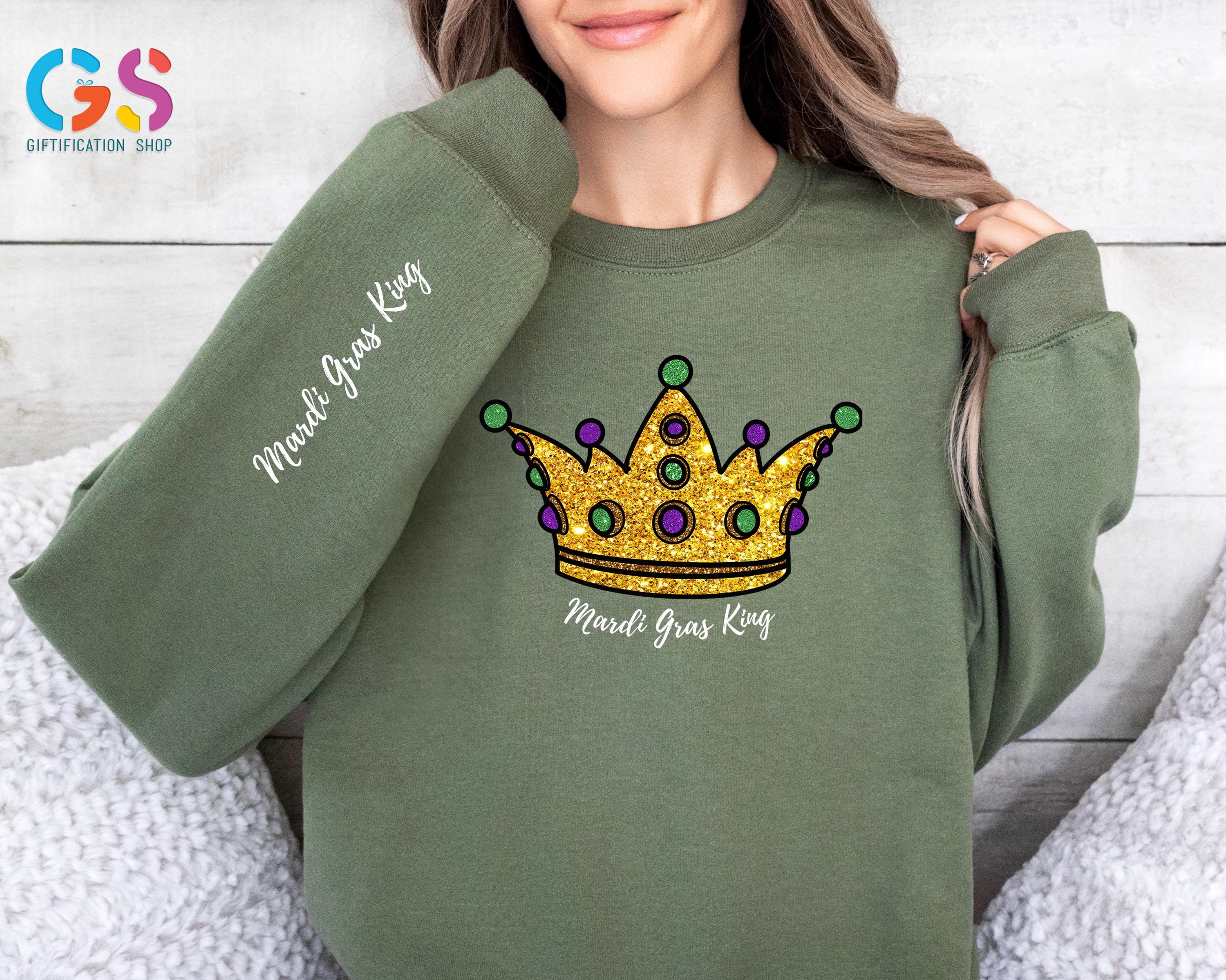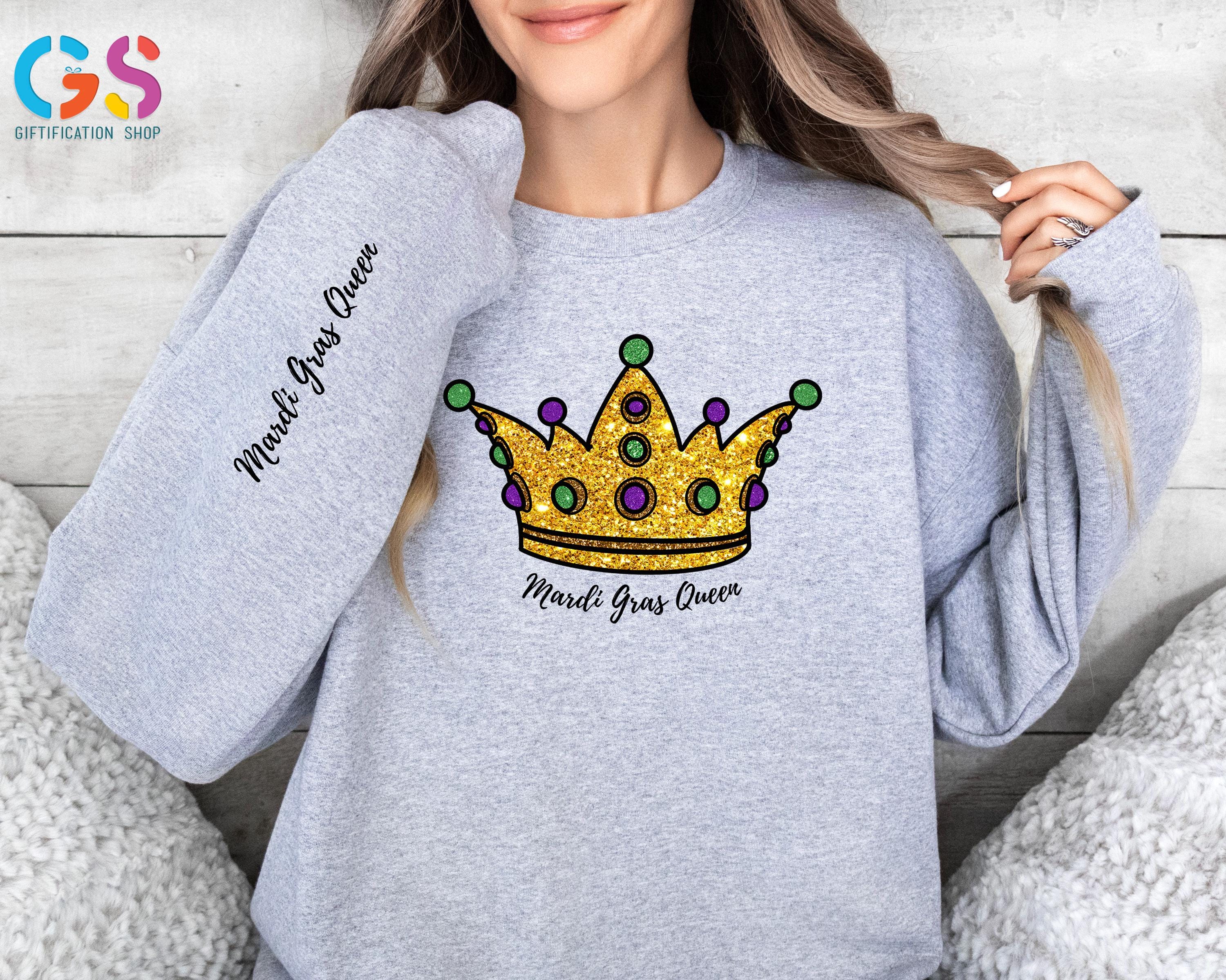 This Mardi Gras King and Queen matching sweatshirt is a fun and festive carnival costume perfect for celebrating in bold Mardi Gras fashion. Designed as a women’s sweatshirt with colorful Mardi Gras beads and a happy Mardi Gras vibe, it’s ideal as a festival shirt for Fat Tuesday celebrations. Featuring playful Louisiana flair with crawfish sweatshirt charm, king cake shirt inspiration, and taco shirt fun, this Tuesday shirt brings party energy to any parade or gathering. Whether you’re looking for a matching shirt for couples or friends, or a standout La Weezy Ana–style festival sweater, this piece is made for celebrating carnival season in comfort and style.