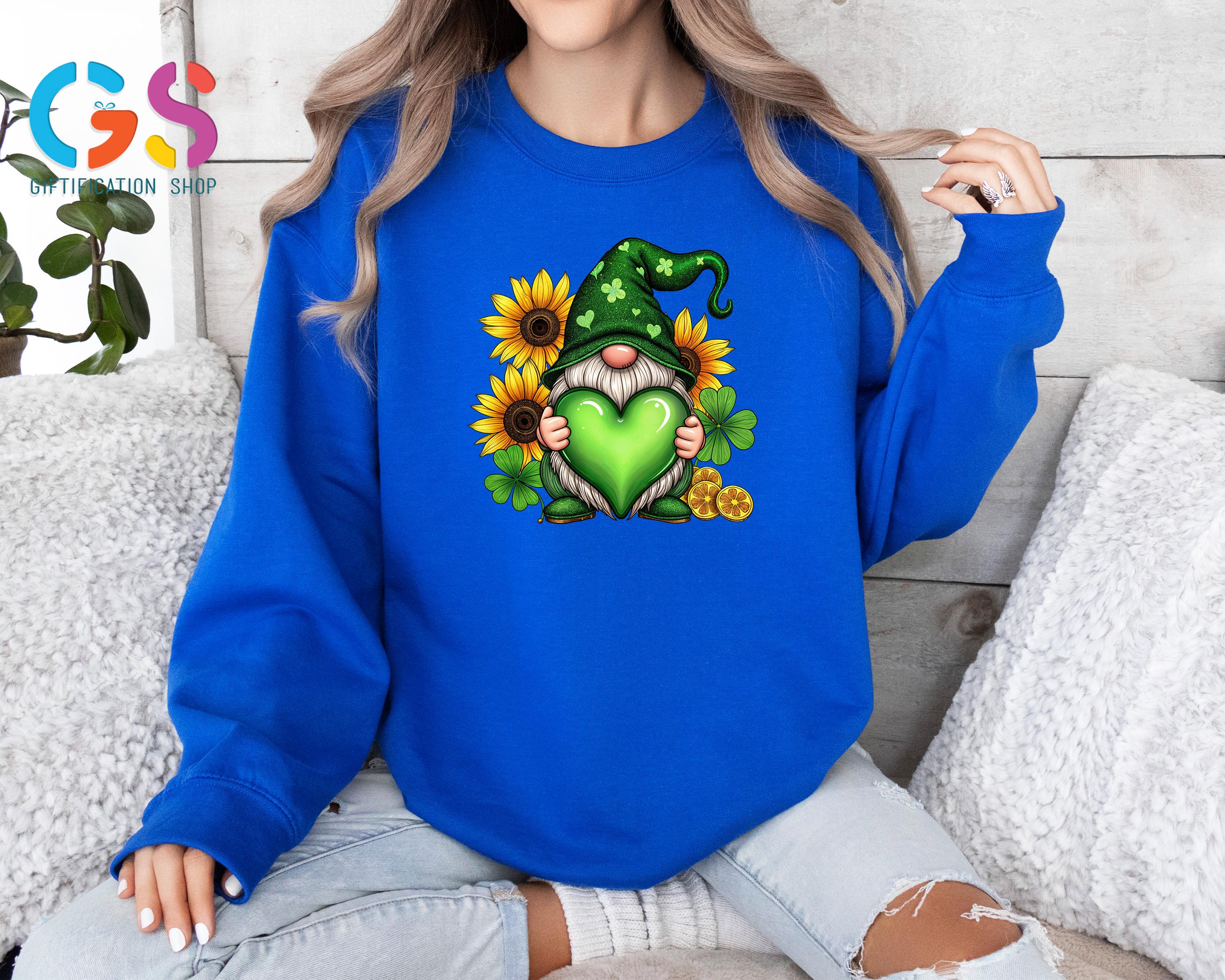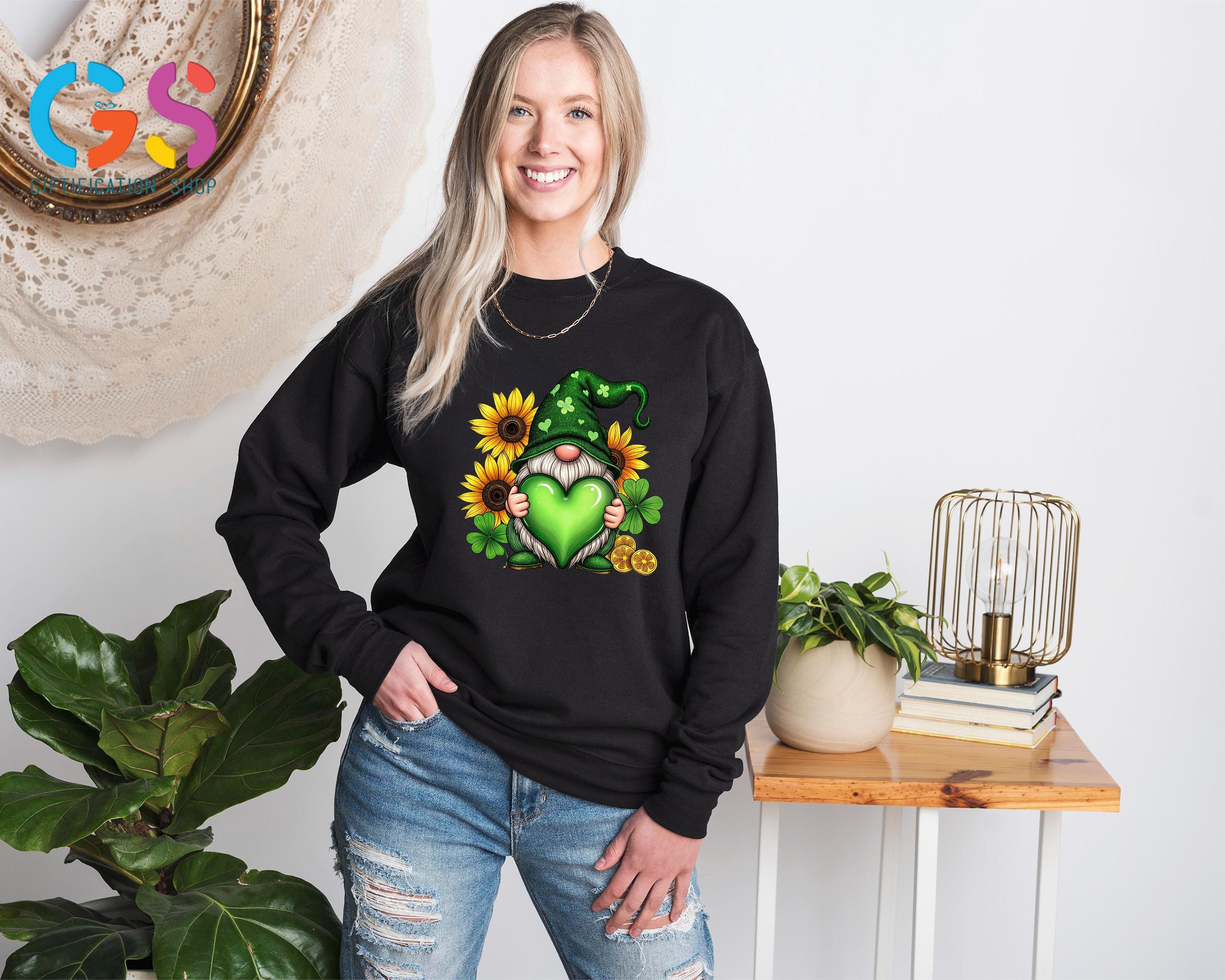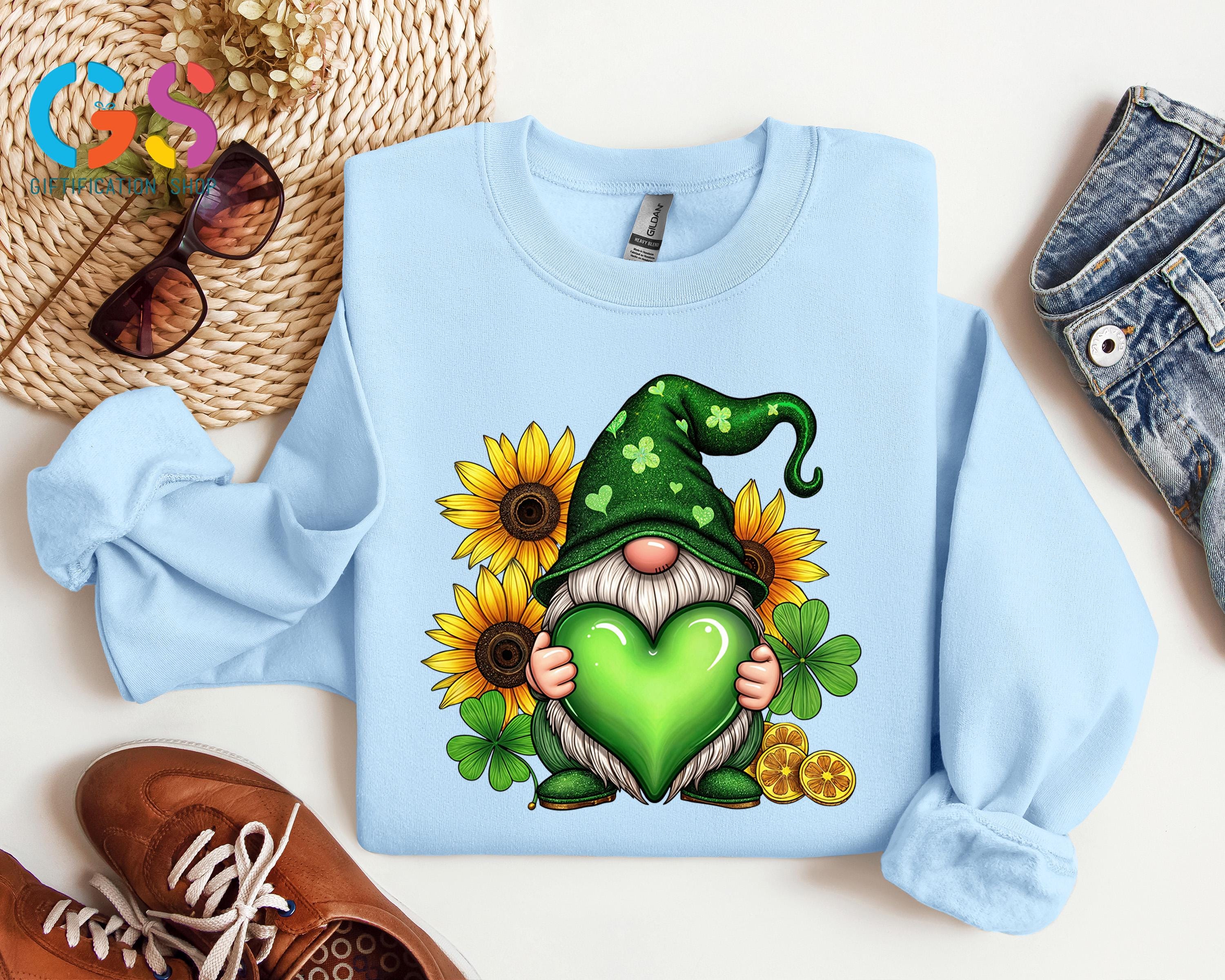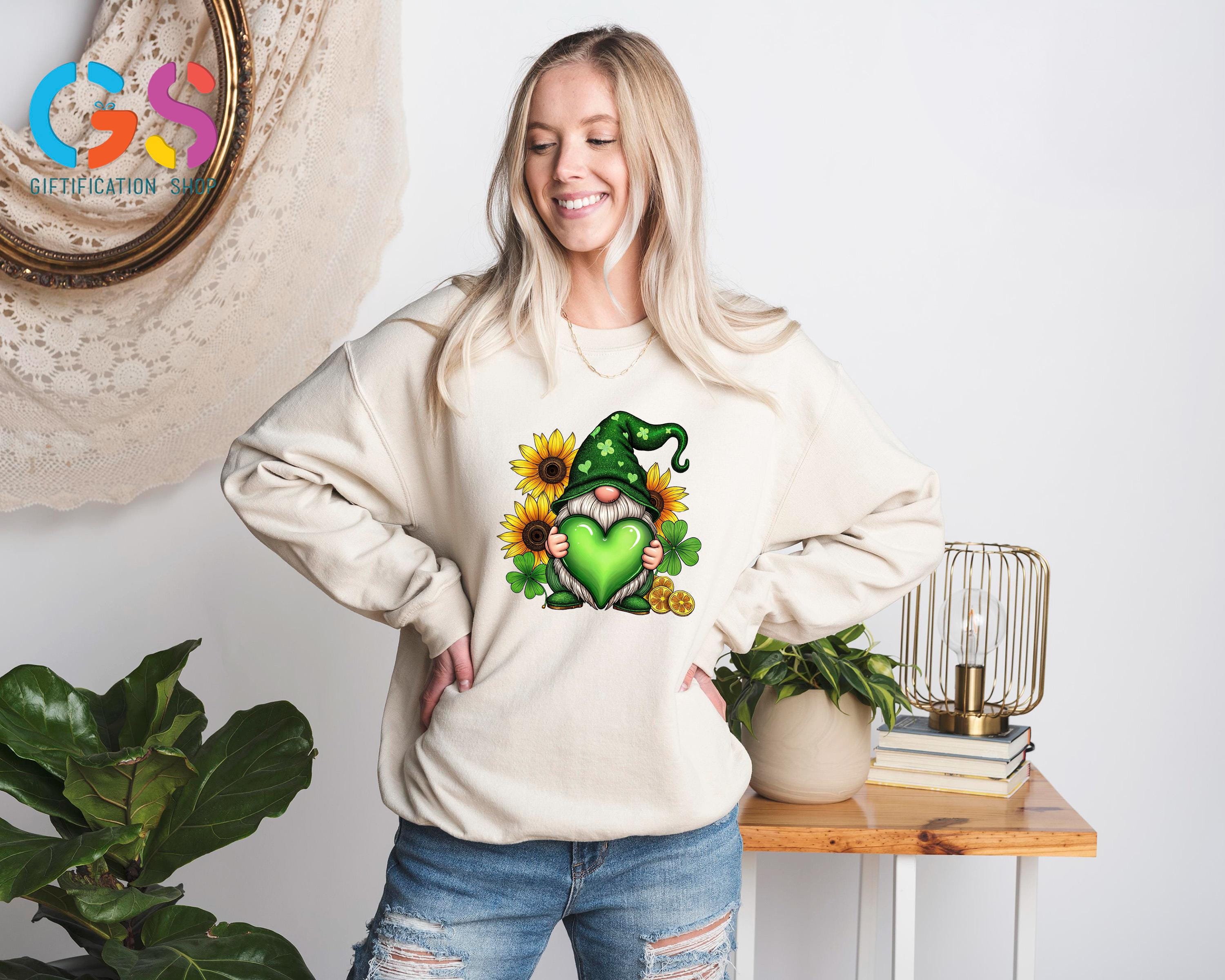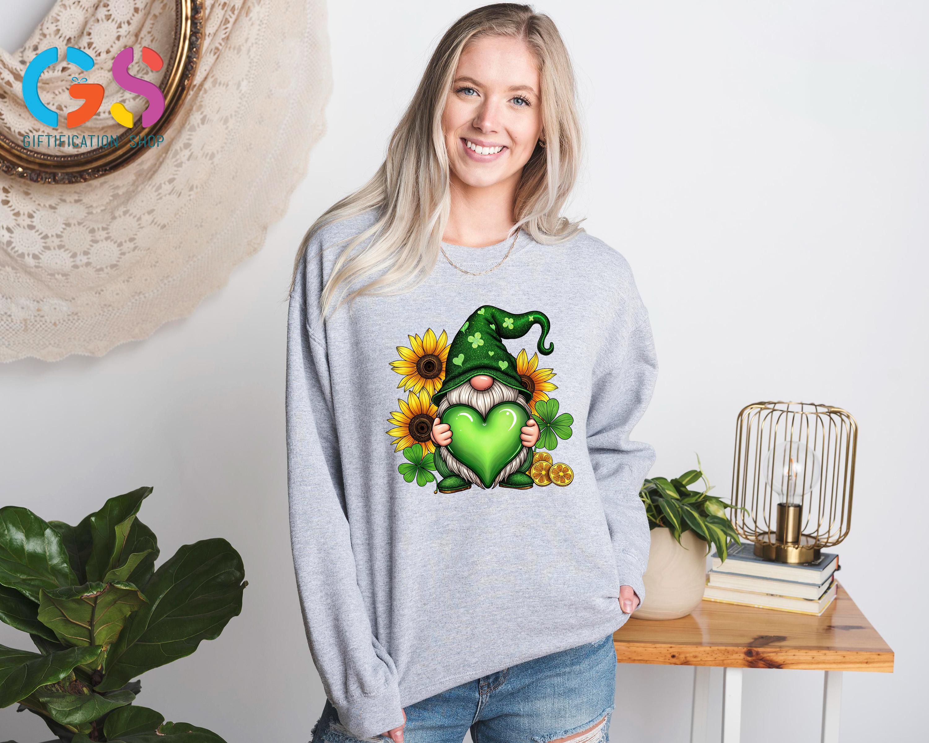 Green Gnome Heart Sweatshirt, Shamrock Sweater, Religious Git For Saint Patricks Day, Lucky Clothing