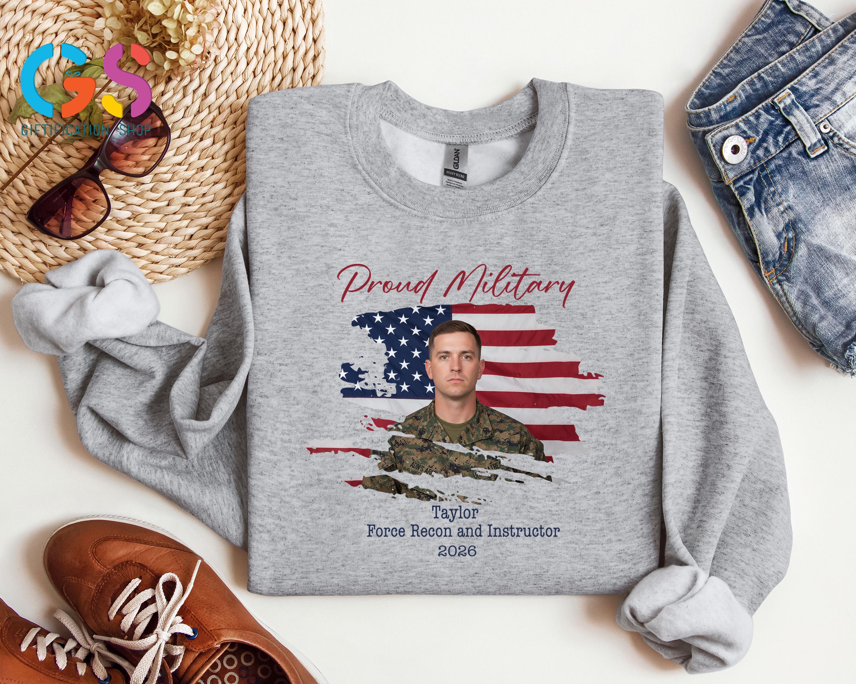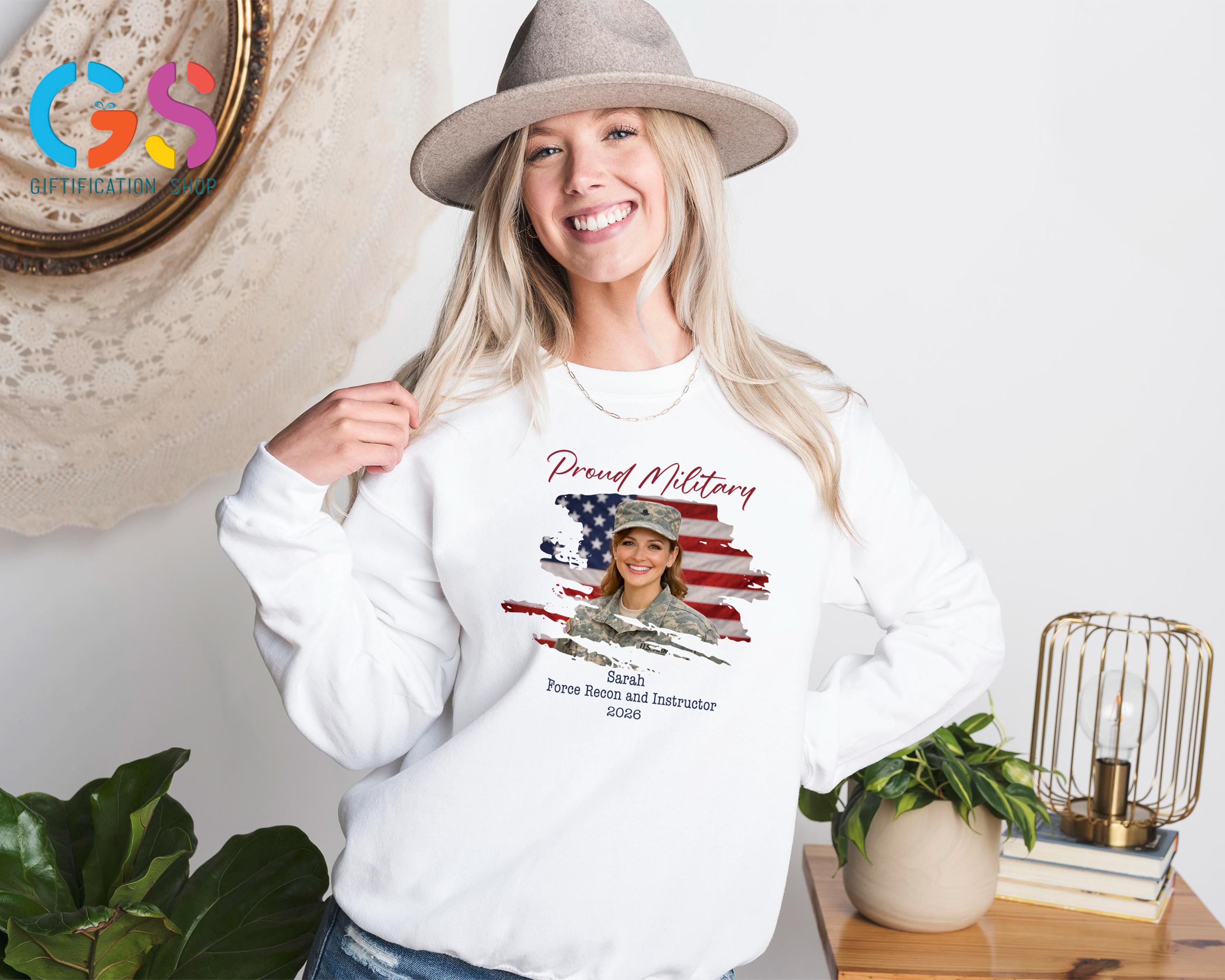 Custom Name And Photo Proud Military Sweatshirt, Patriotic Homecoming Gift, Personalized Army Family Hoodie