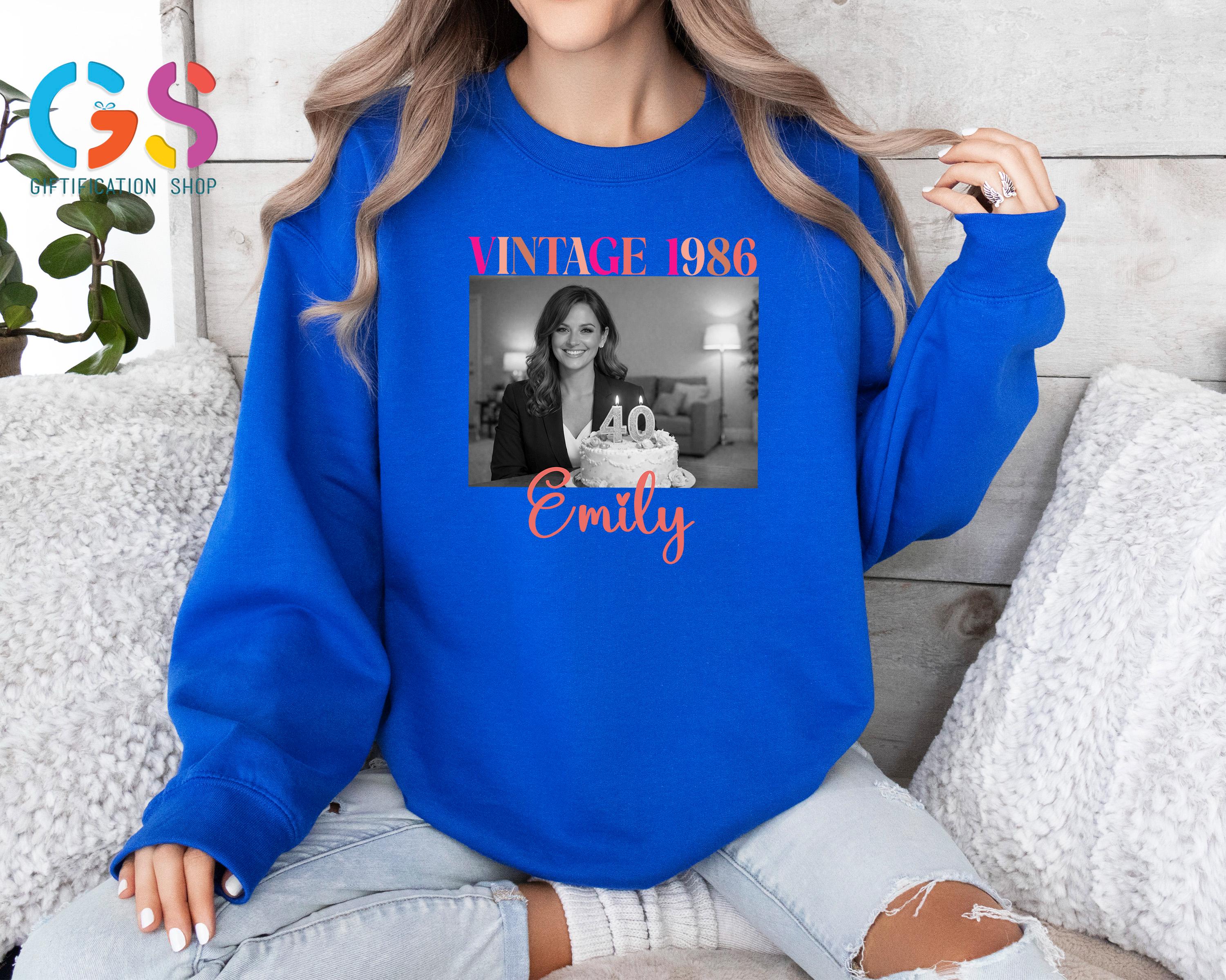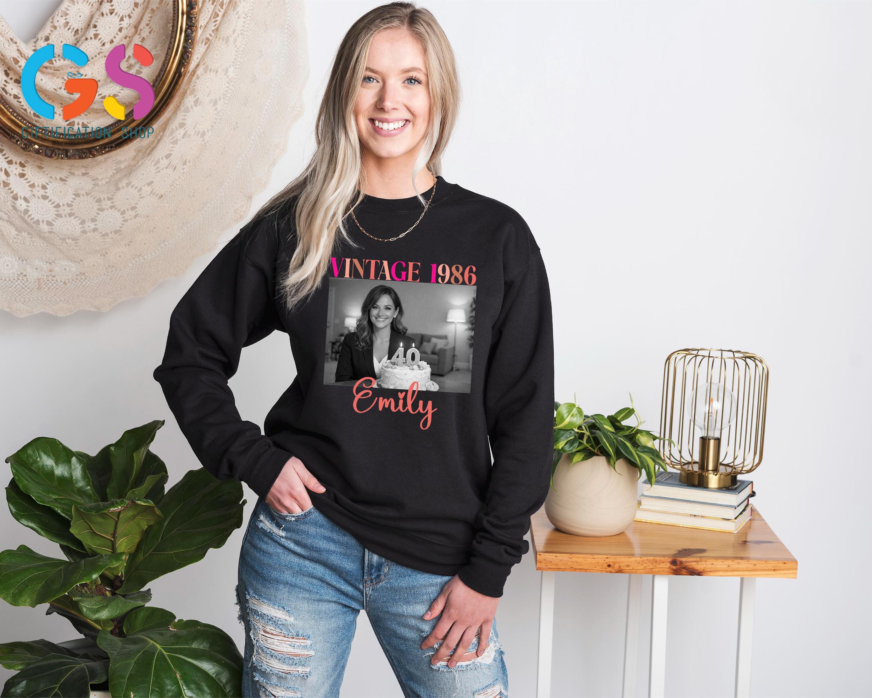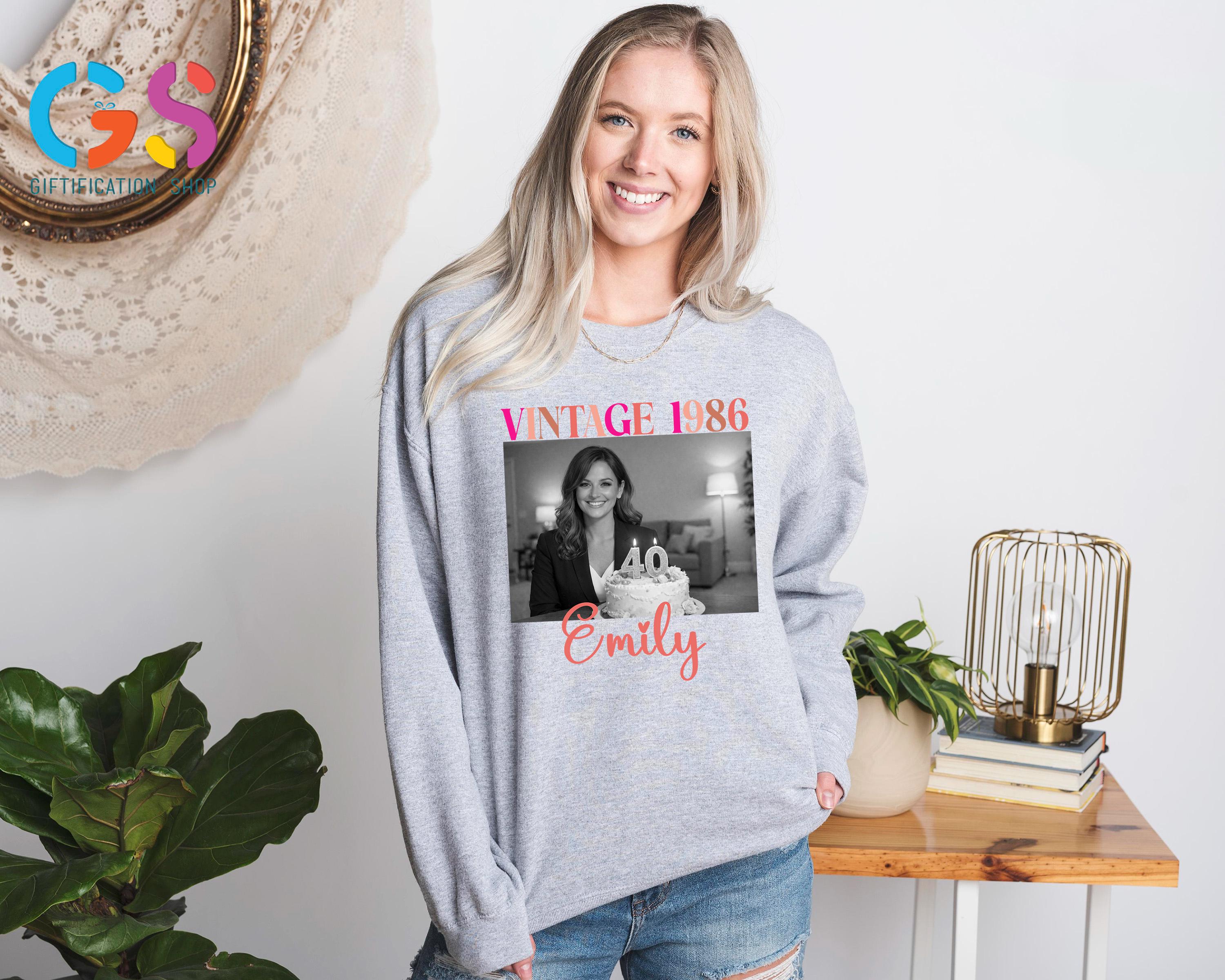 Vintage Birthday Sweatshirt, Custom Name And Photo Sweater, Personalized Happy 30ths 40ths 50ths Hoodie