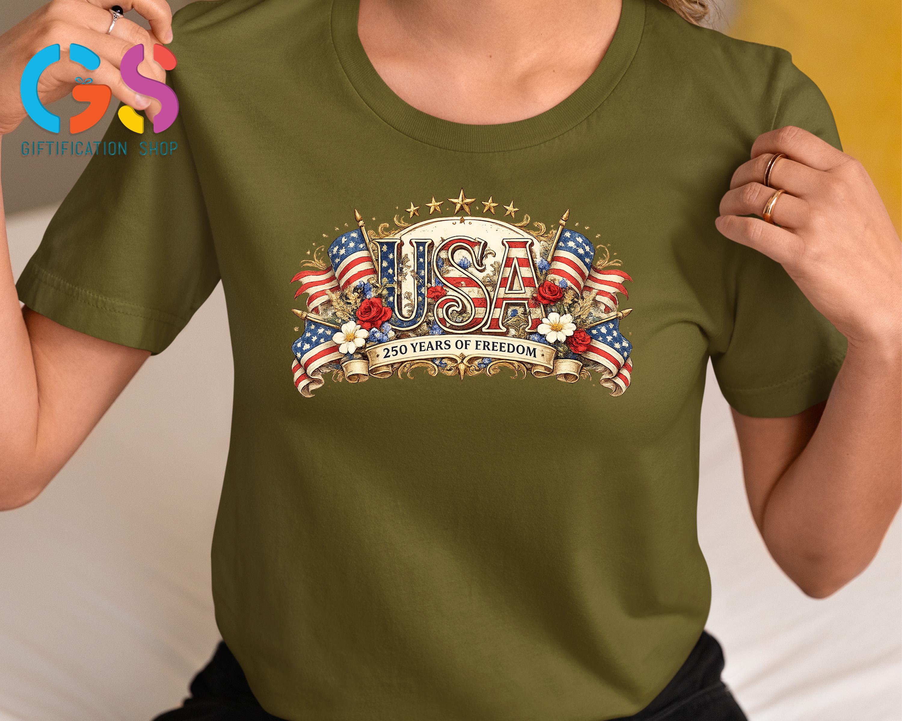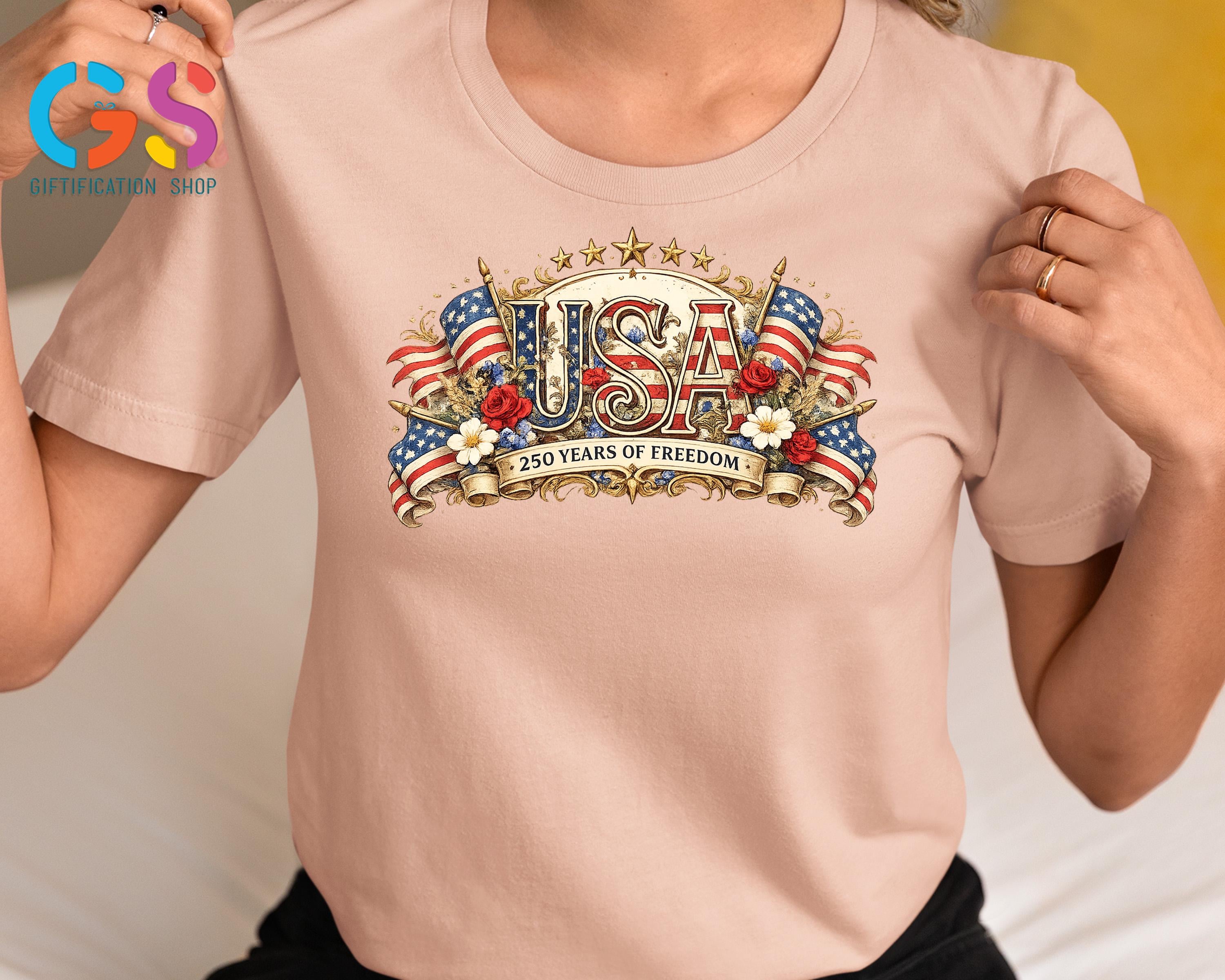 USA T-shirt, 250 Years Of Freedom Shirt, Memorial Day Tee, Fourth Of July Clothing, American Pride Gift