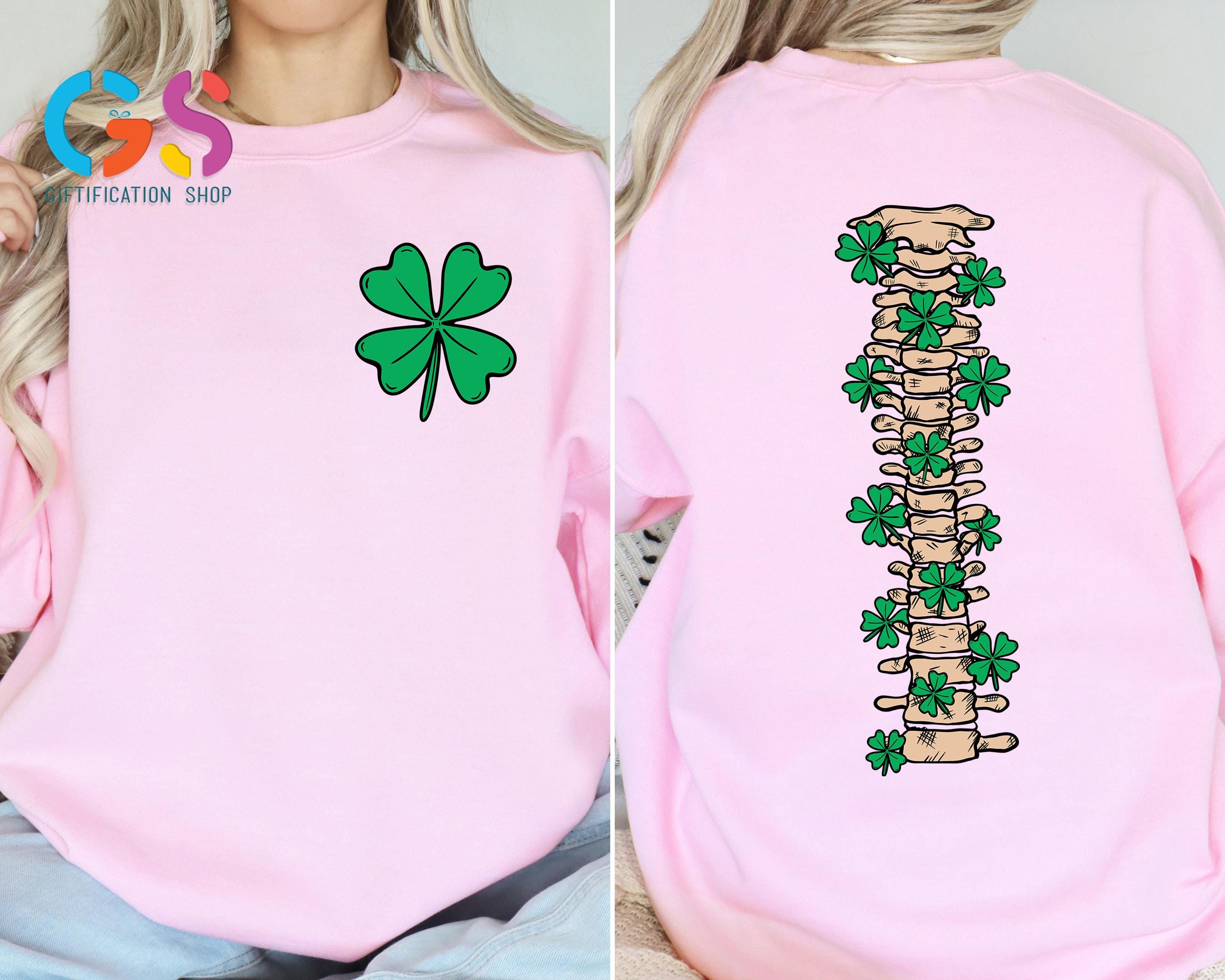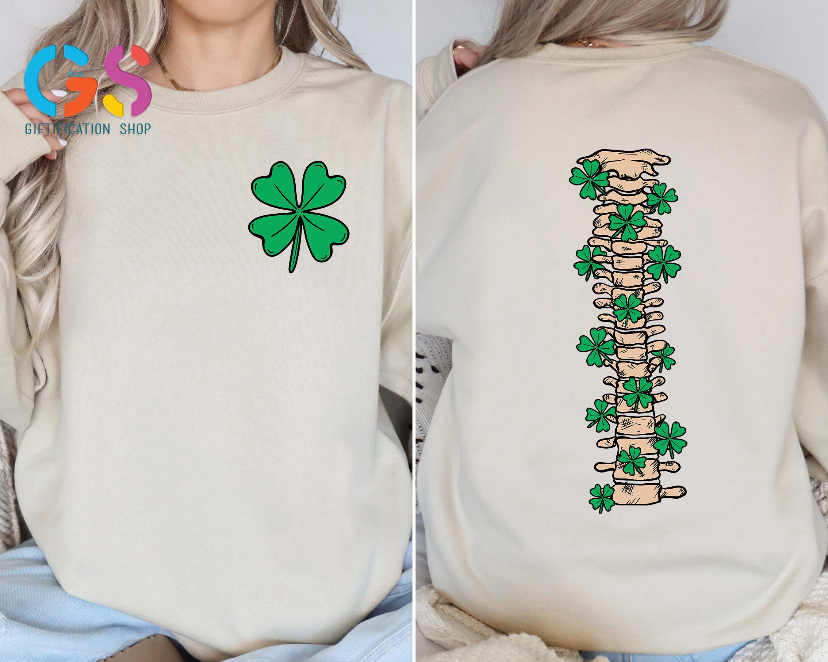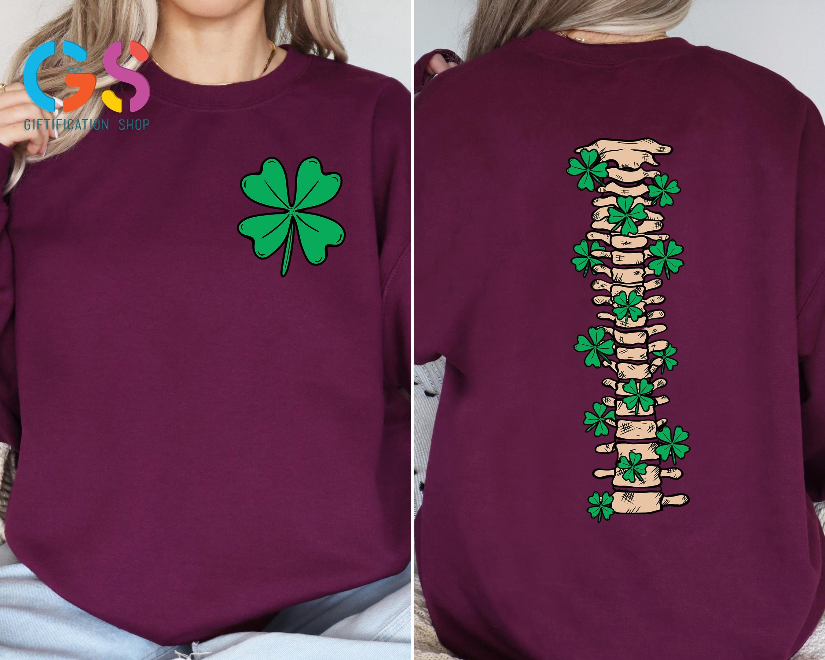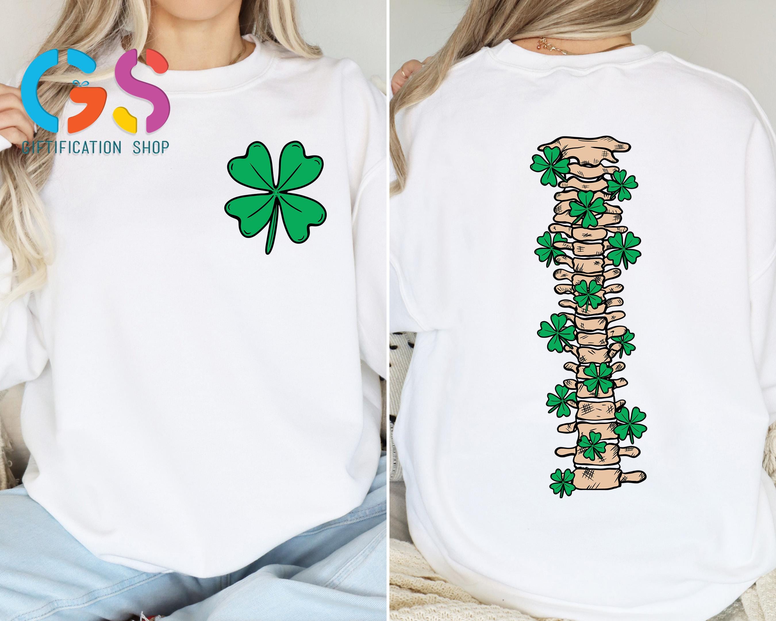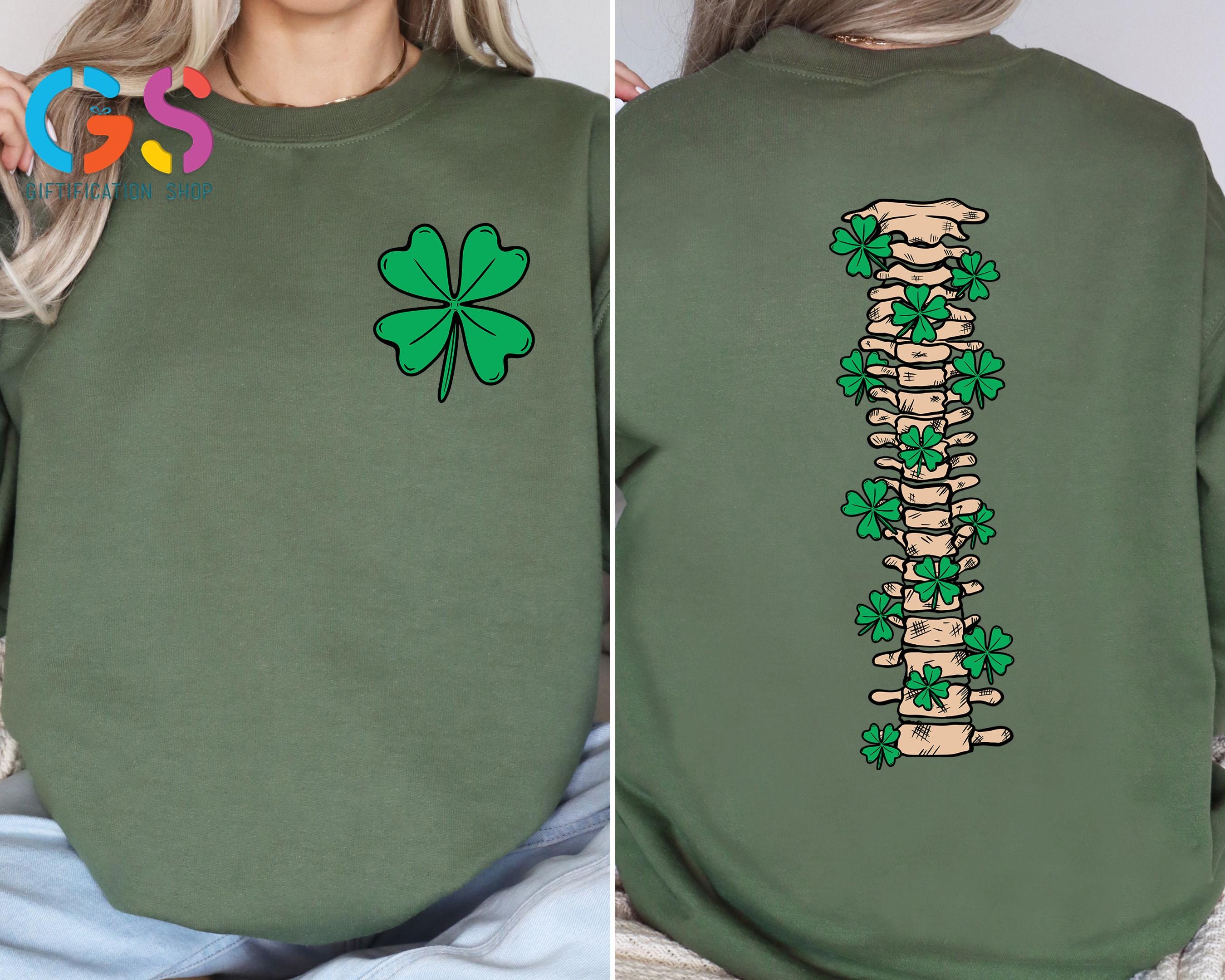 Clover Spine Sweatshirt, St. Patrick’s Day Skeleton Sweats, Skeleton Design, Lucky Skeleton Shirt, Irish Day Sweats, Shamrock Sweatshirt