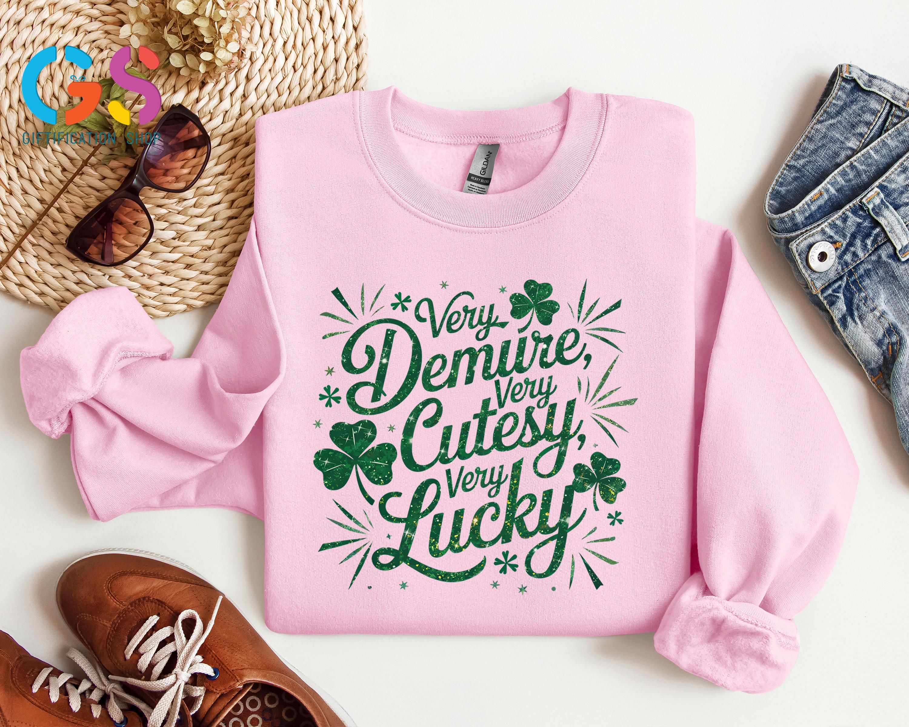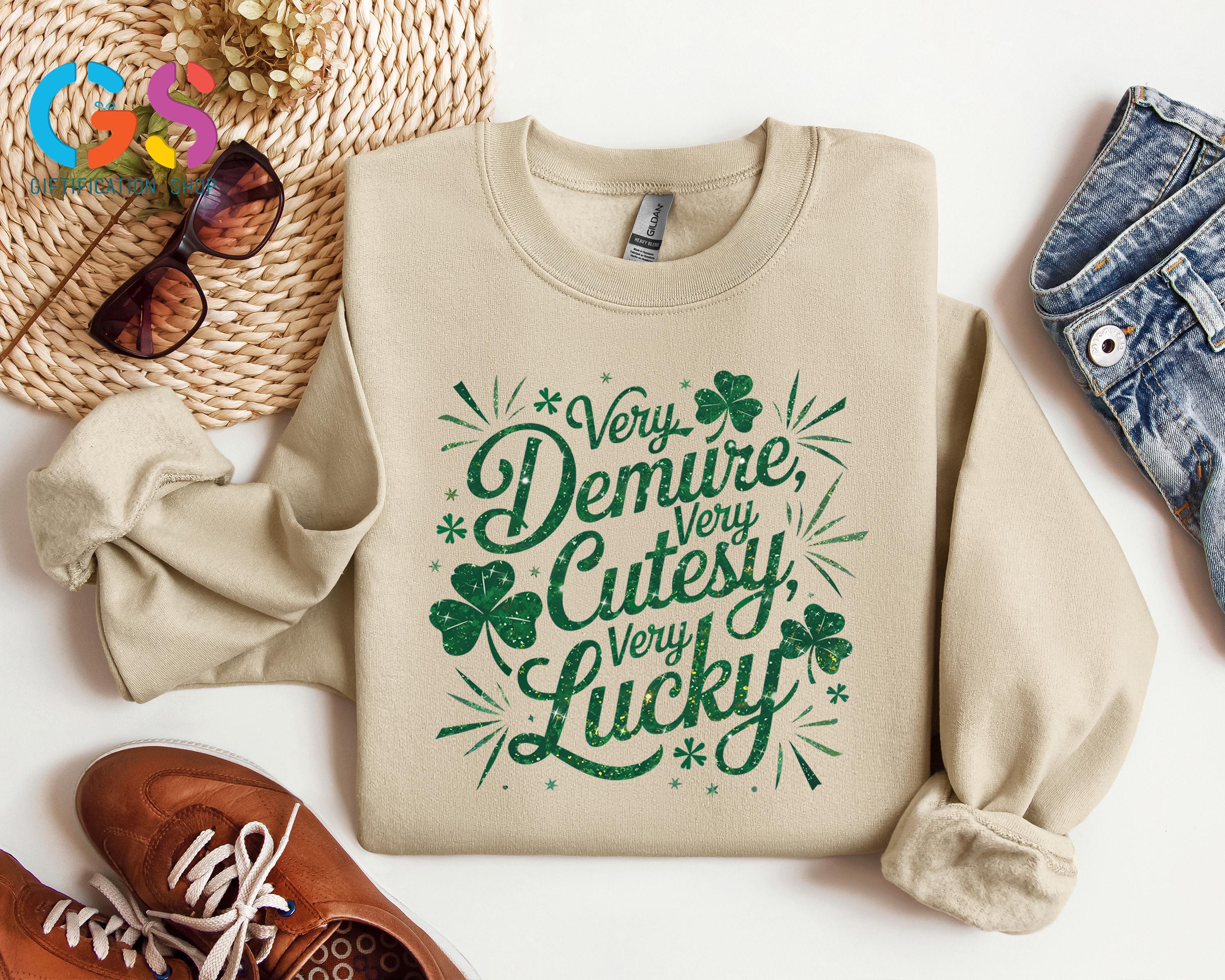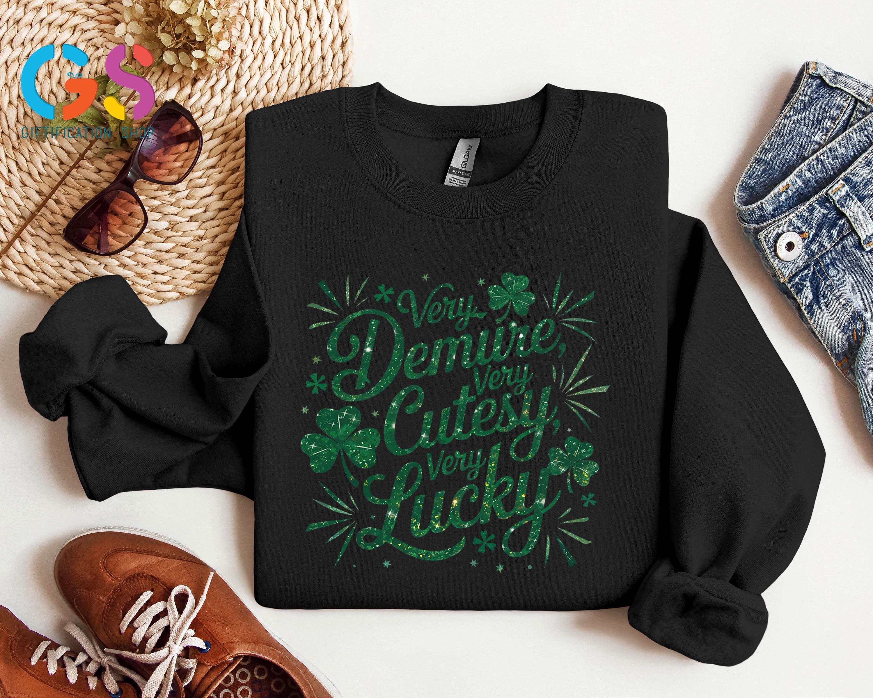 Very Demure Cutesy Lucky Shirts, St Patrick's Day Tee, Irish Shamrock Tee, Feeling Lucky ST Paddy's Shirt